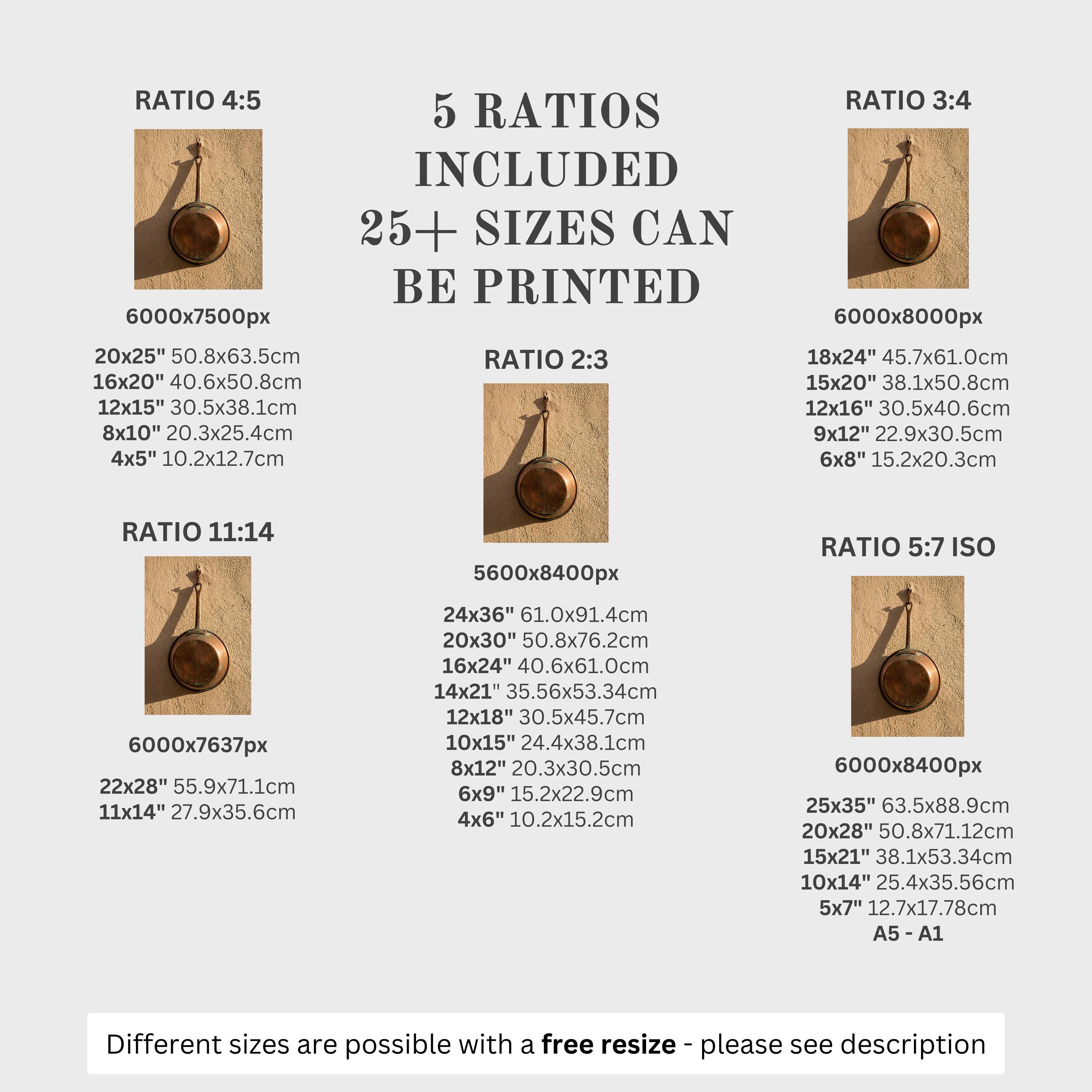 5 HIGH-QUALITY 300 DPI JPGs sized to fit +25 different frames in size and diverse ratios: