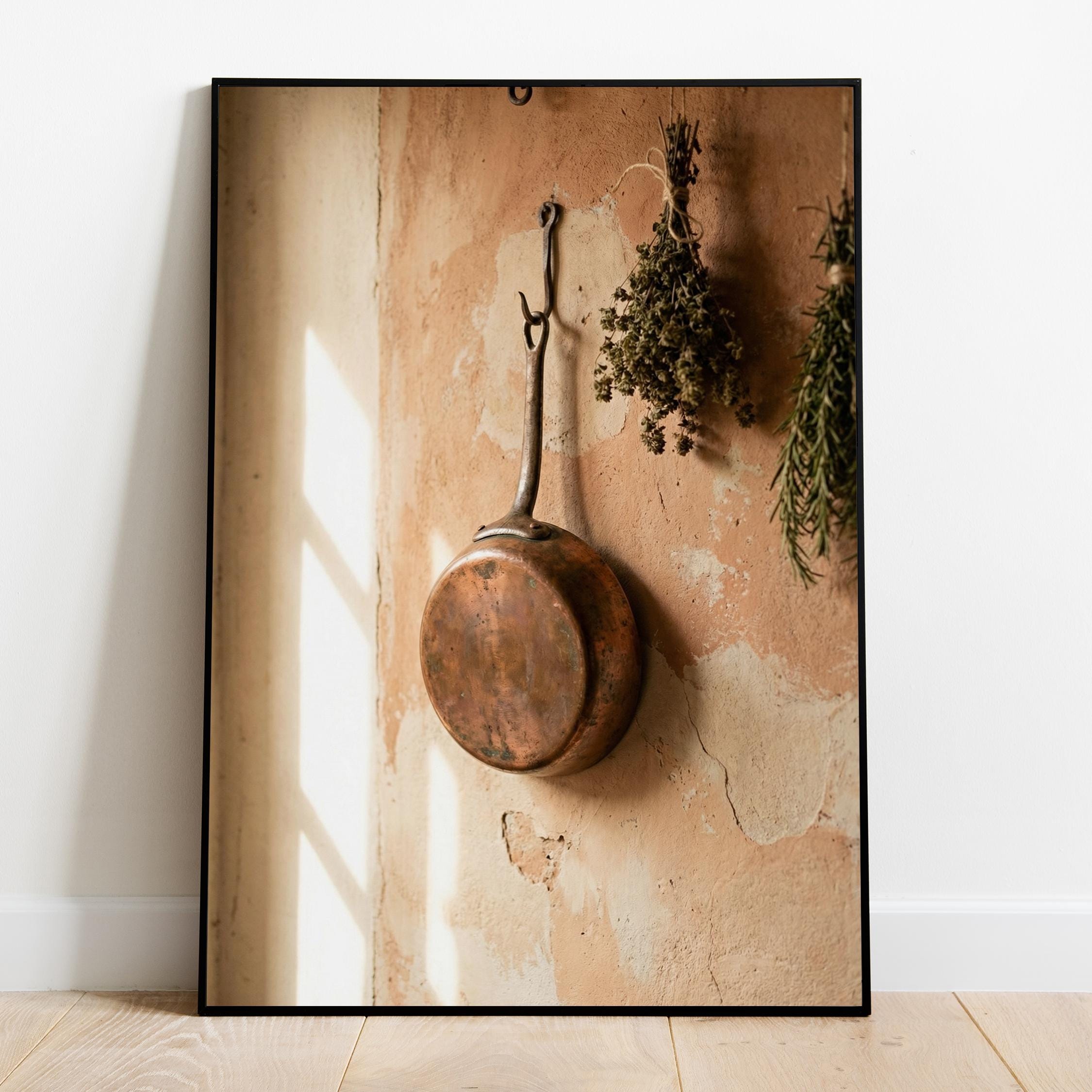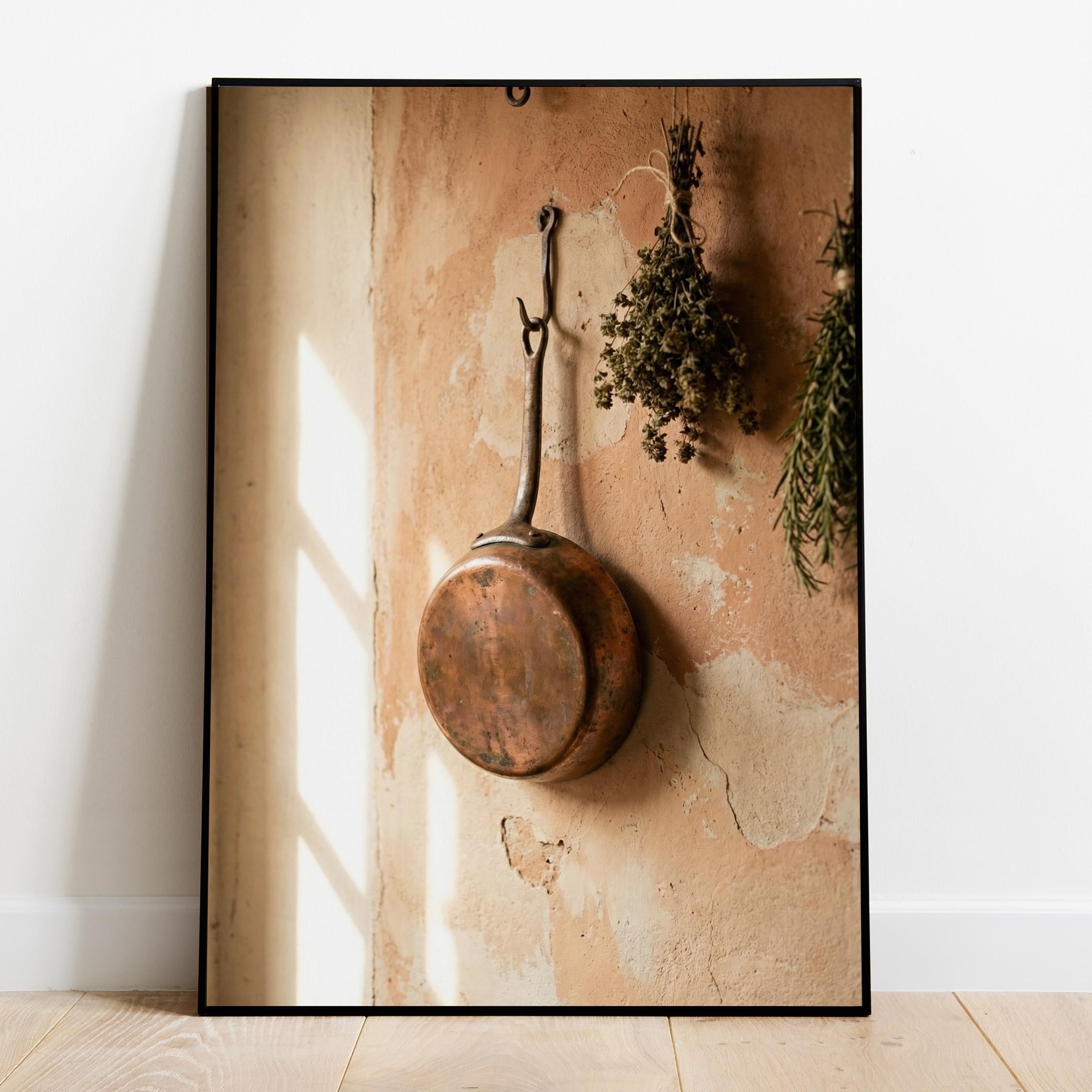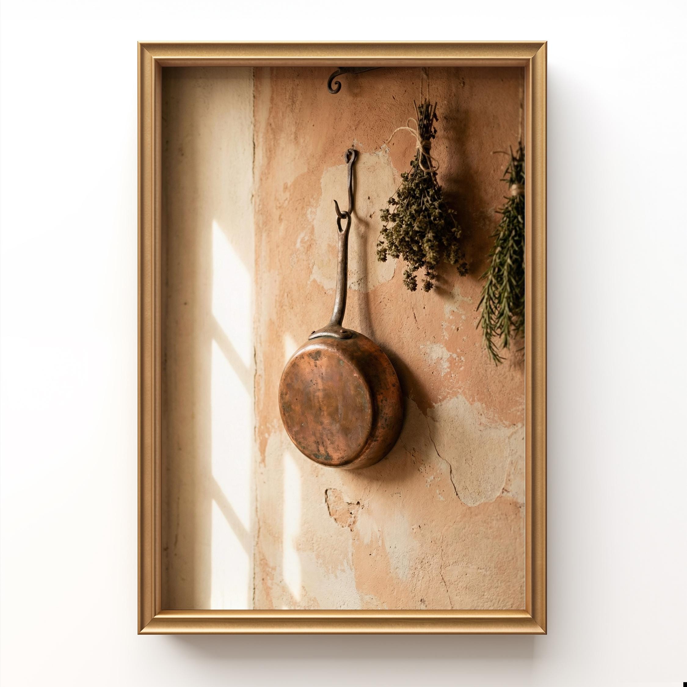 rustic copper skillet art, perfect for kitchen and a great gift for housewarming gifts.