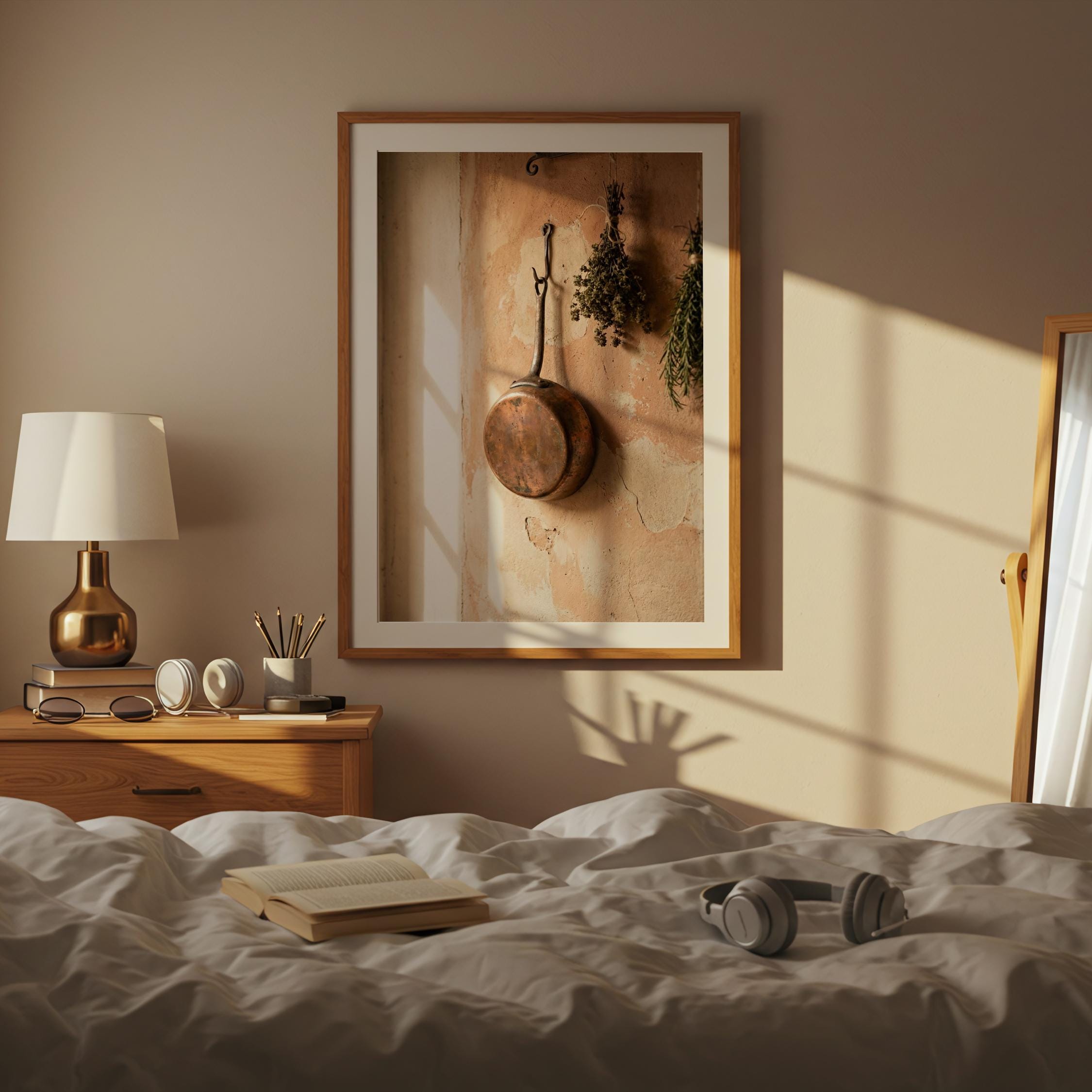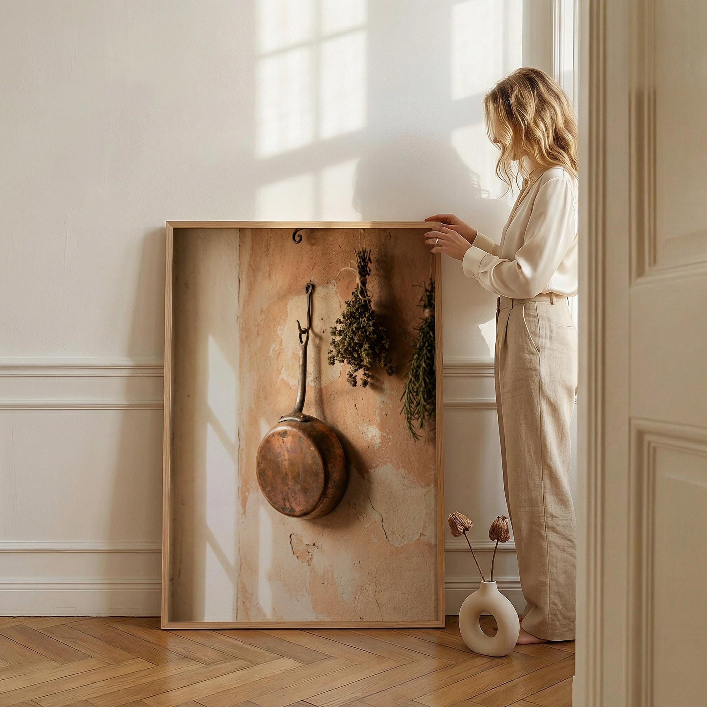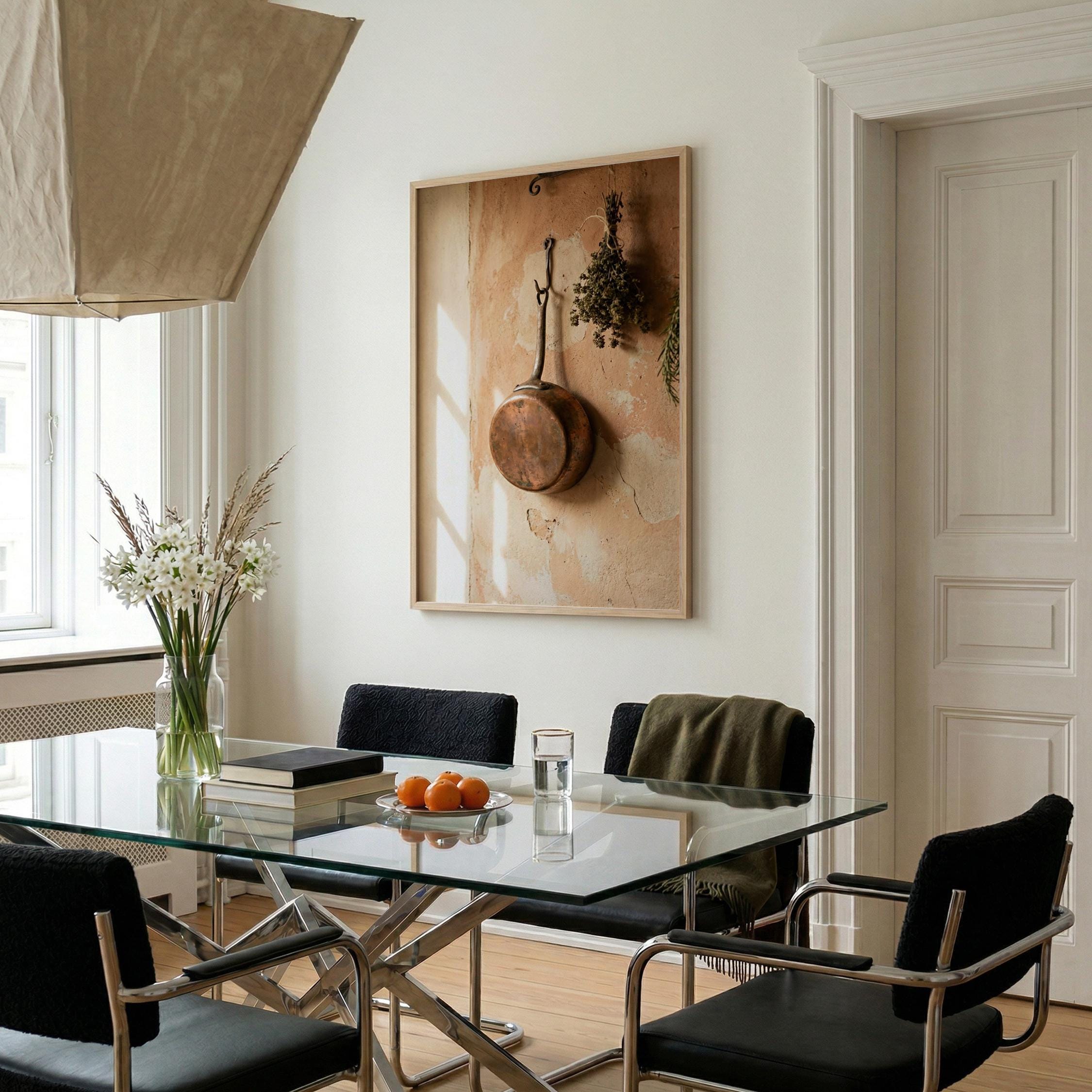 rustic copper skillet art, perfect for kitchen and a great gift for housewarming gifts.
