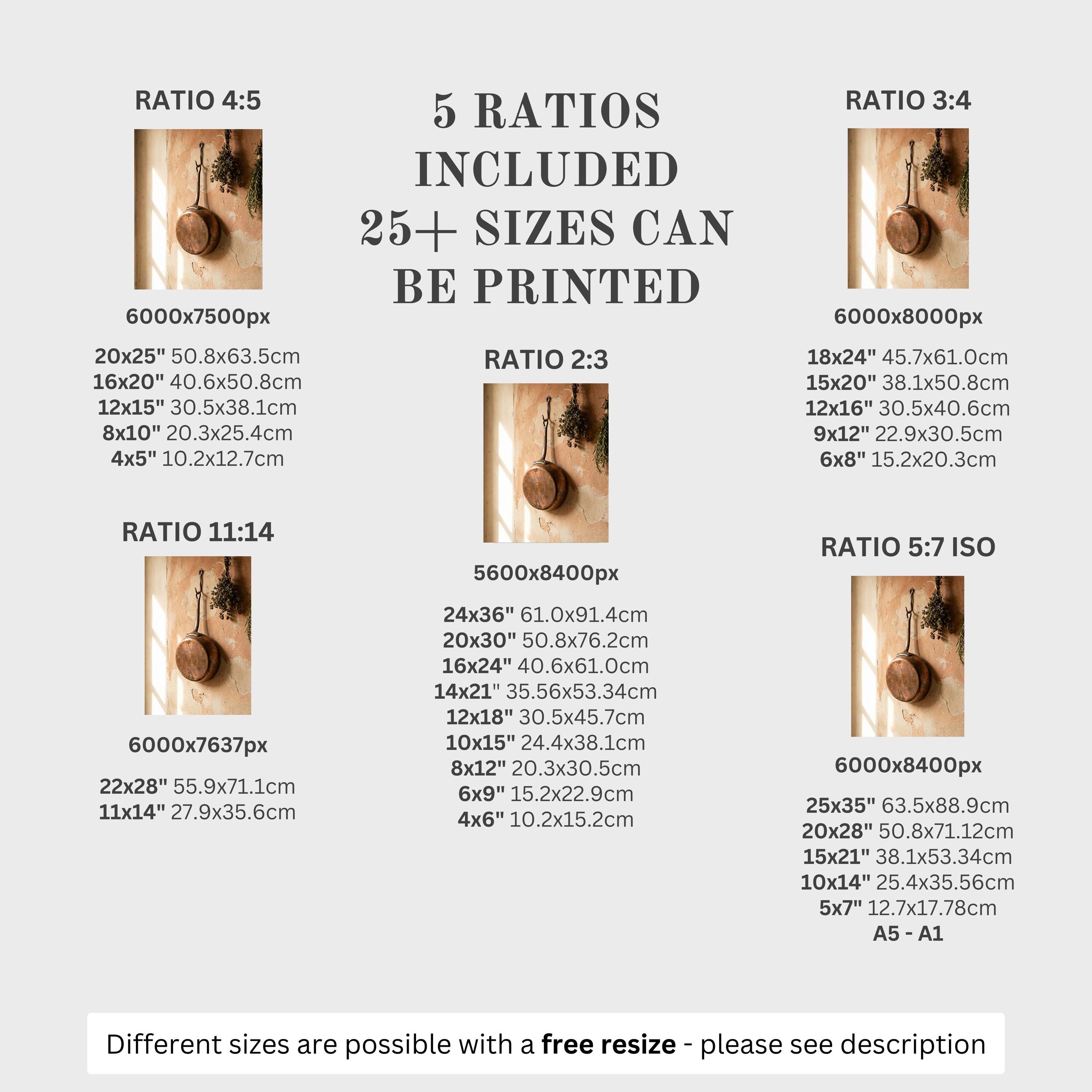 5 HIGH-QUALITY 300 DPI JPGs sized to fit +25 different frames in size and diverse ratios: