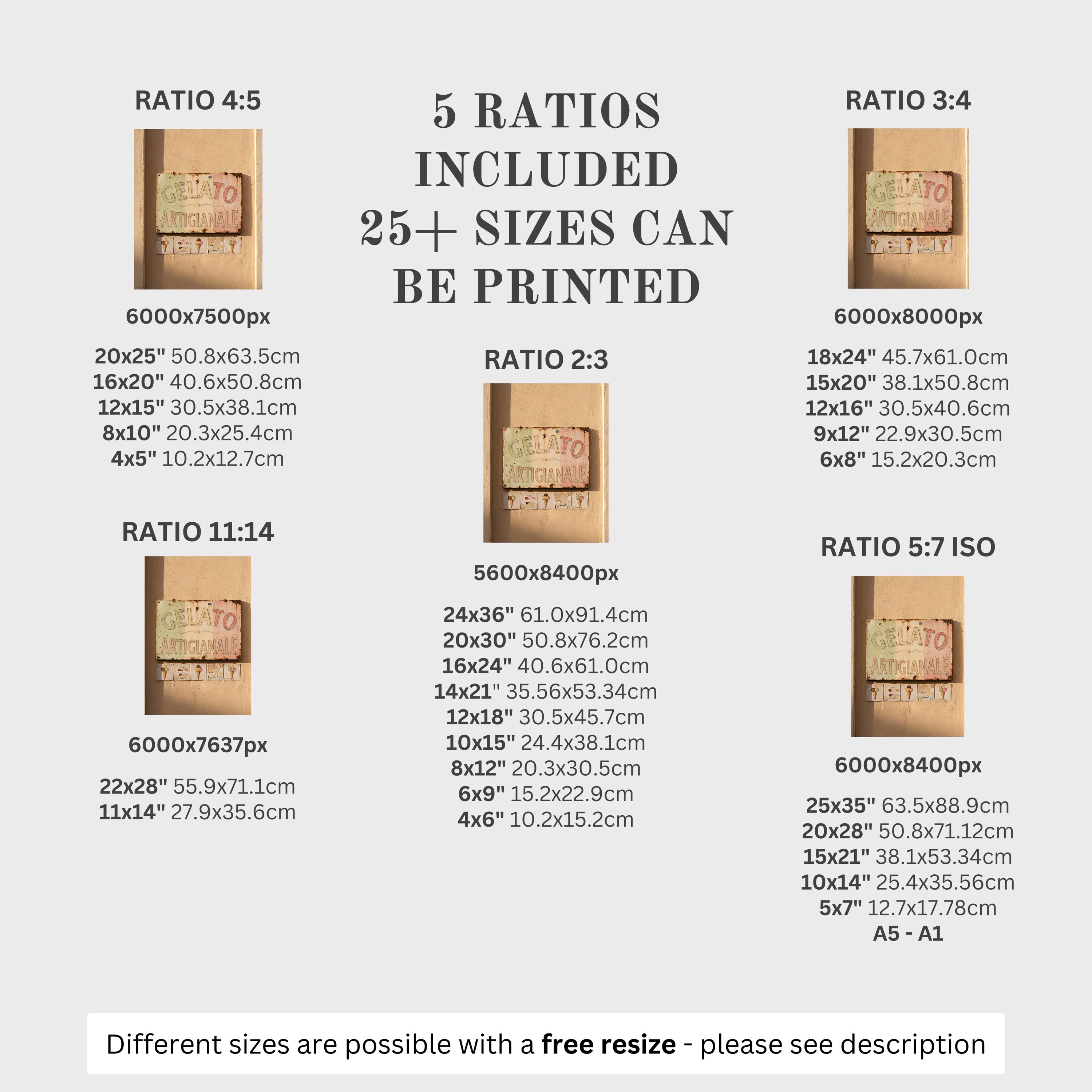 5 HIGH-QUALITY 300 DPI JPGs sized to fit +25 different frames in size and diverse ratios:
