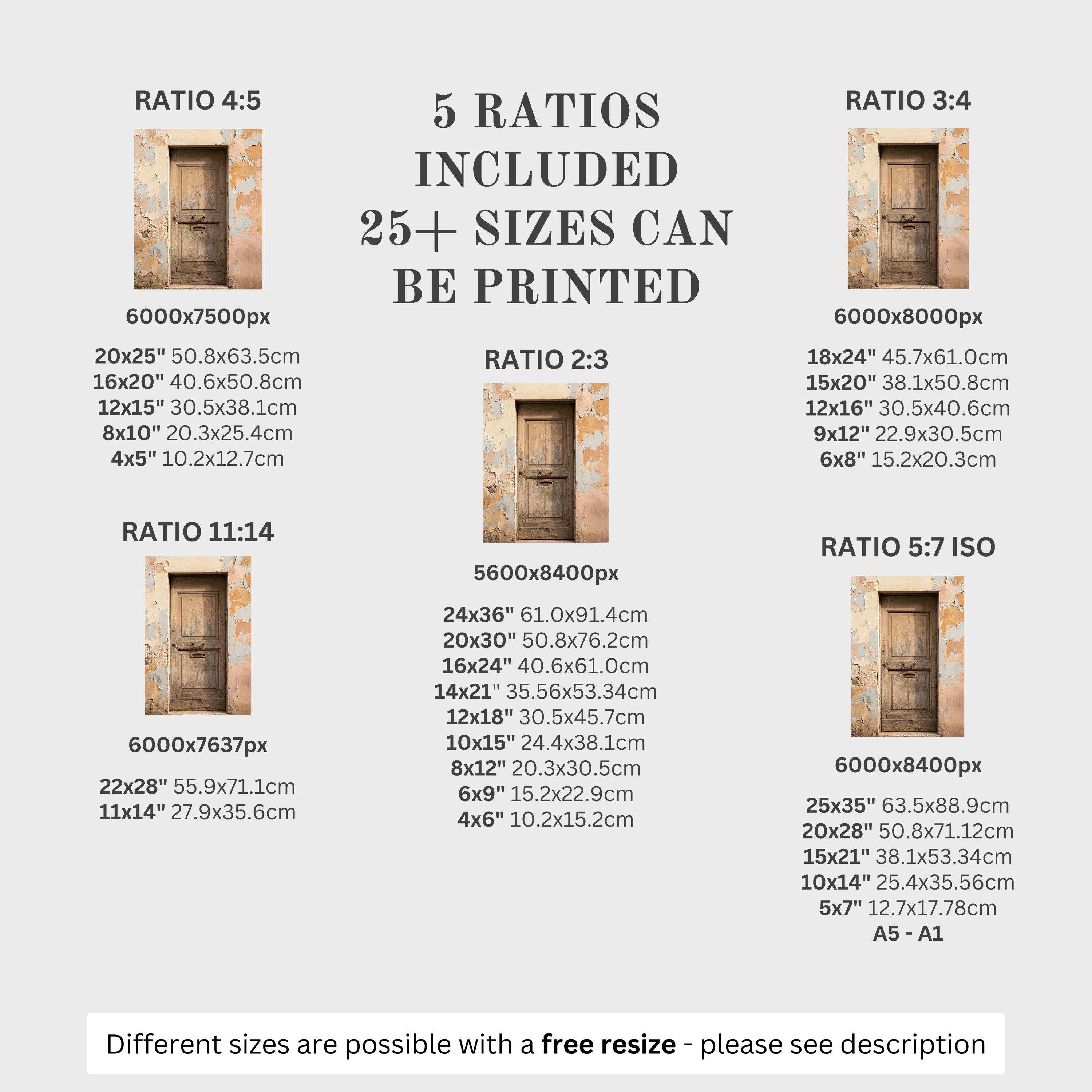 5 HIGH-QUALITY 300 DPI JPGs sized to fit +25 different frames in size and diverse ratios: