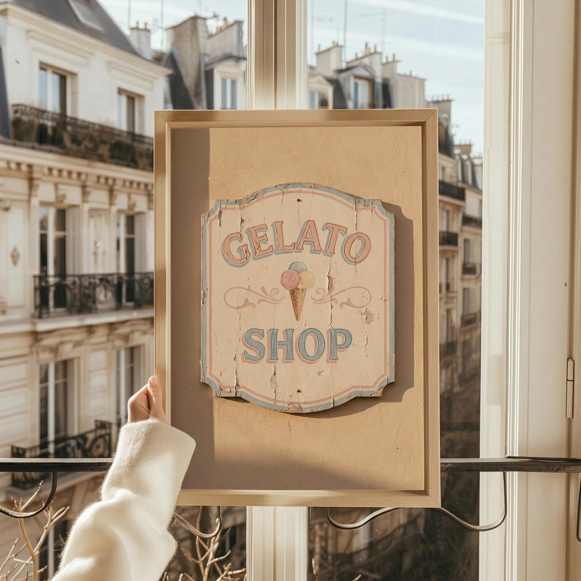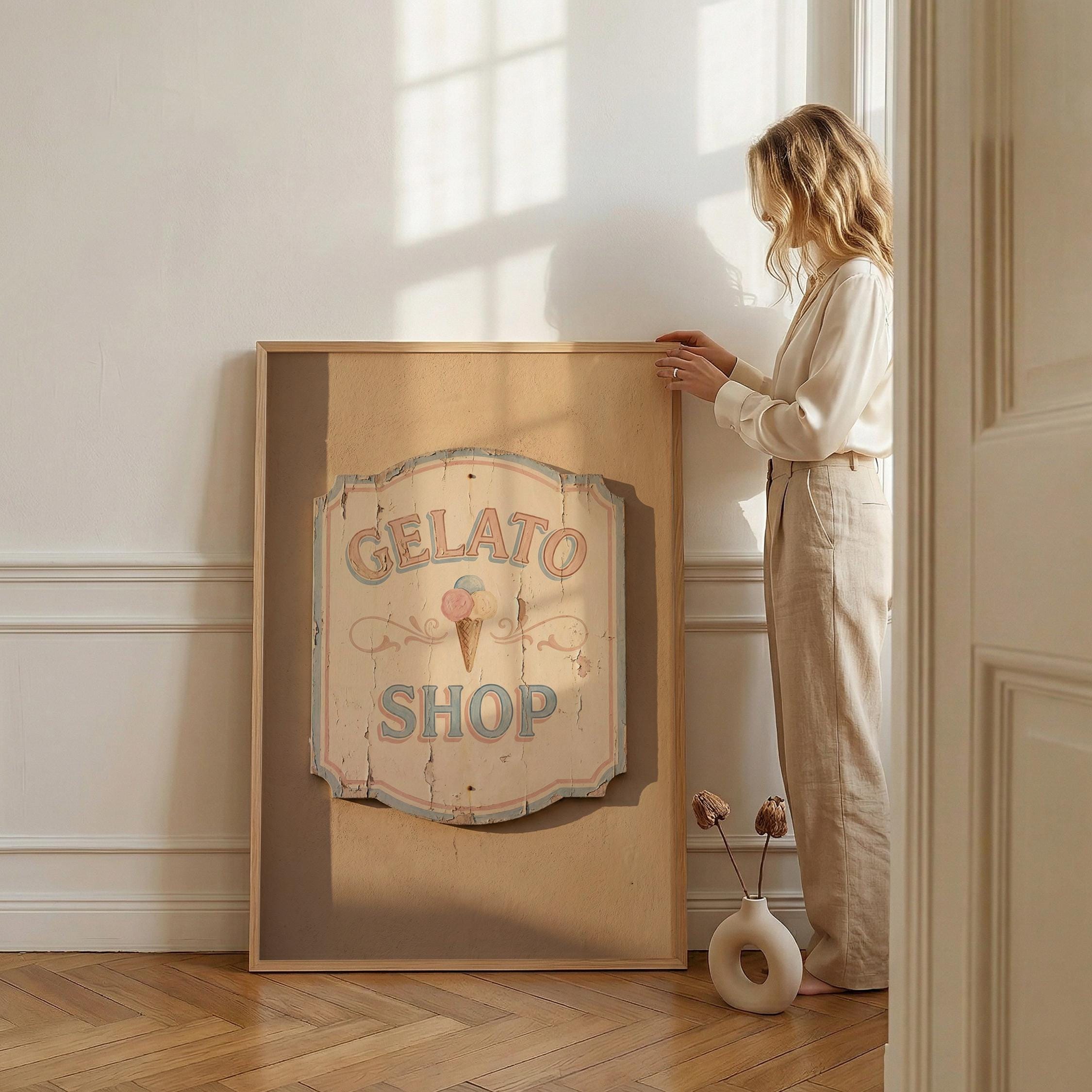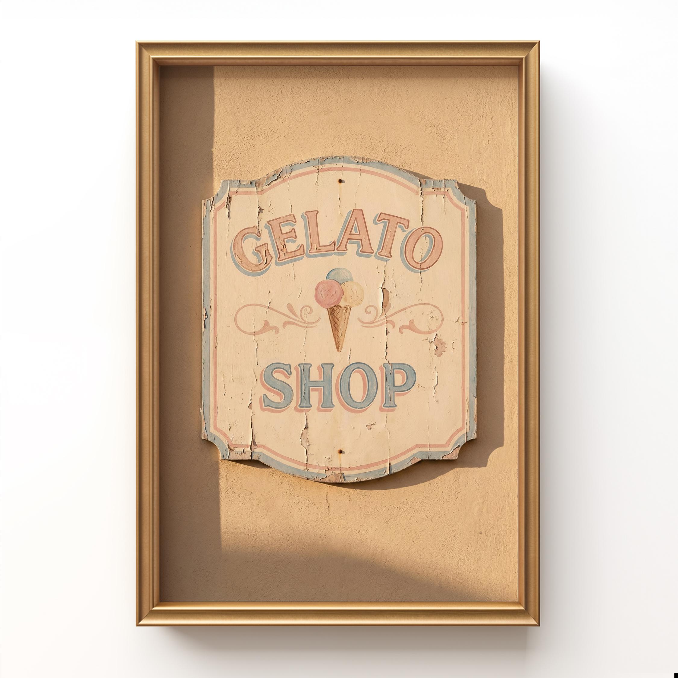 vintage gelato shop sign, perfect for kitchen or dining area and a great gift for housewarming or summer celebration.