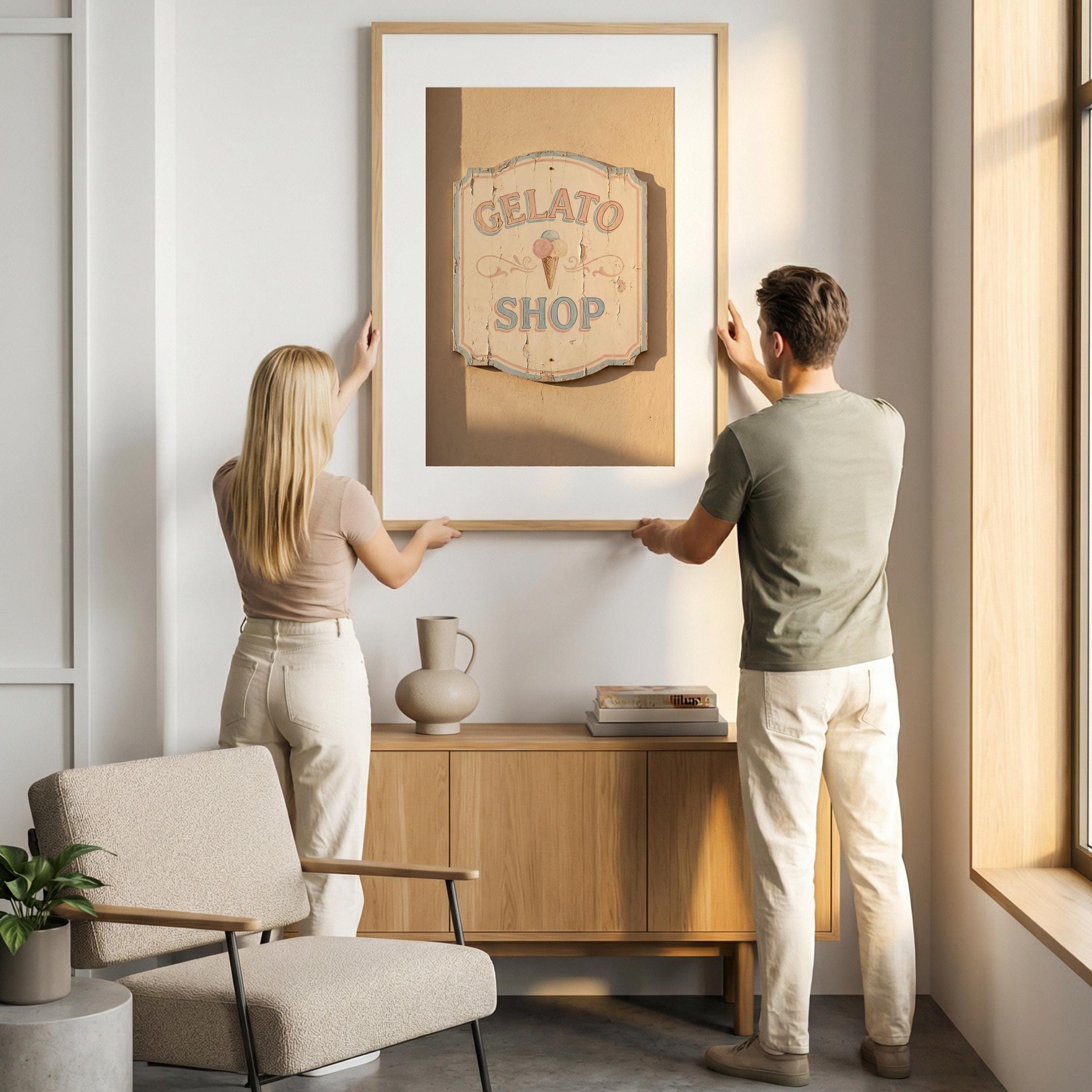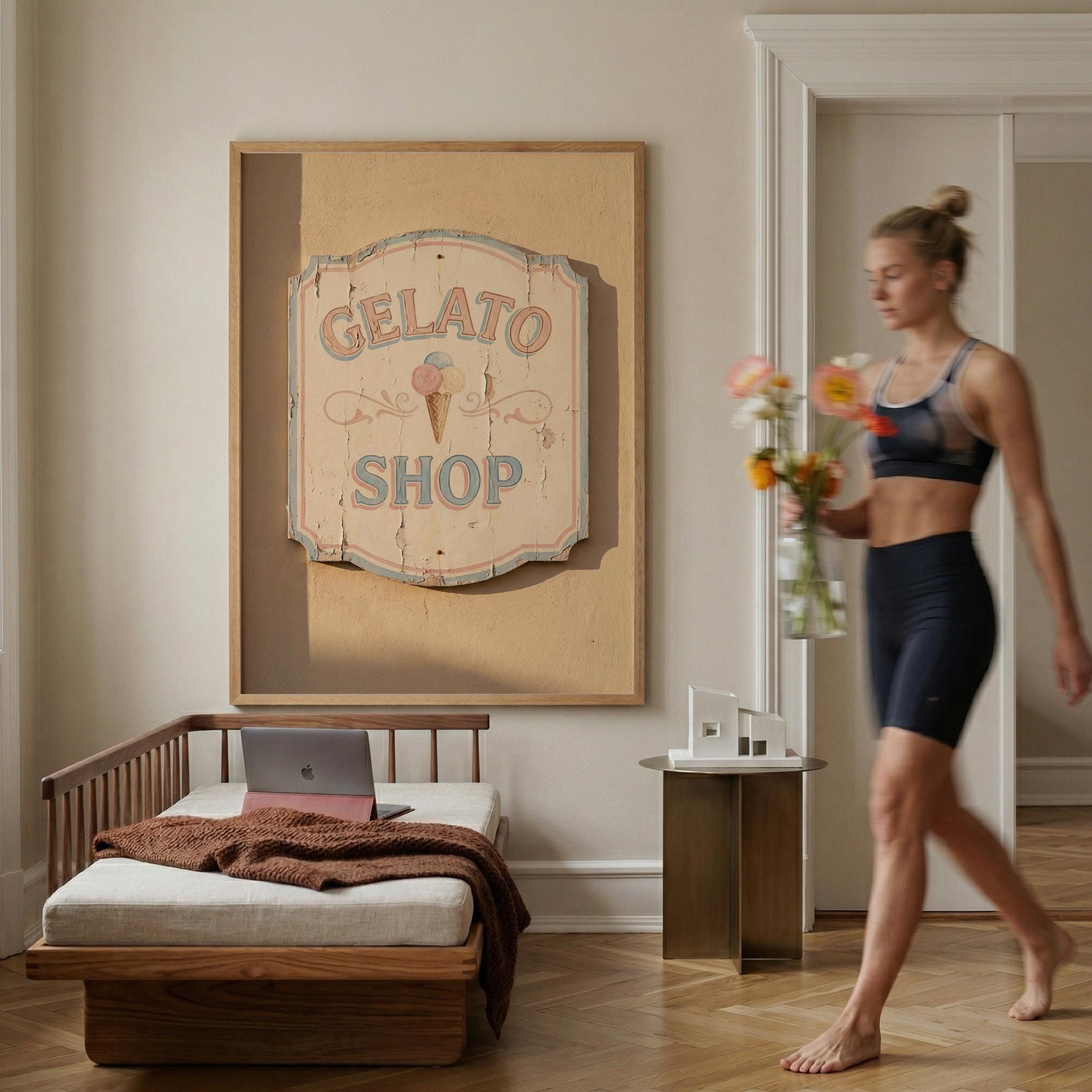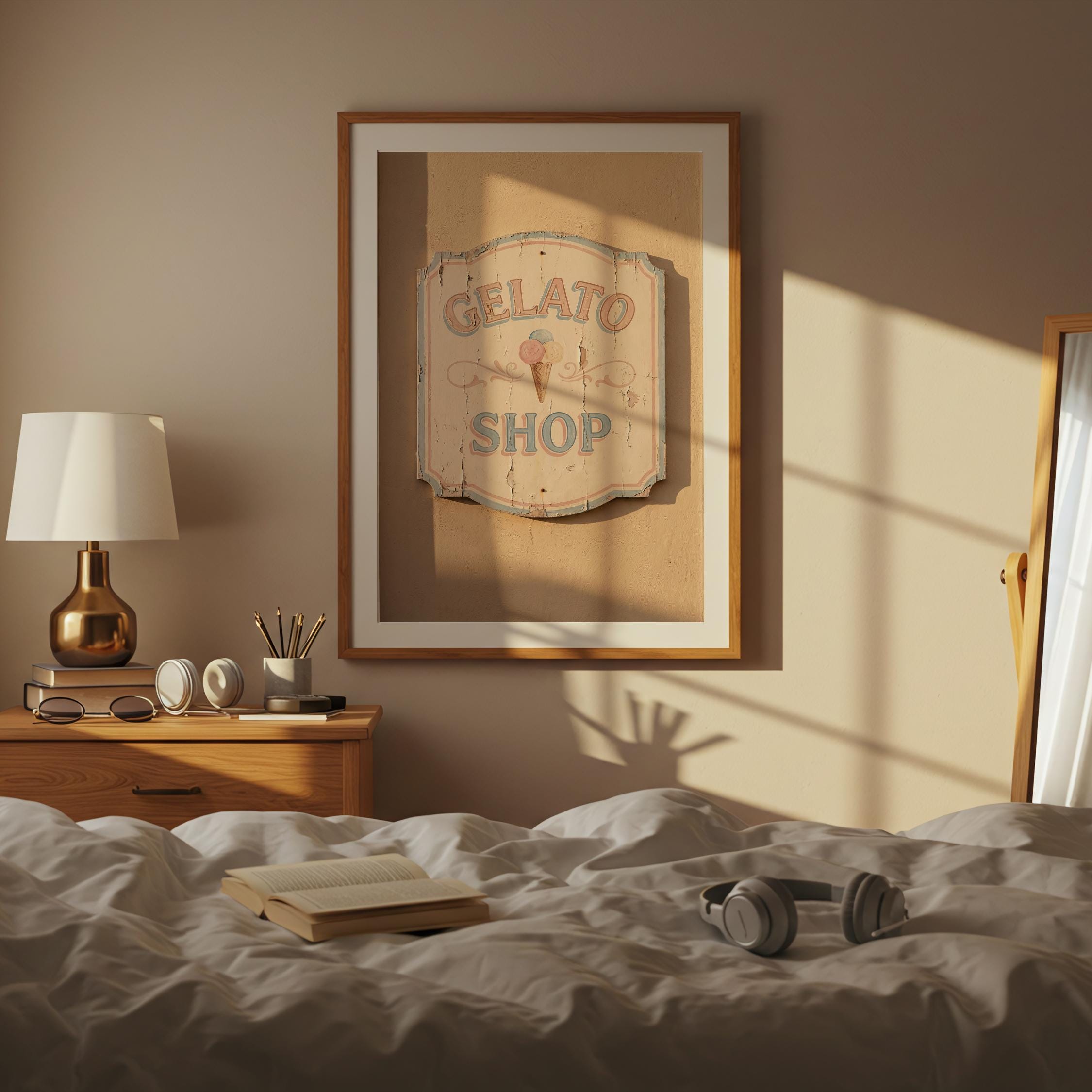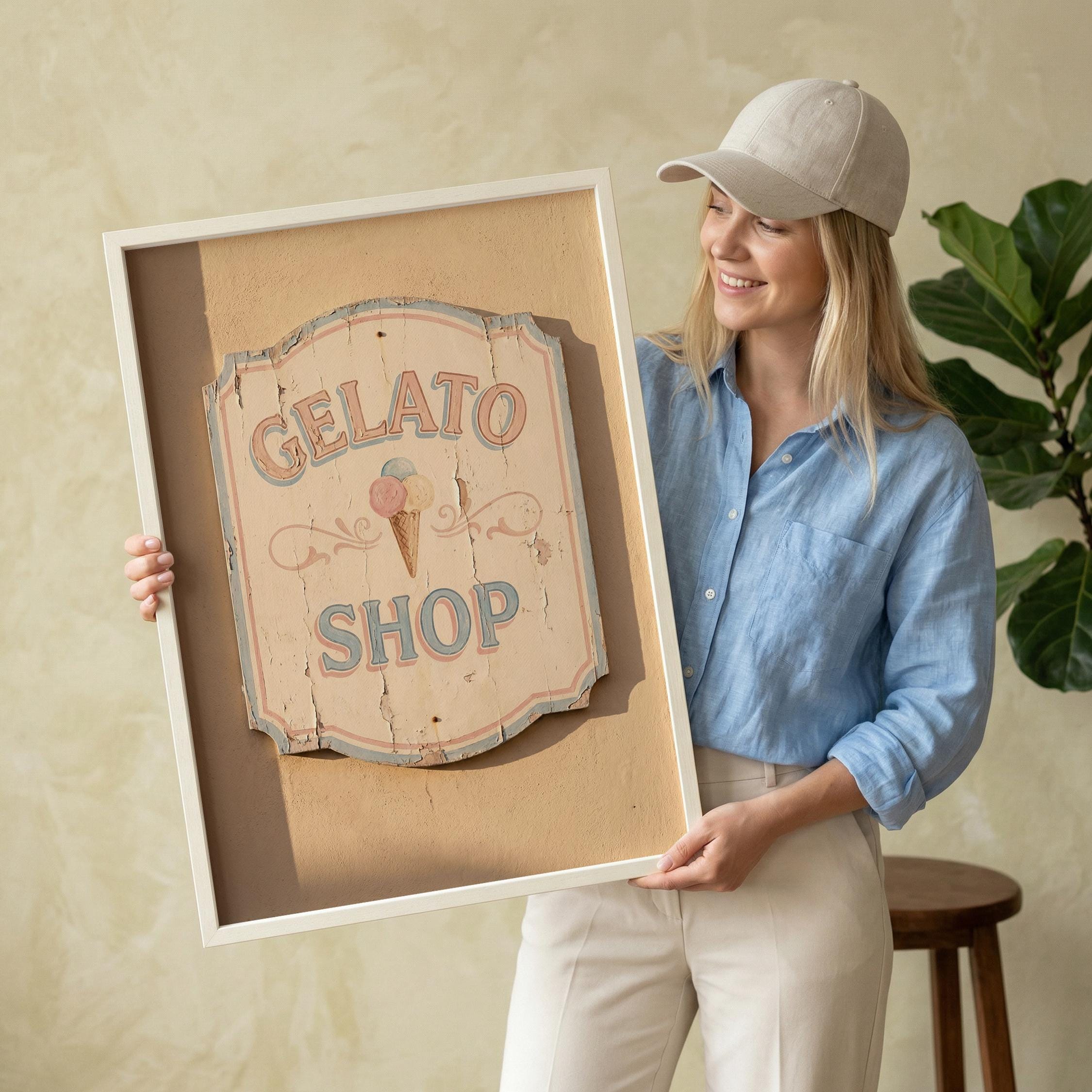 vintage gelato shop sign, perfect for kitchen or dining area and a great gift for housewarming or summer celebration.