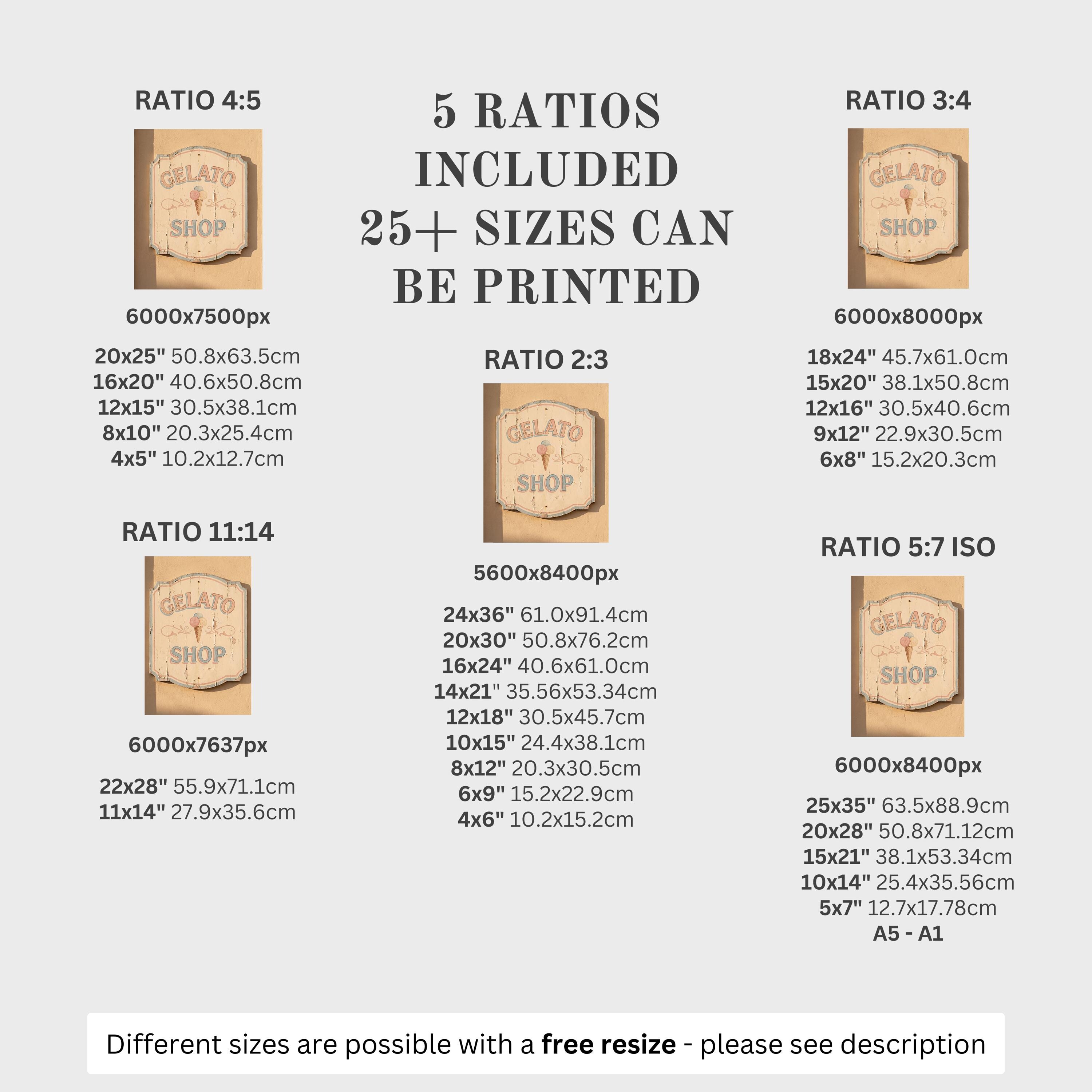 5 HIGH-QUALITY 300 DPI JPGs sized to fit +25 different frames in size and diverse ratios: