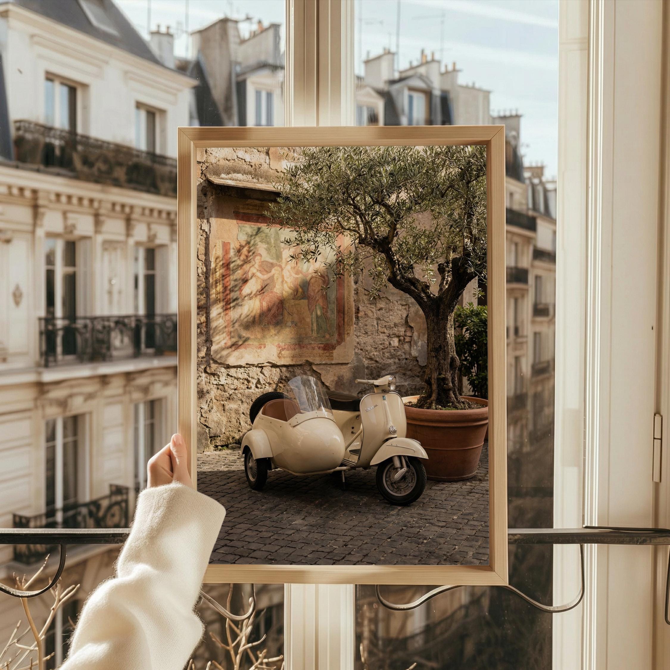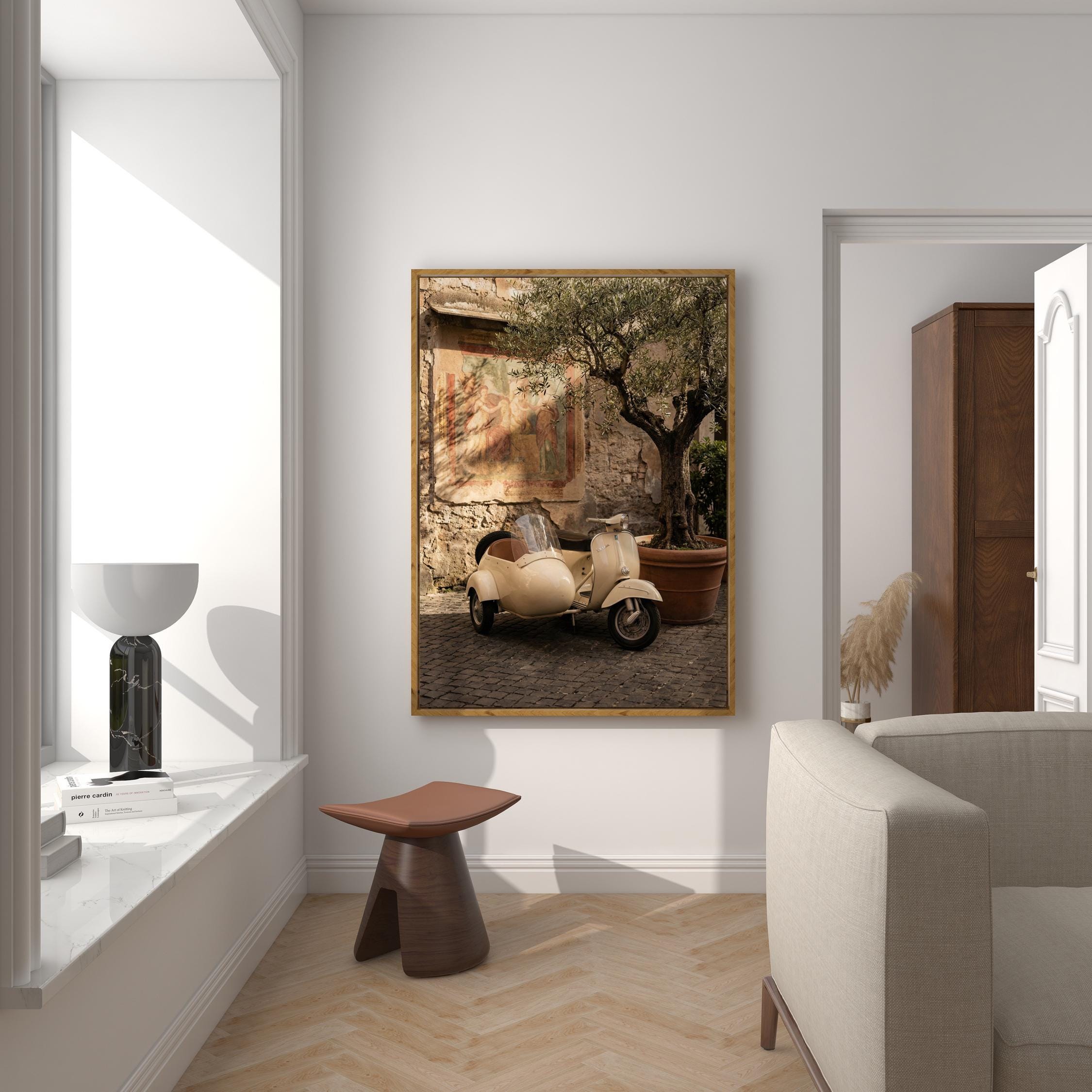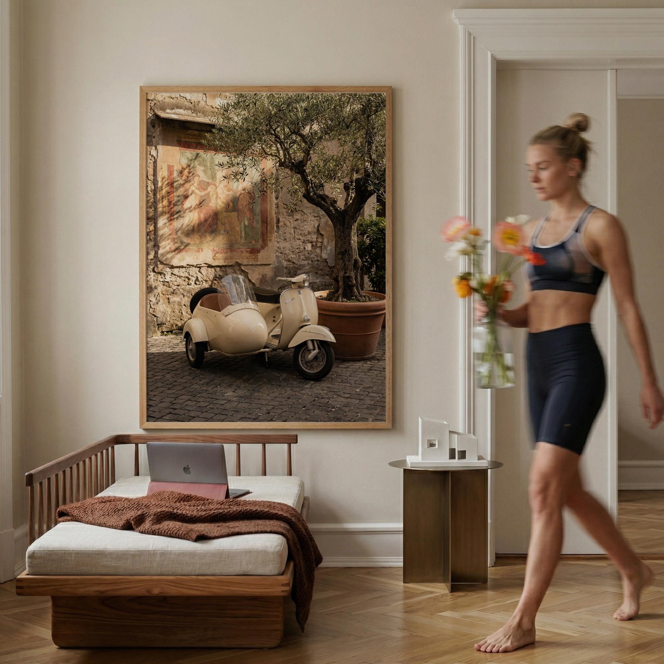 a charming vintage scooter, perfect for a cozy living room and a great gift for a housewarming gift.