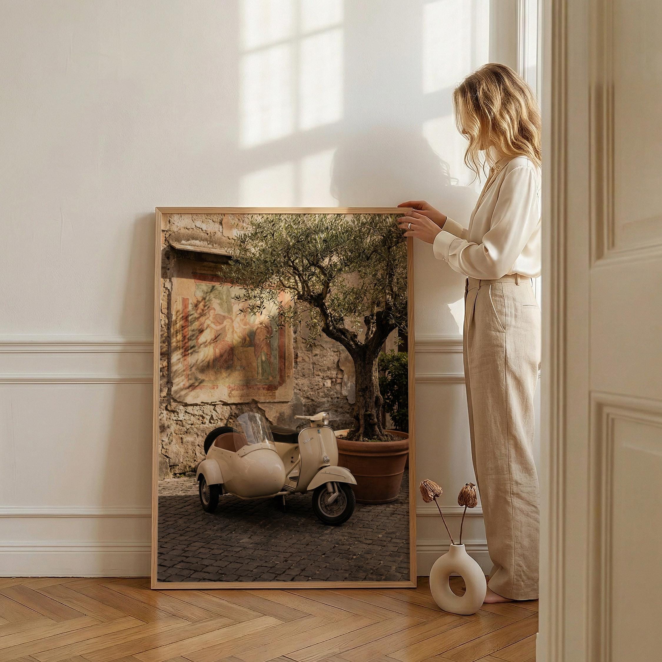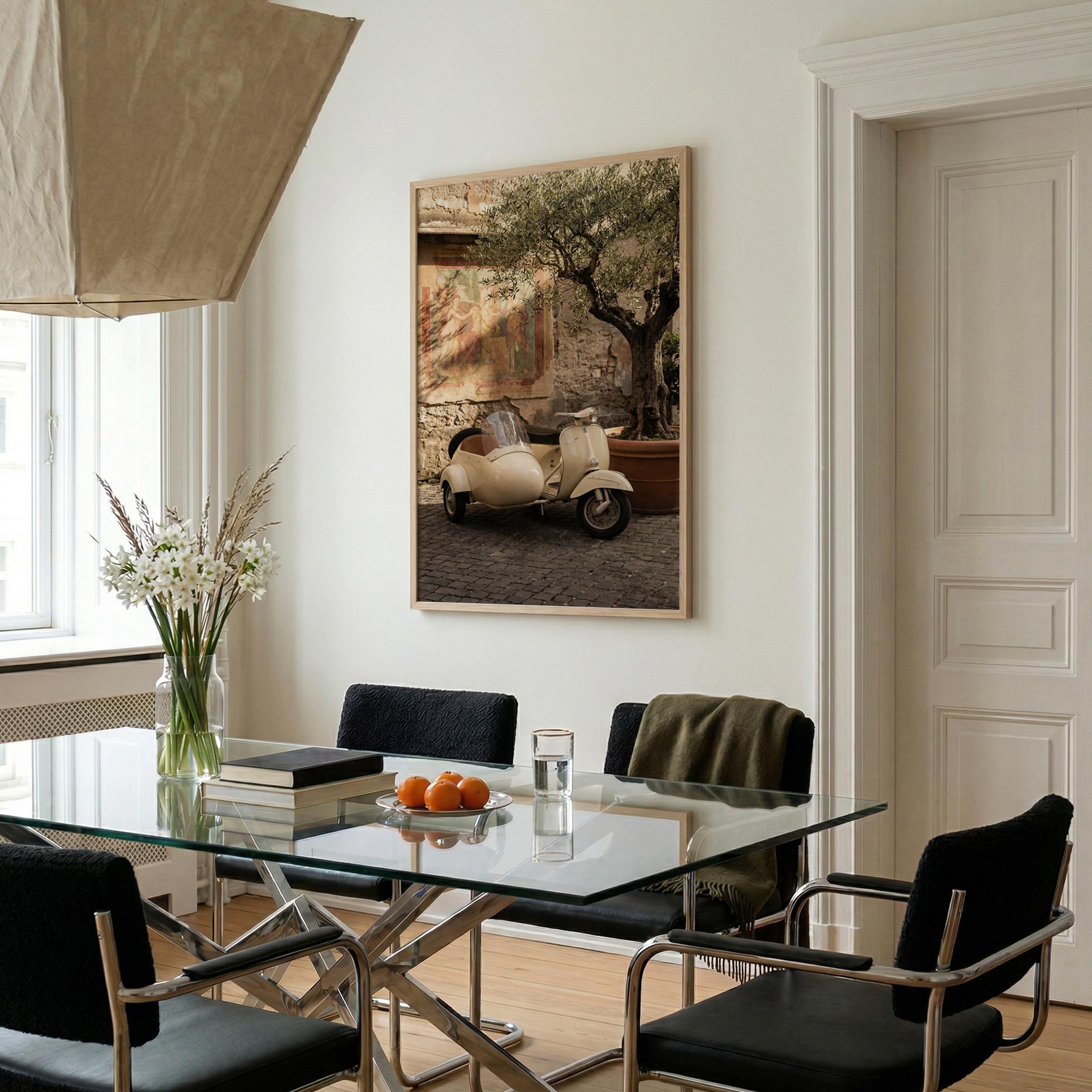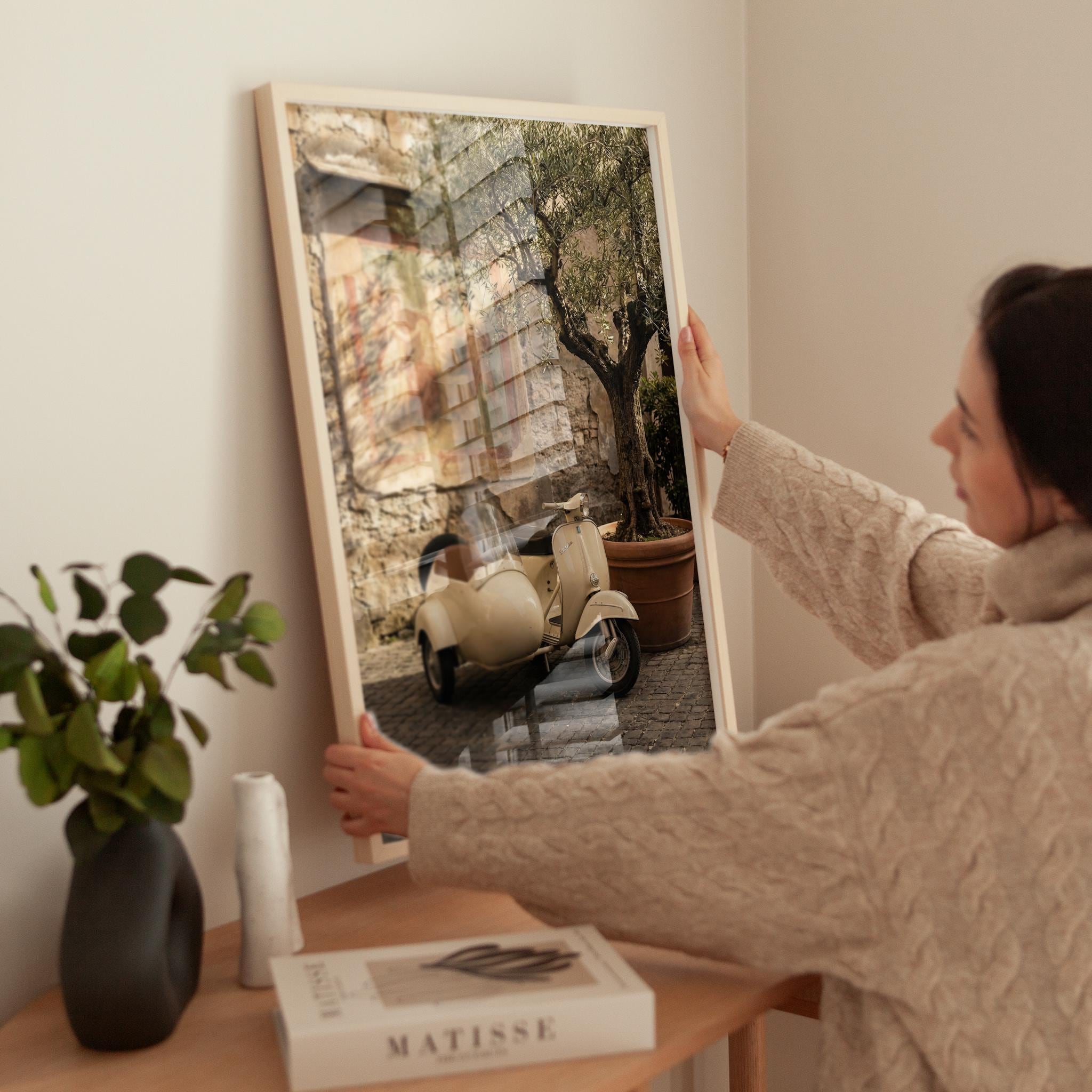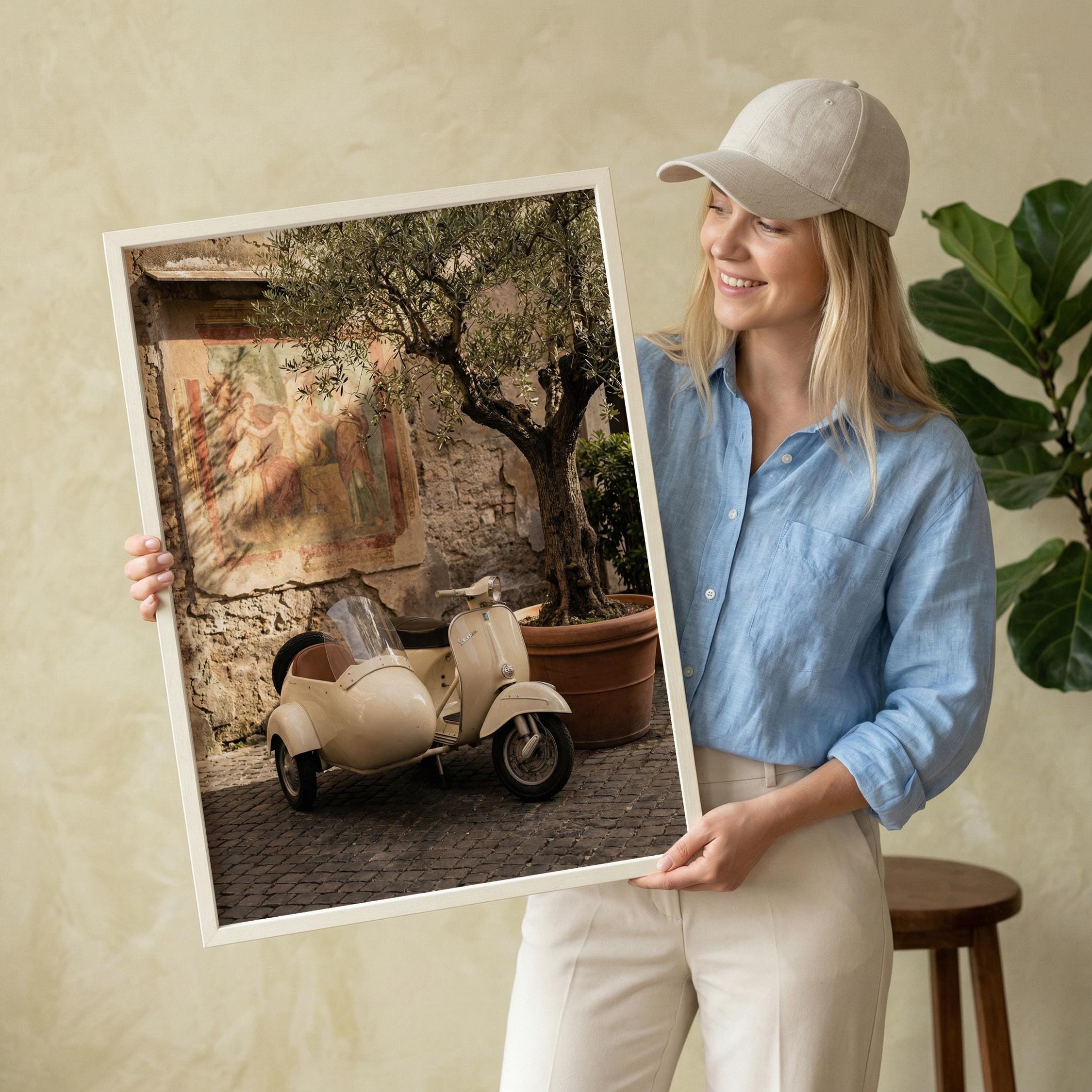 a charming vintage scooter, perfect for a cozy living room and a great gift for a housewarming gift.