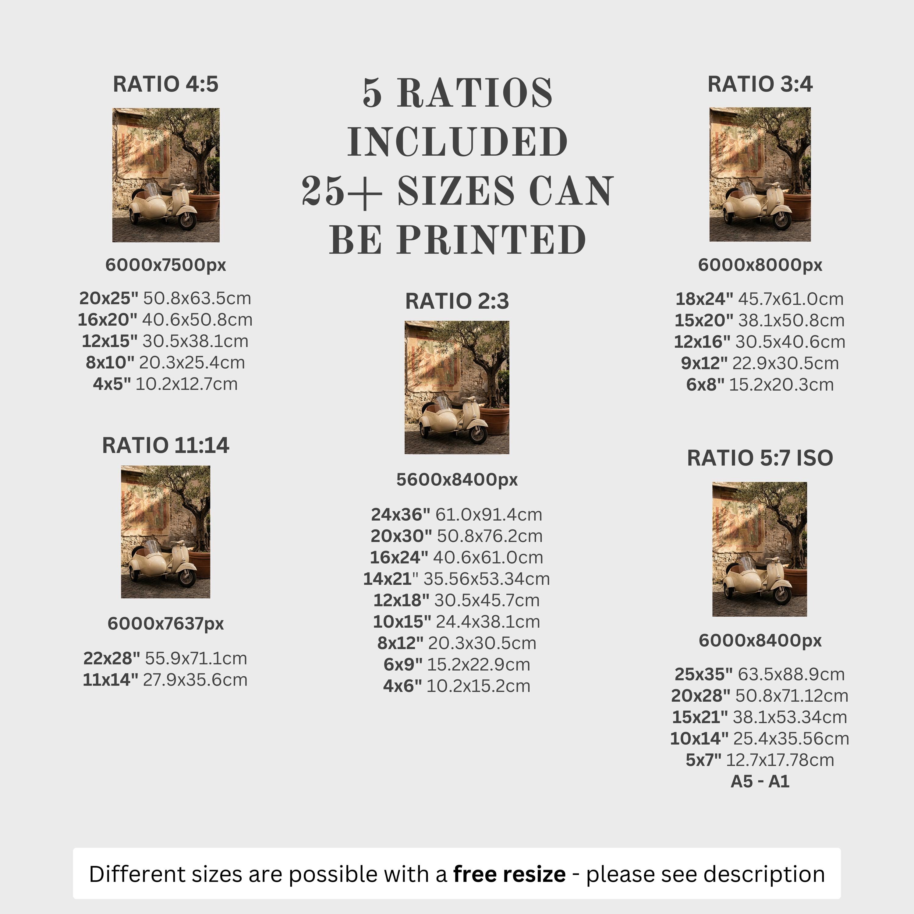 5 HIGH-QUALITY 300 DPI JPGs sized to fit +25 different frames in size and diverse ratios: