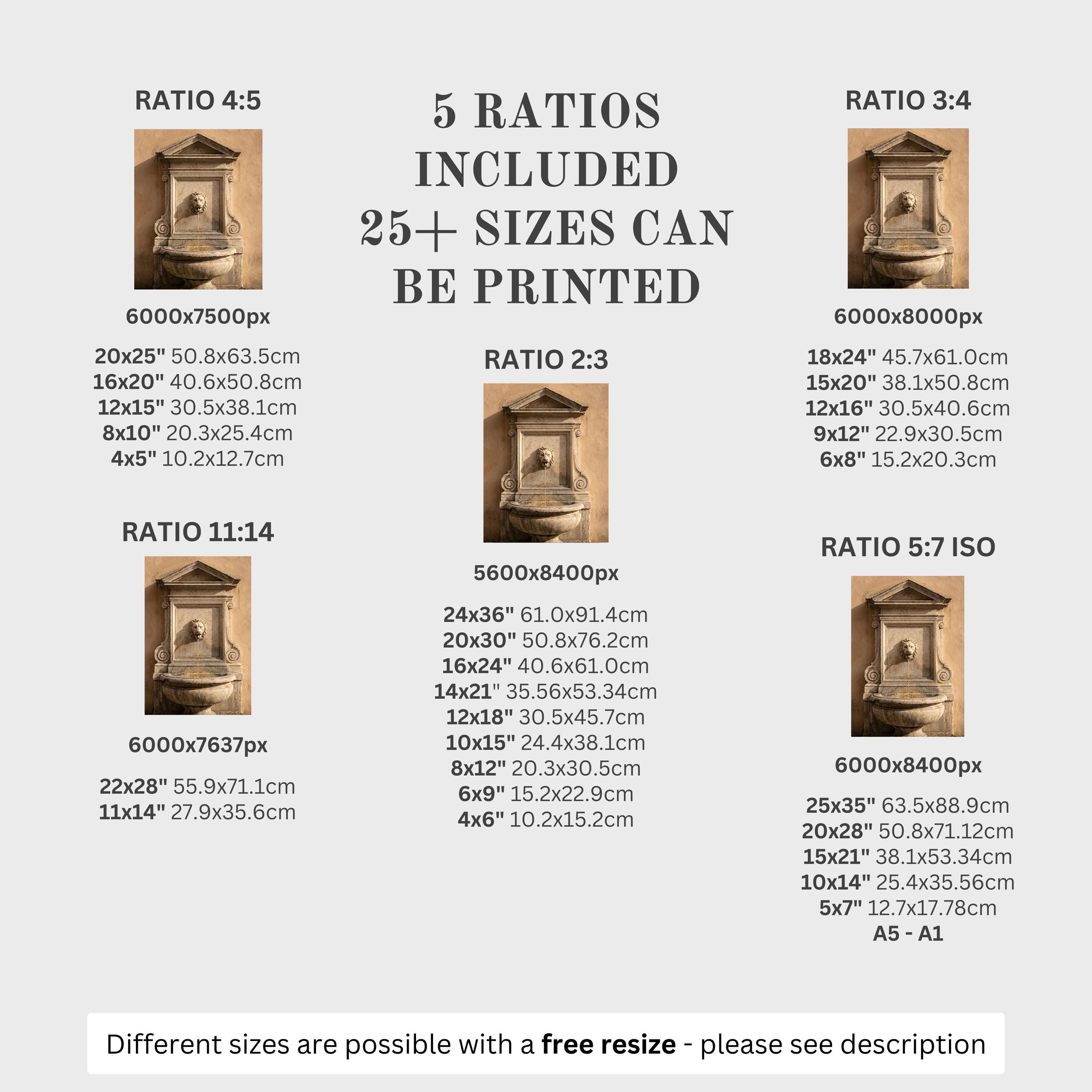 5 HIGH-QUALITY 300 DPI JPGs sized to fit +25 different frames in size and diverse ratios: