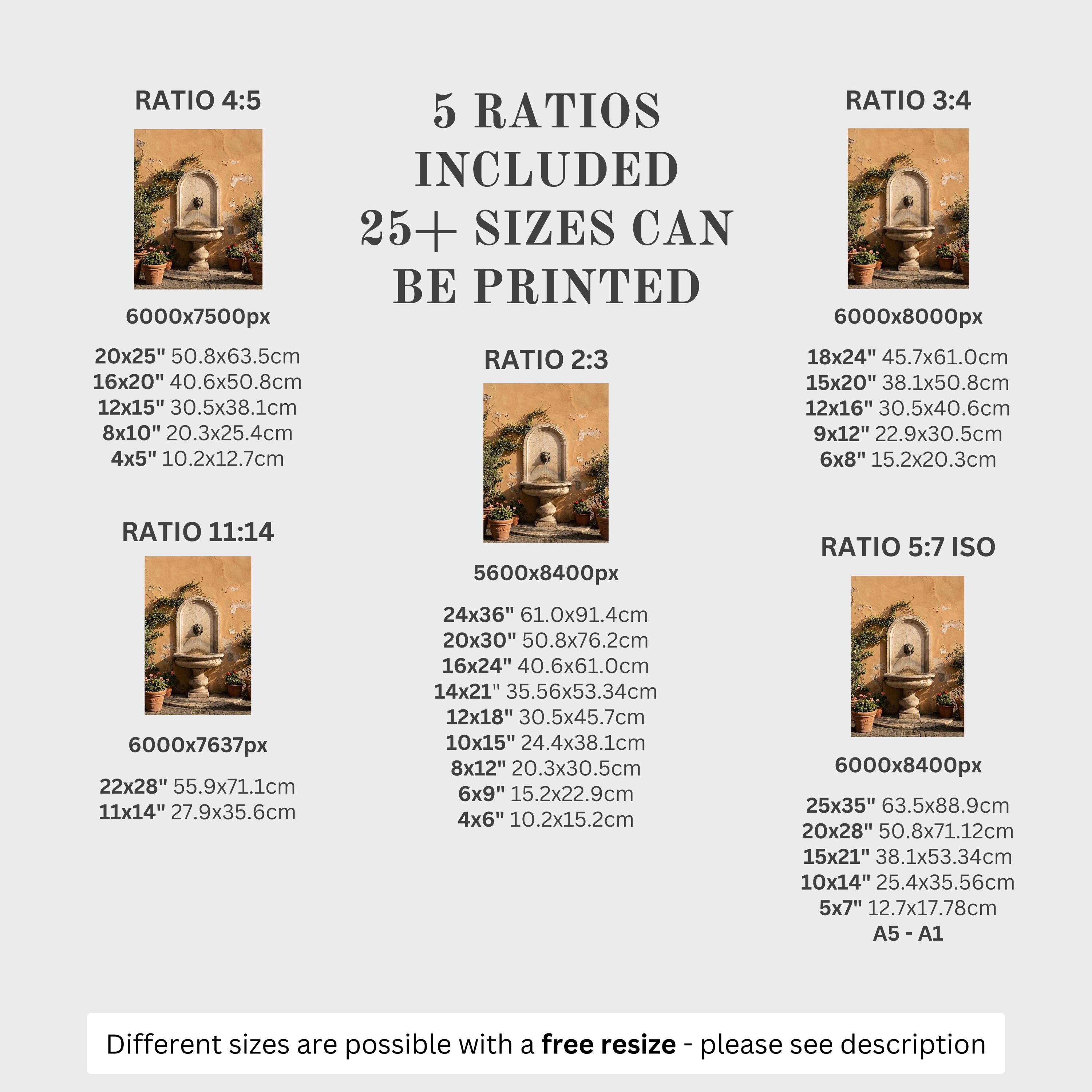 5 HIGH-QUALITY 300 DPI JPGs sized to fit +25 different frames in size and diverse ratios: