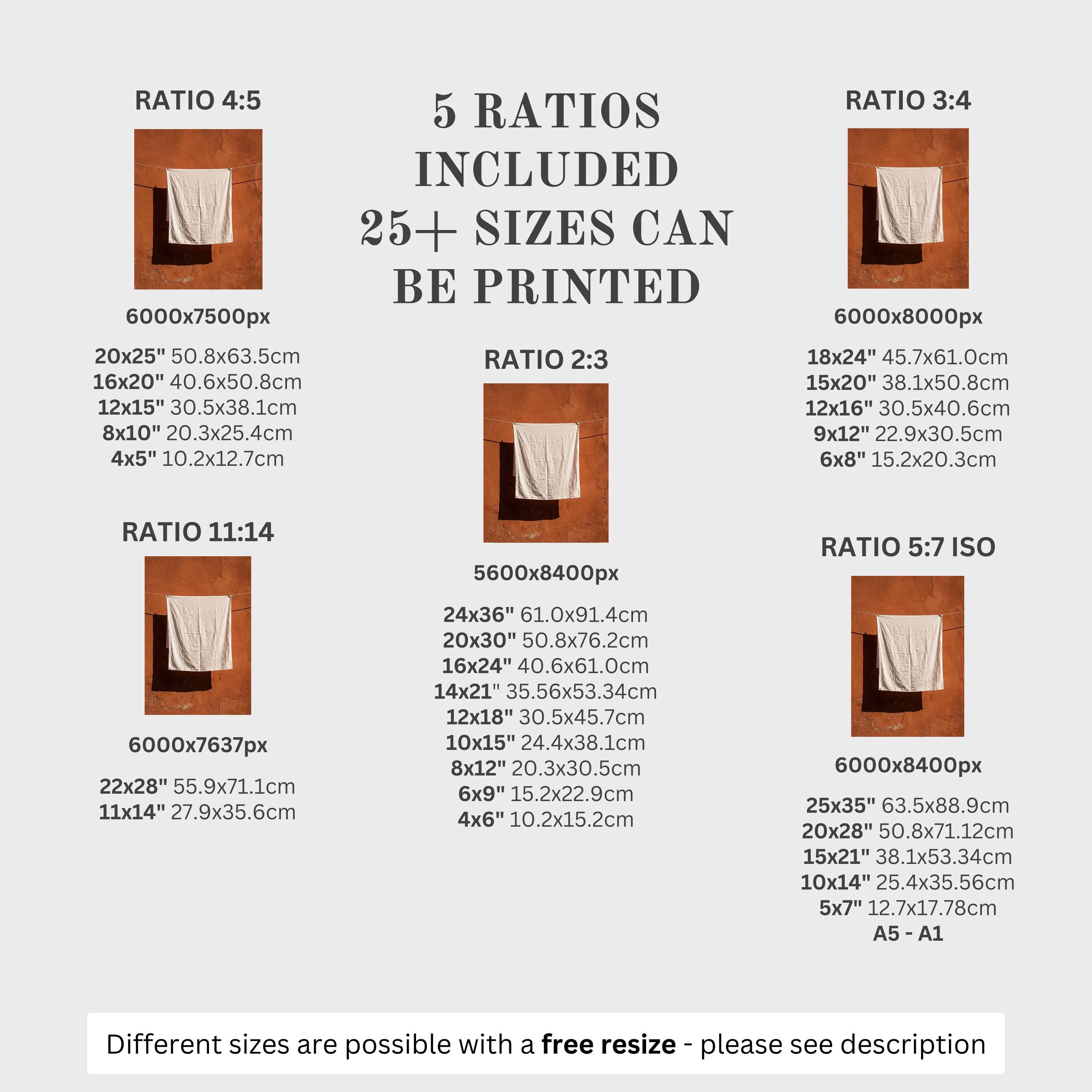 5 HIGH-QUALITY 300 DPI JPGs sized to fit +25 different frames in size and diverse ratios: