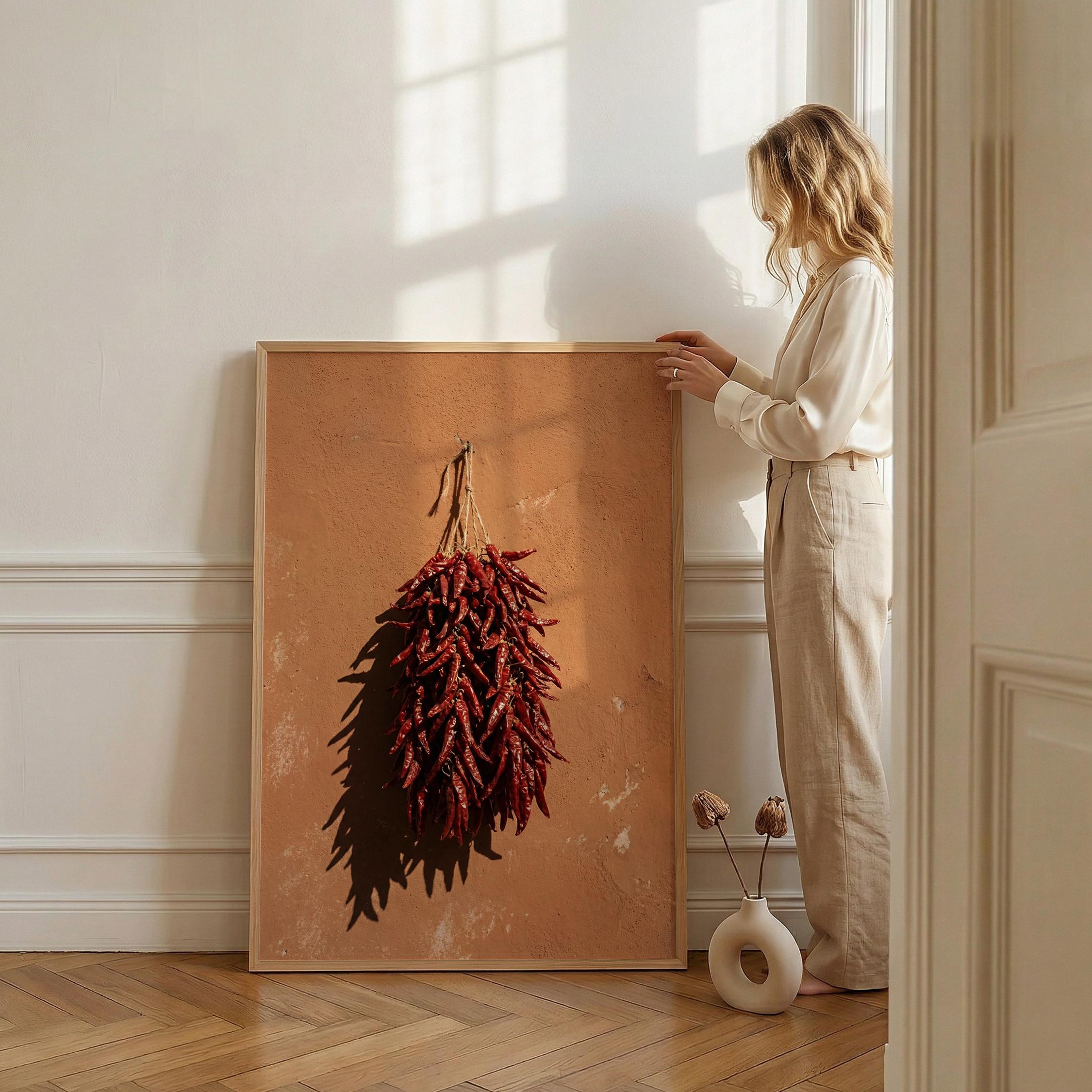 a vibrant depiction of Italian red chili peppers, perfect for your kitchen or dining area and a great gift for housewarming or culinary enthusiasts.