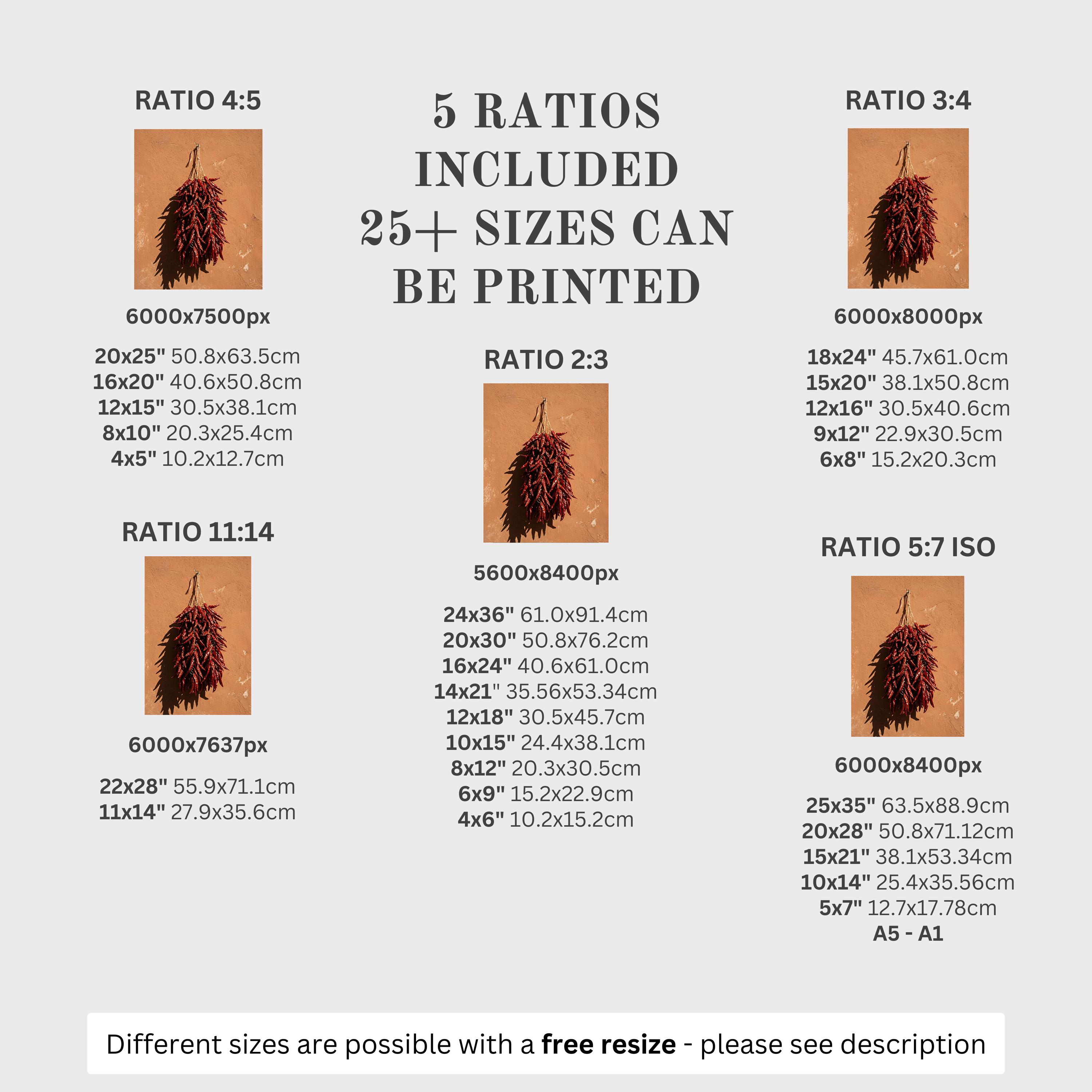 5 HIGH-QUALITY 300 DPI JPGs sized to fit +25 different frames in size and diverse ratios: