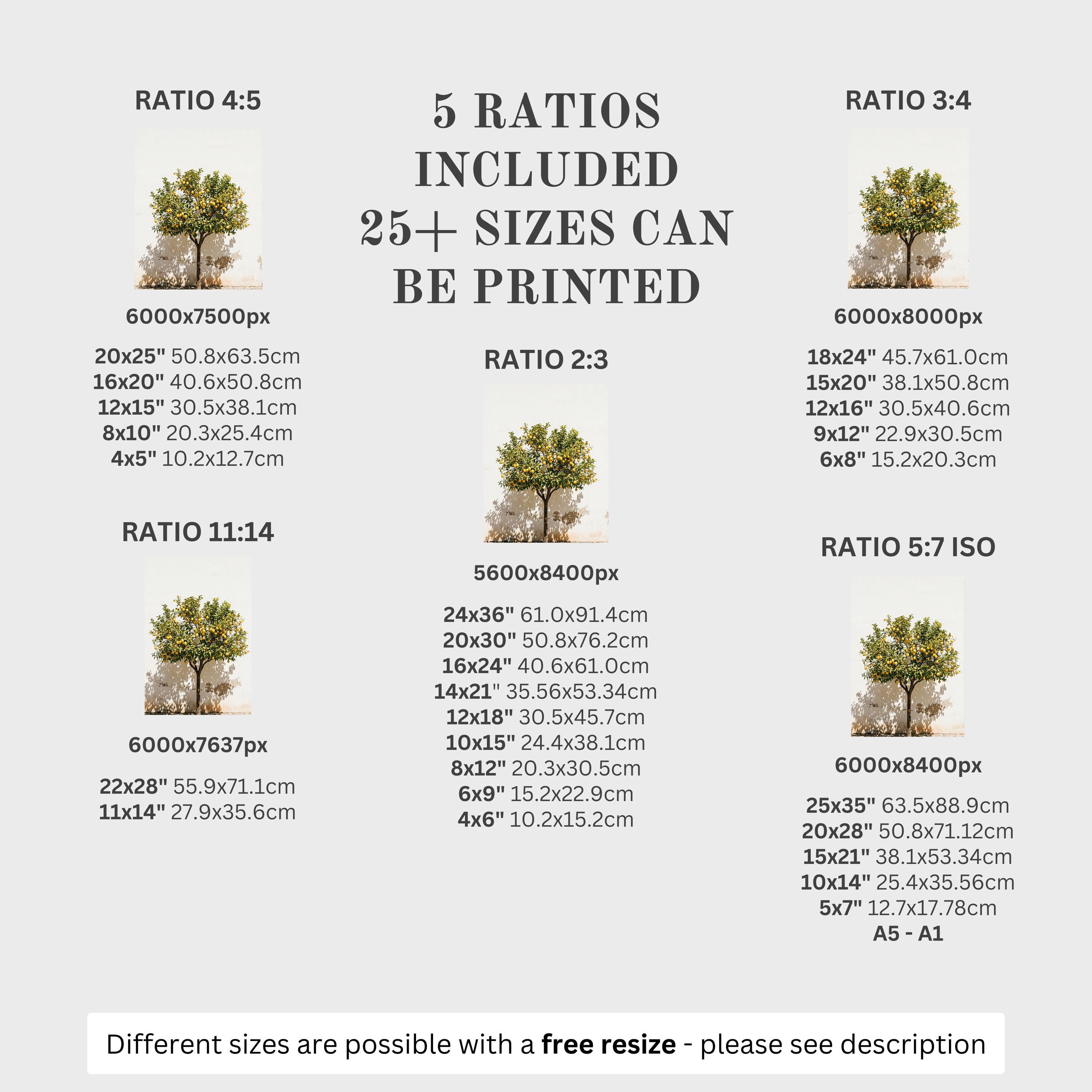 5 HIGH-QUALITY 300 DPI JPGs sized to fit +25 different frames in size and diverse ratios: