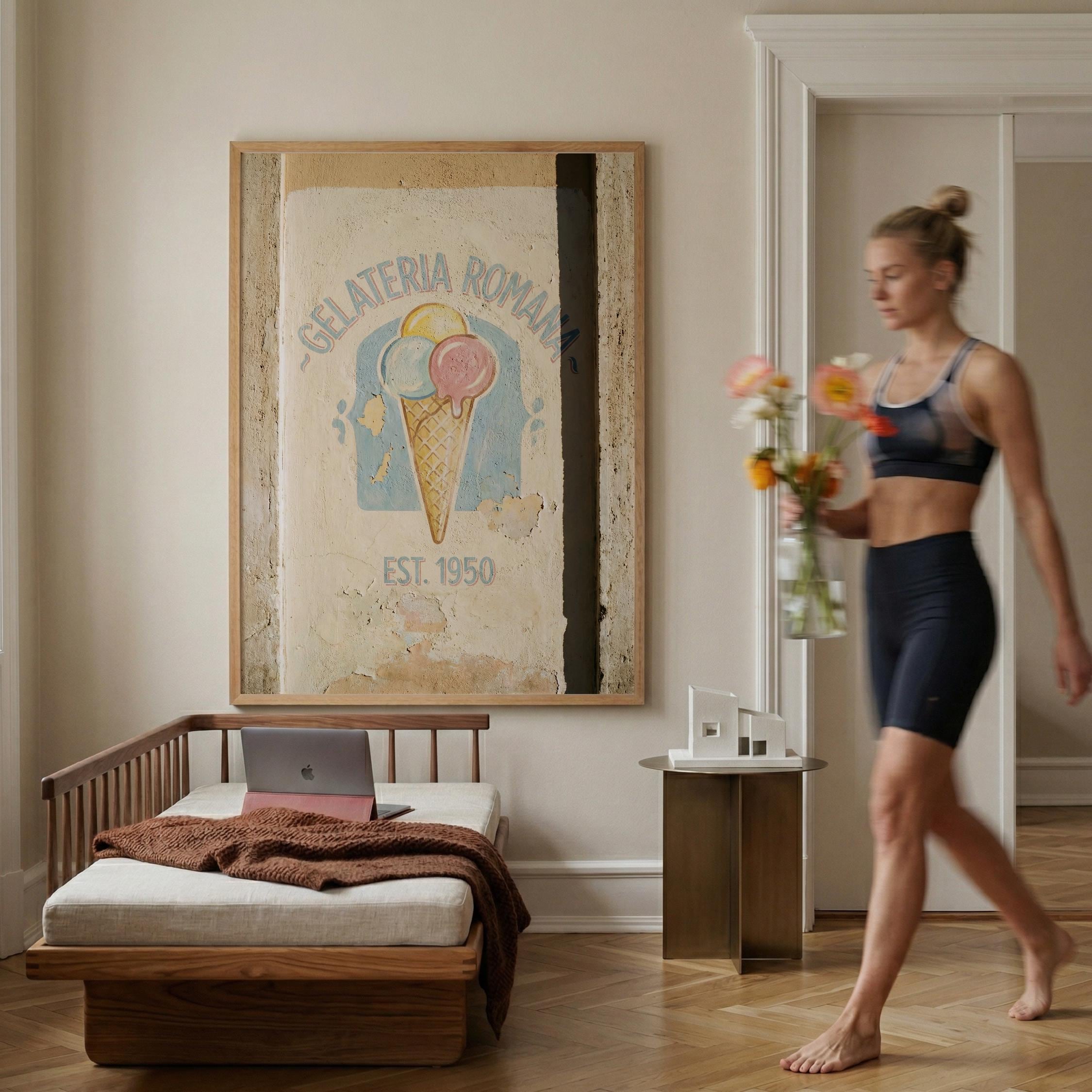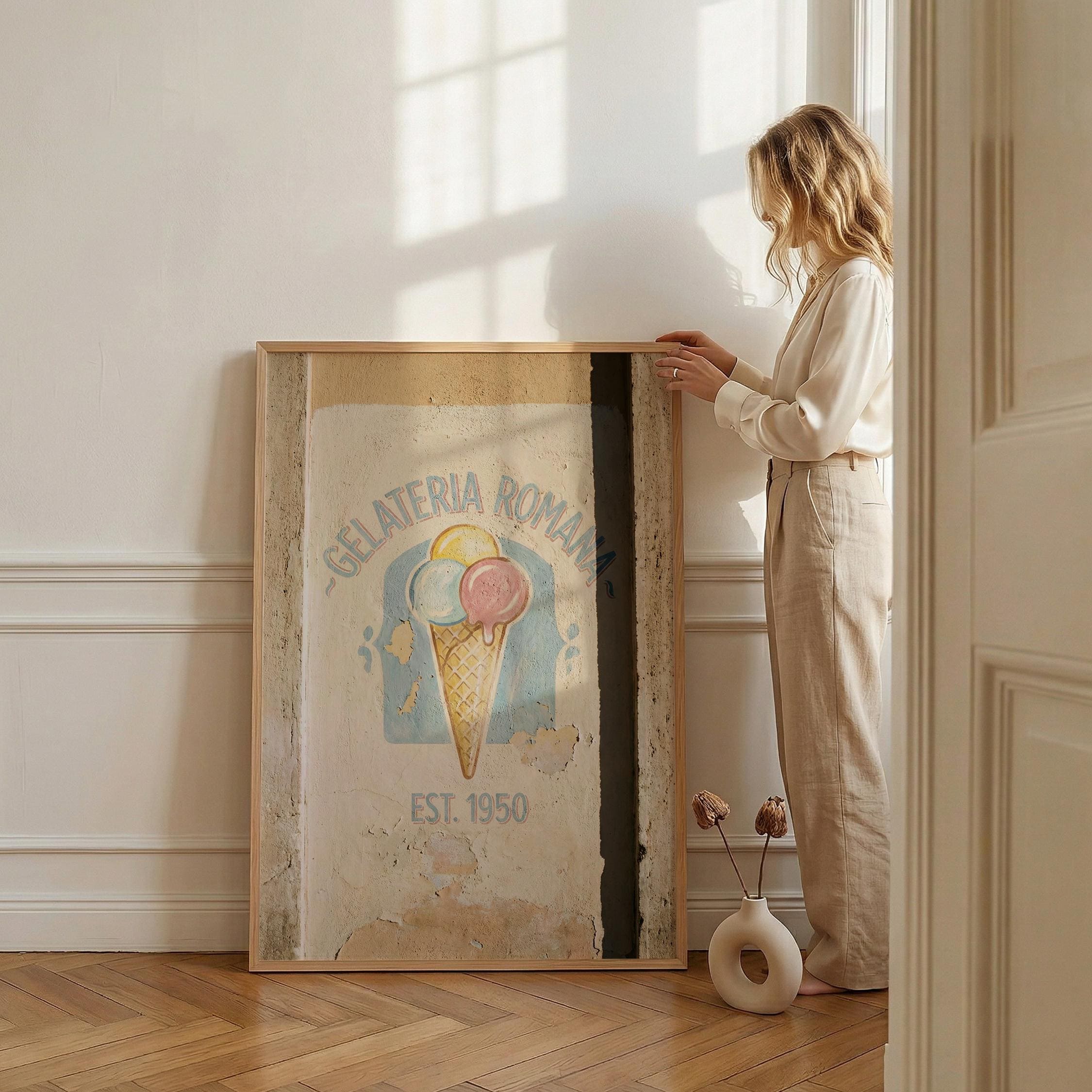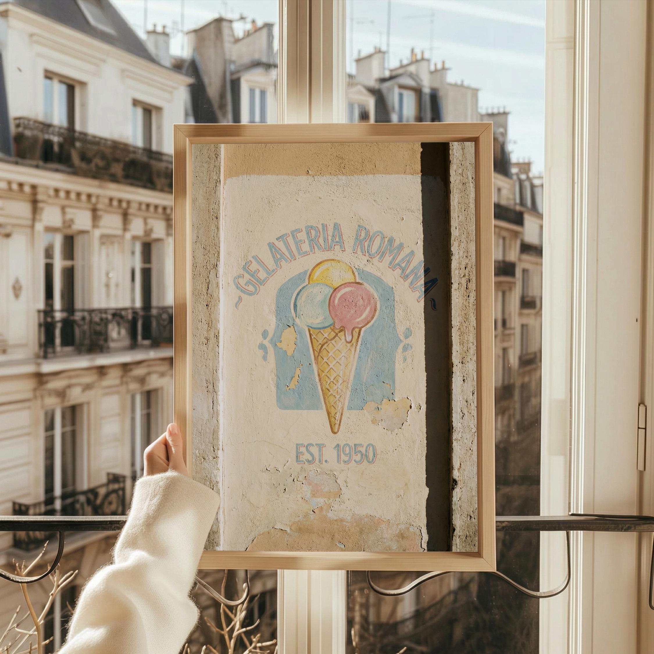 a charming vintage gelato sign, perfect for a kitchen or dining area and a great gift for a summer party or ice cream social.