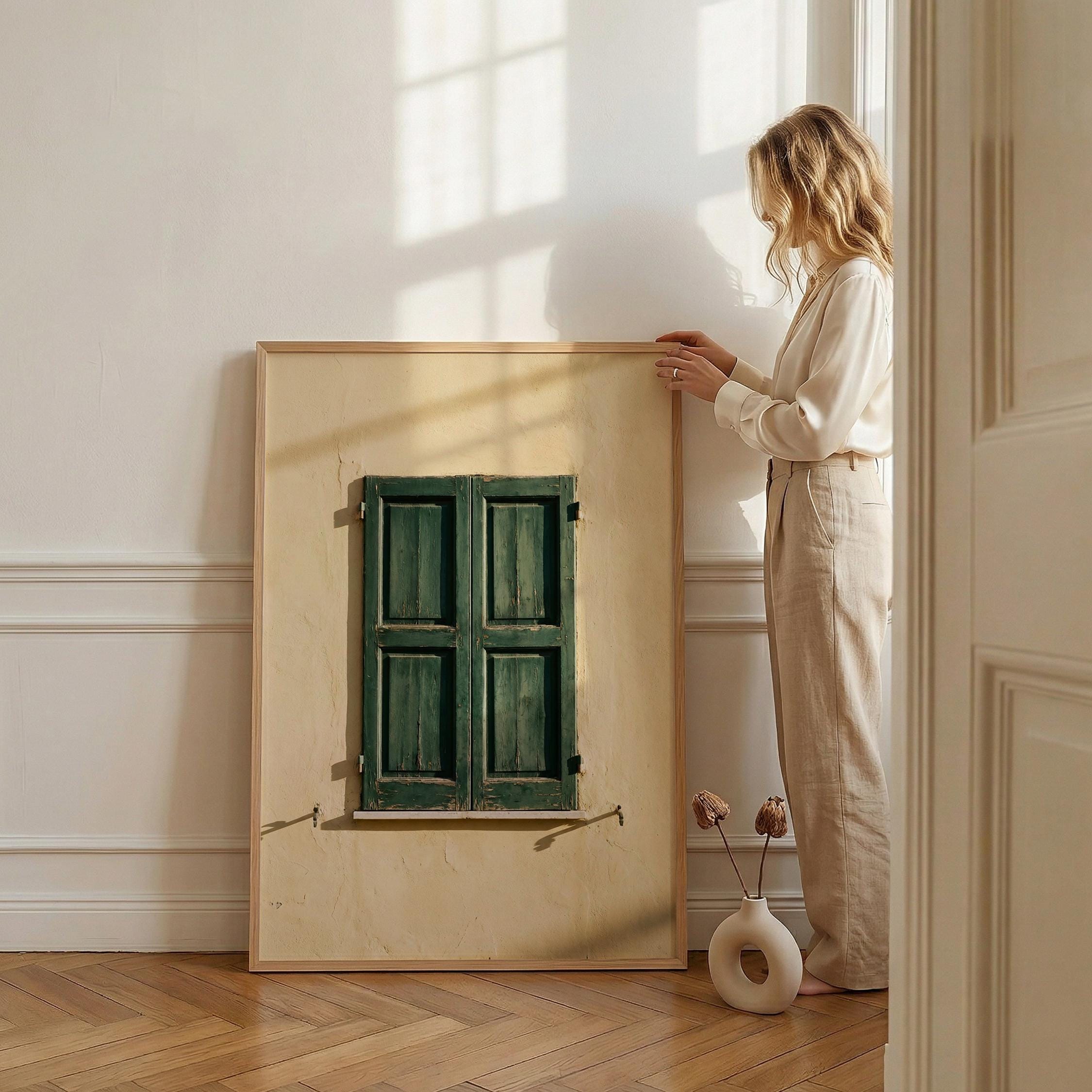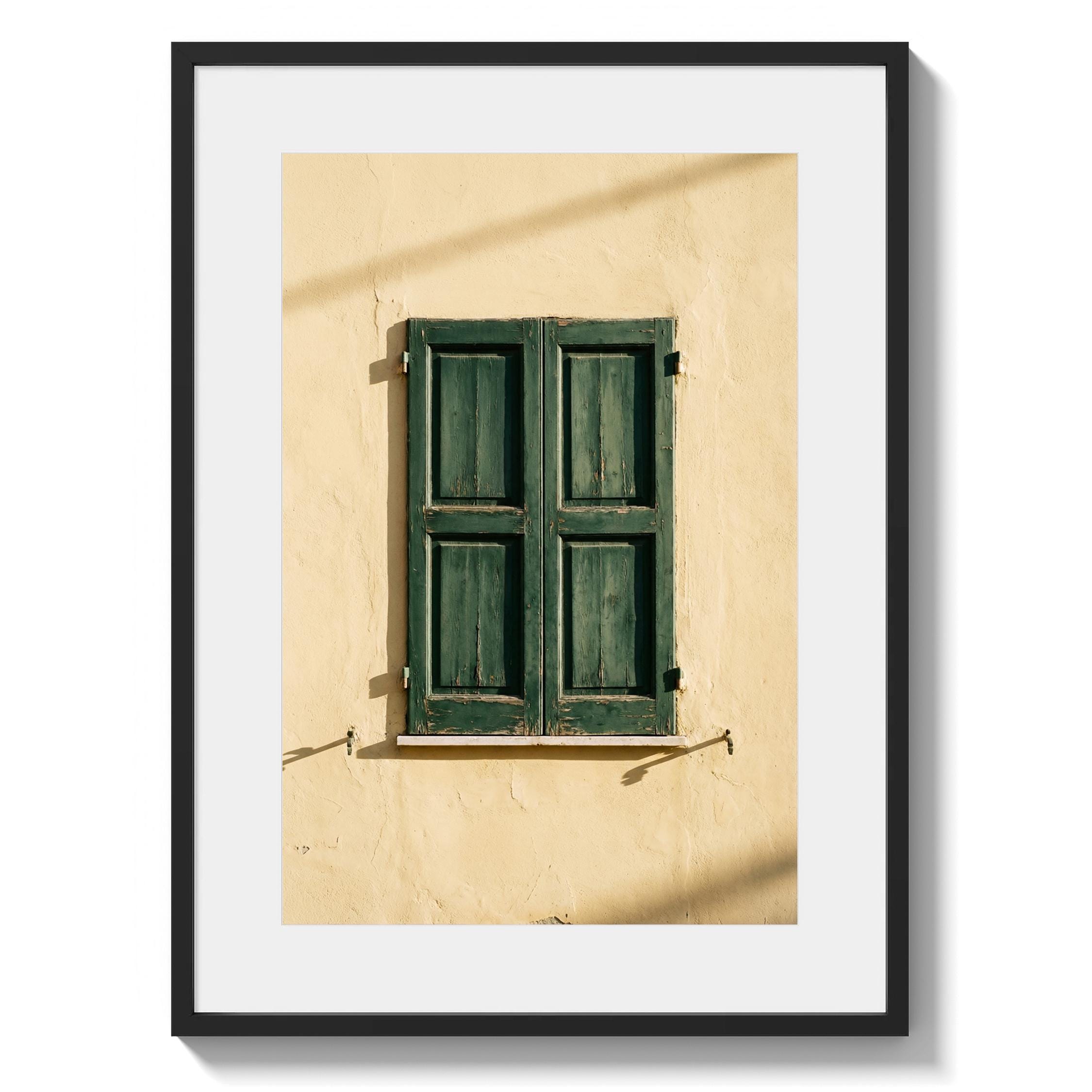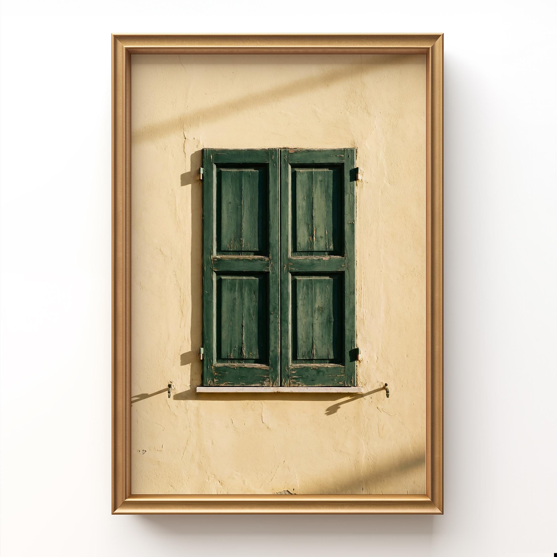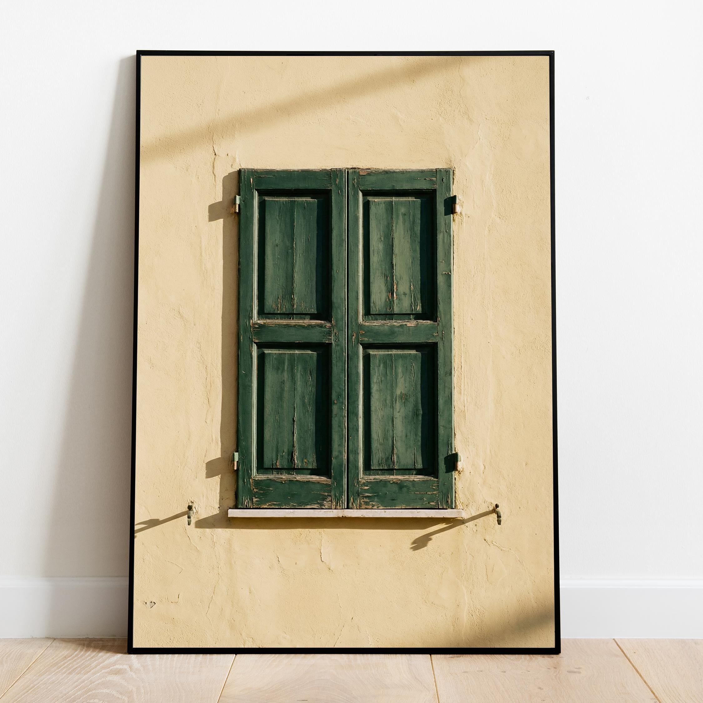 a stunning image of rustic Italian shutters, perfect for your living room and a great gift for housewarming gifts.