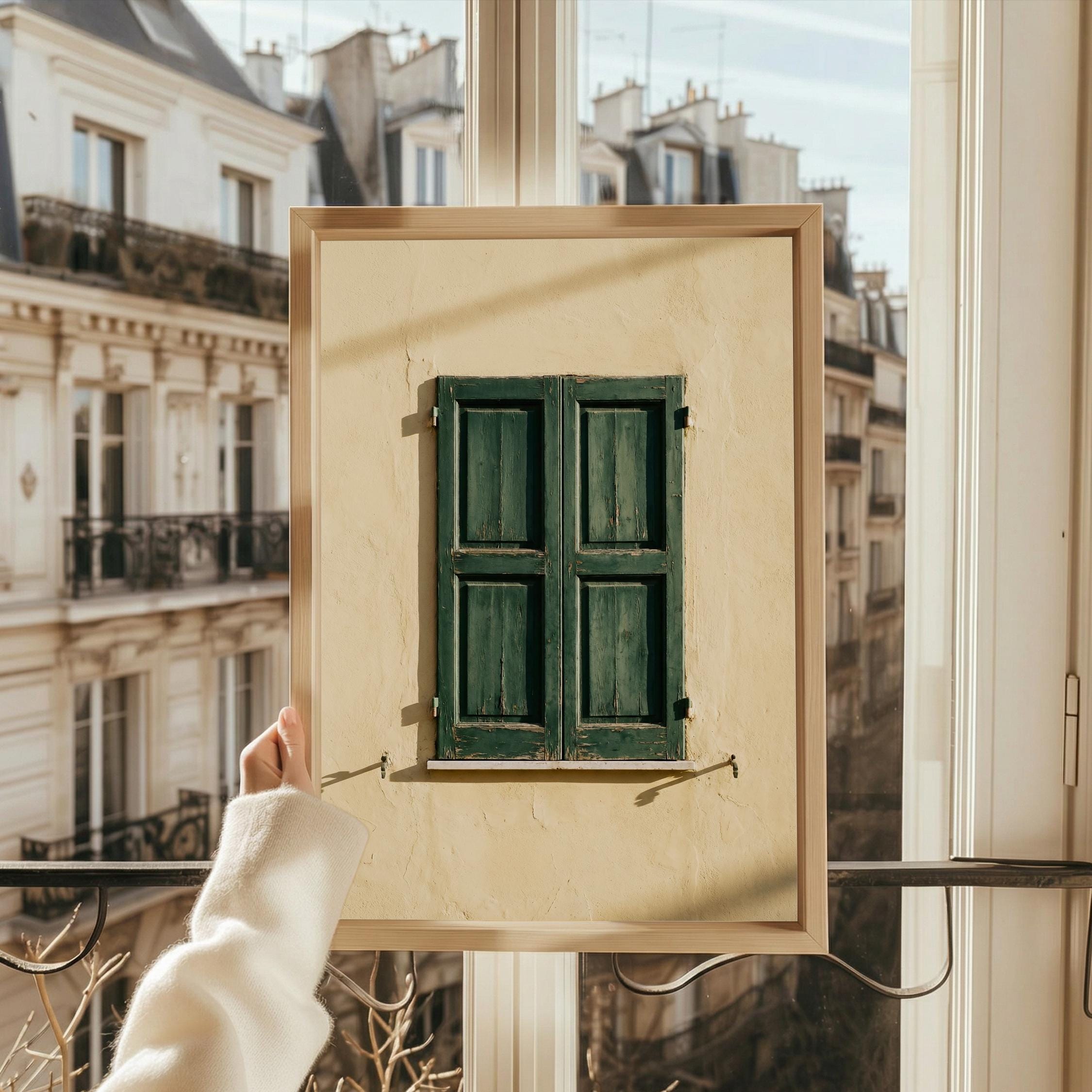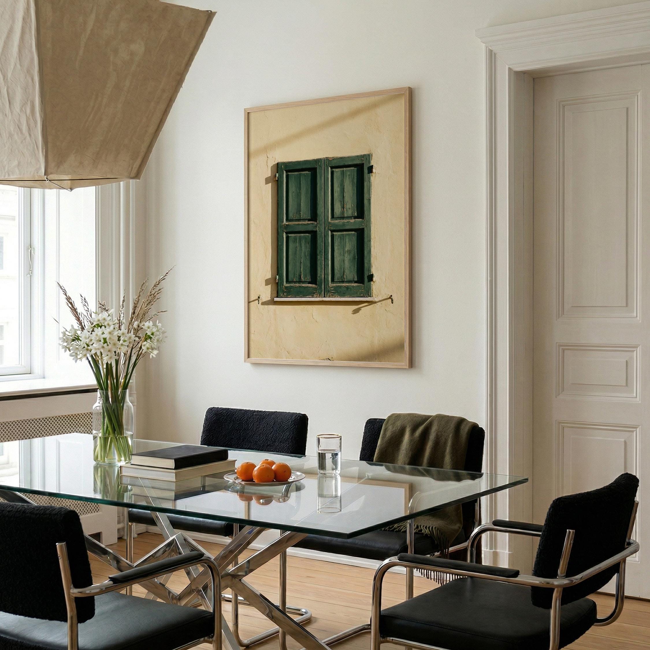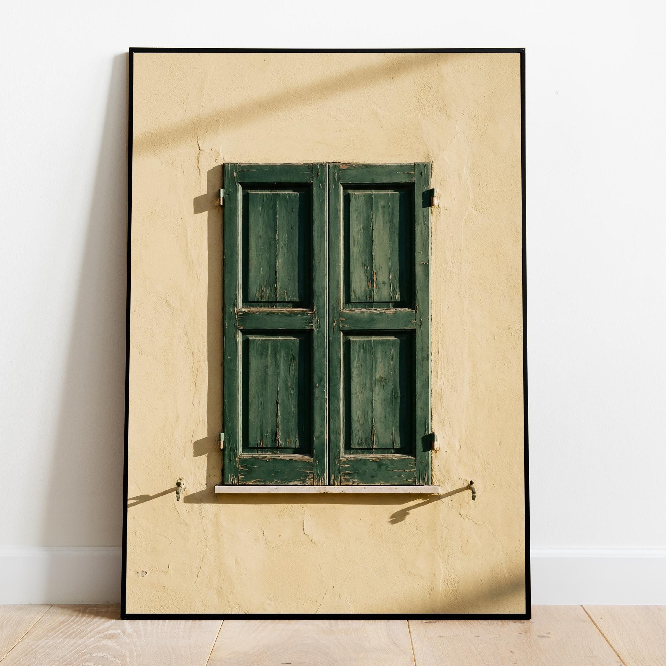 a stunning image of rustic Italian shutters, perfect for your living room and a great gift for housewarming gifts.