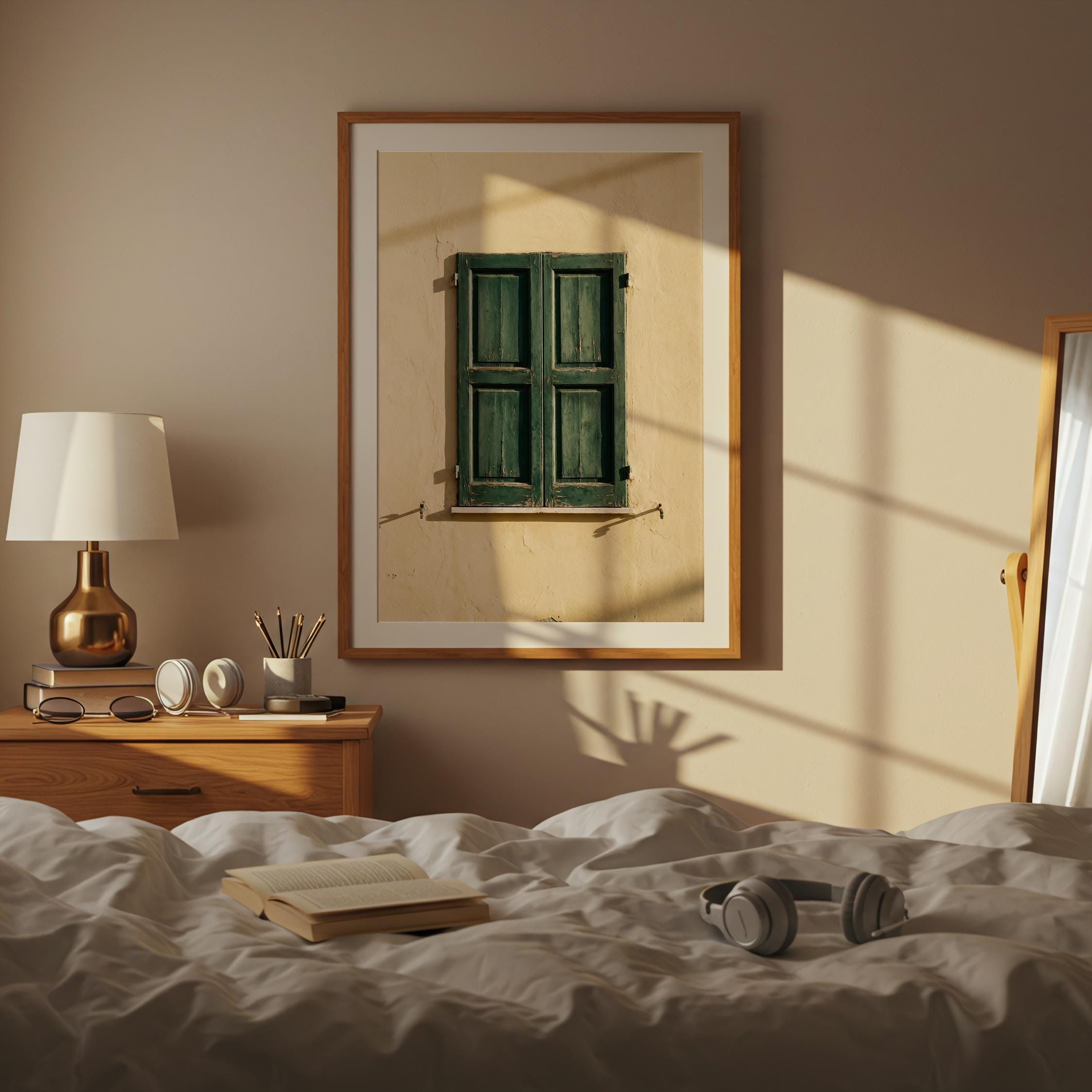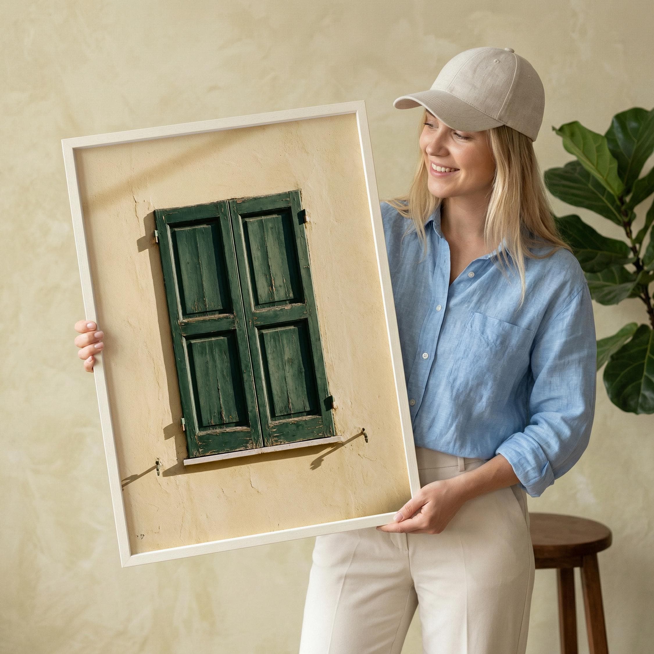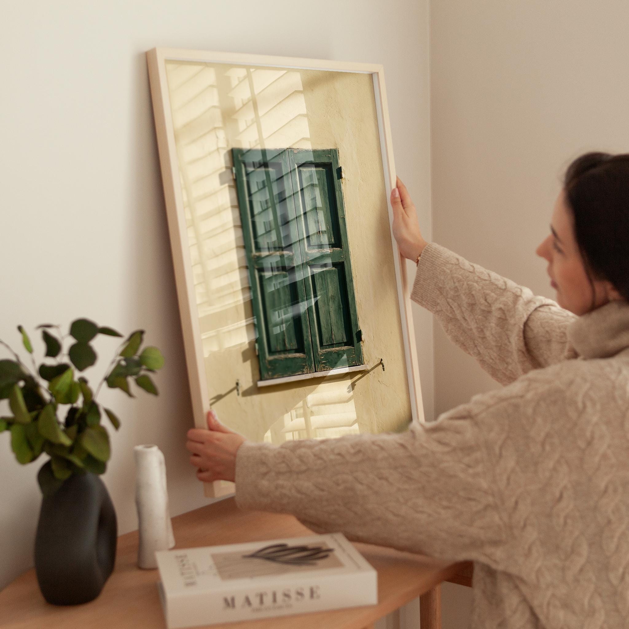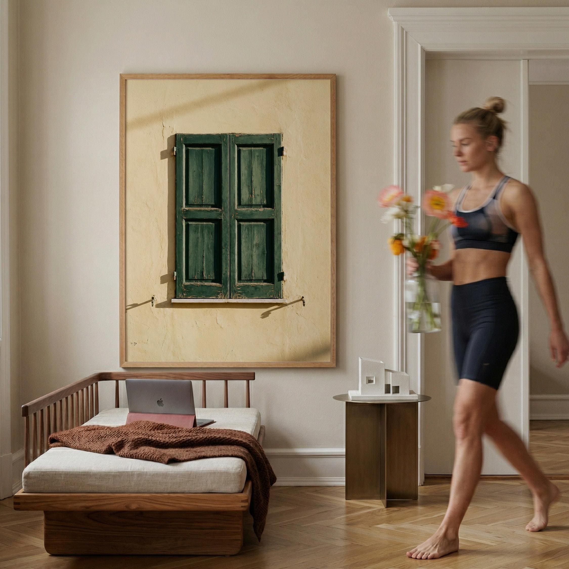 a stunning image of rustic Italian shutters, perfect for your living room and a great gift for housewarming gifts.