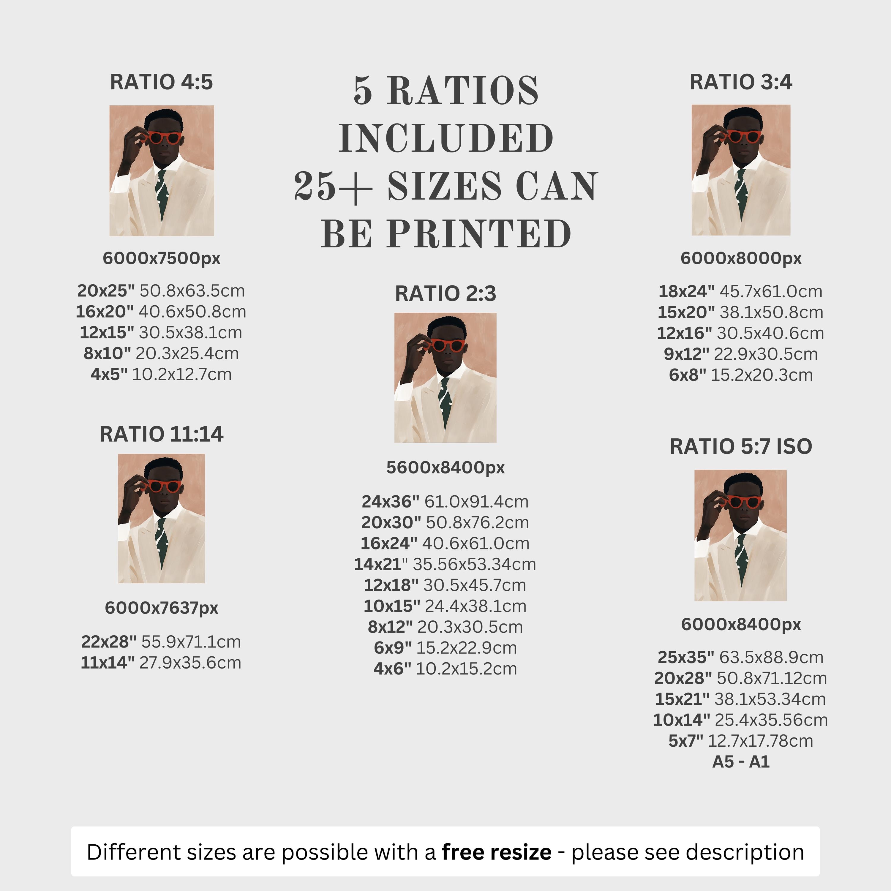 5 HIGH-QUALITY 300 DPI JPGs sized to fit +25 different frames in size and diverse ratios: