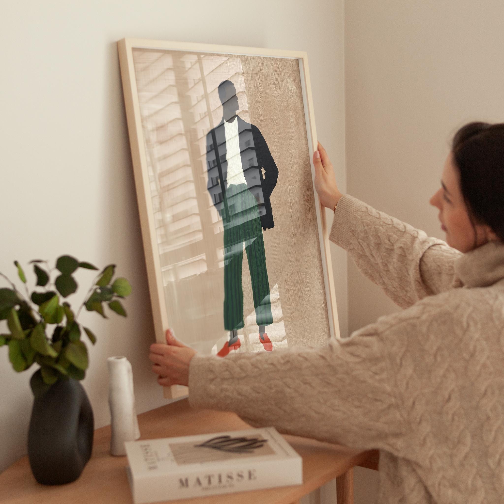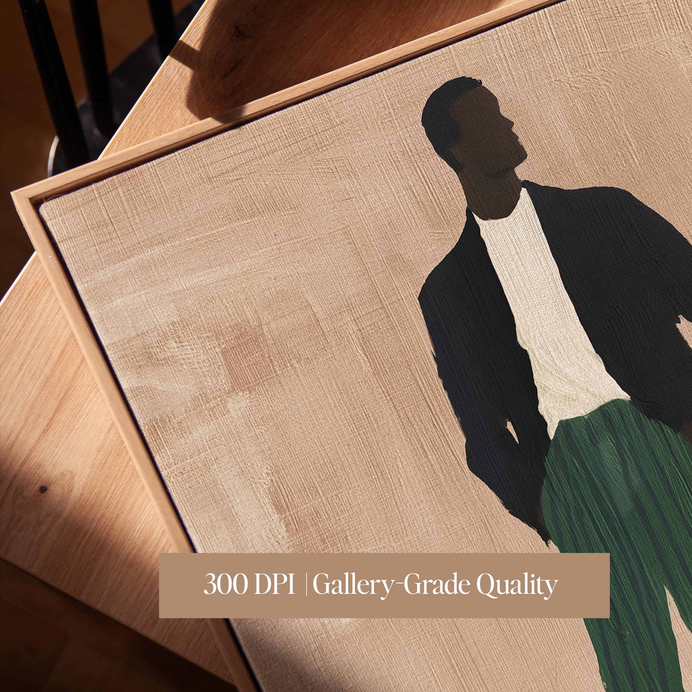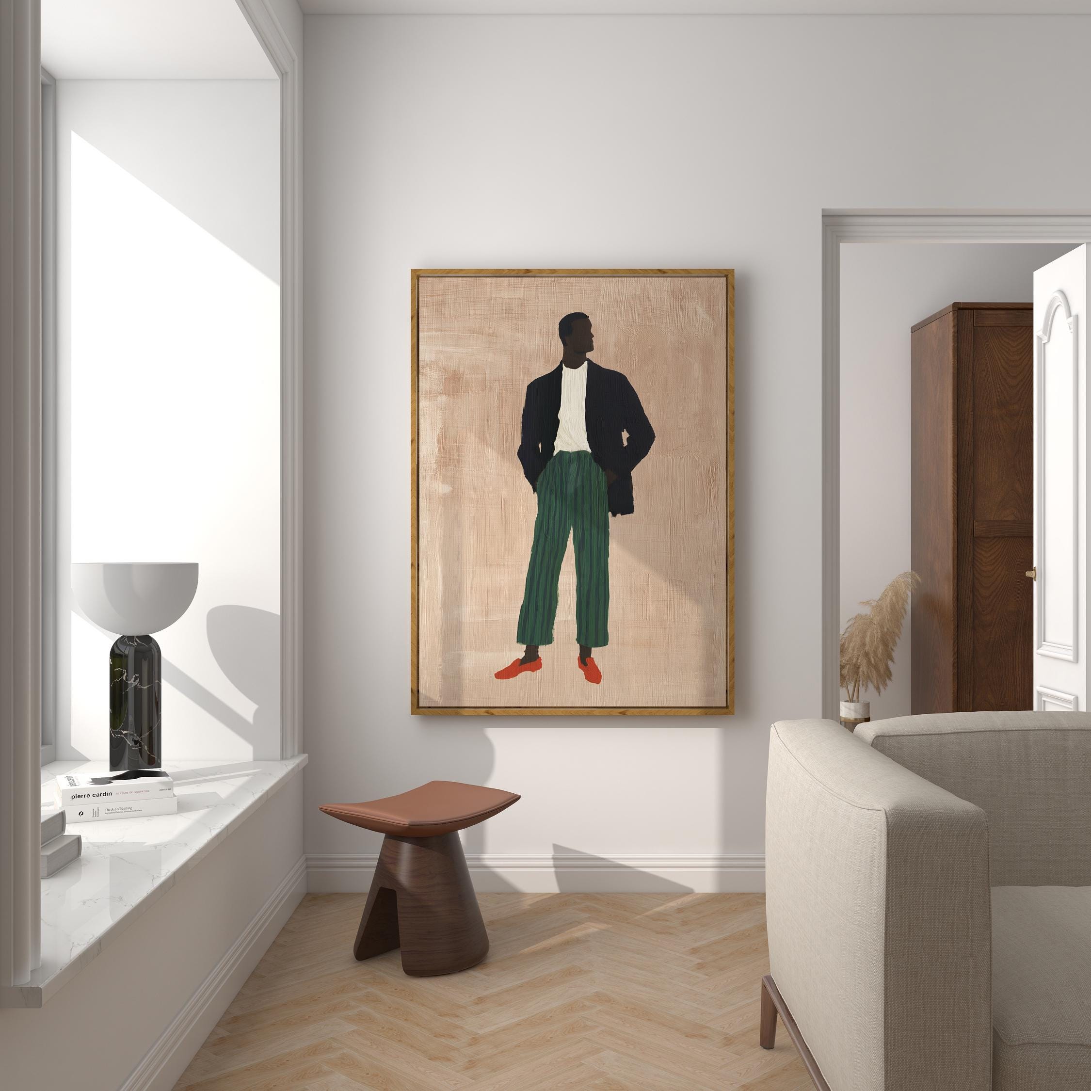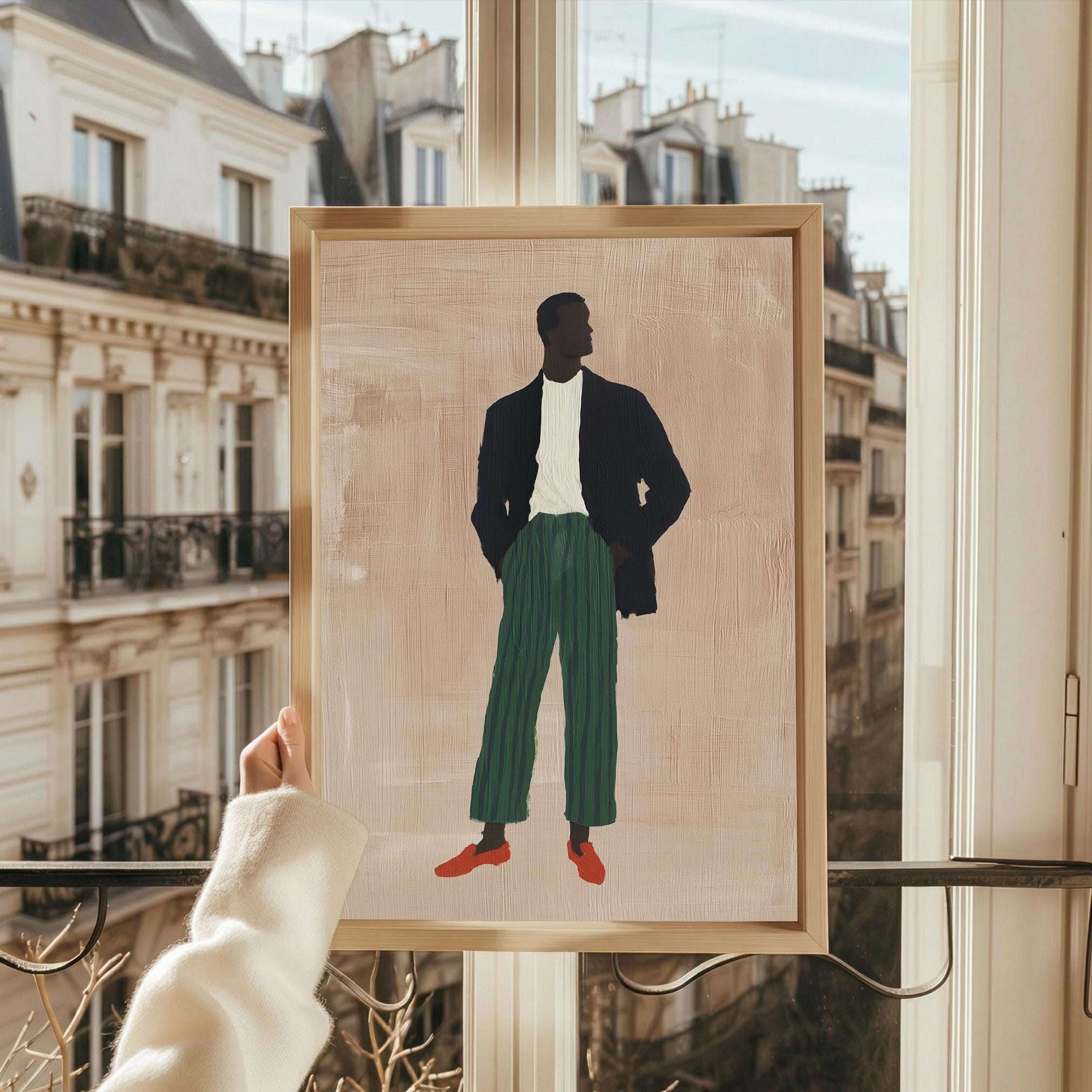a stylish depiction of a fashionable Black man, perfect for a modern living room and a great gift for a housewarming gift.