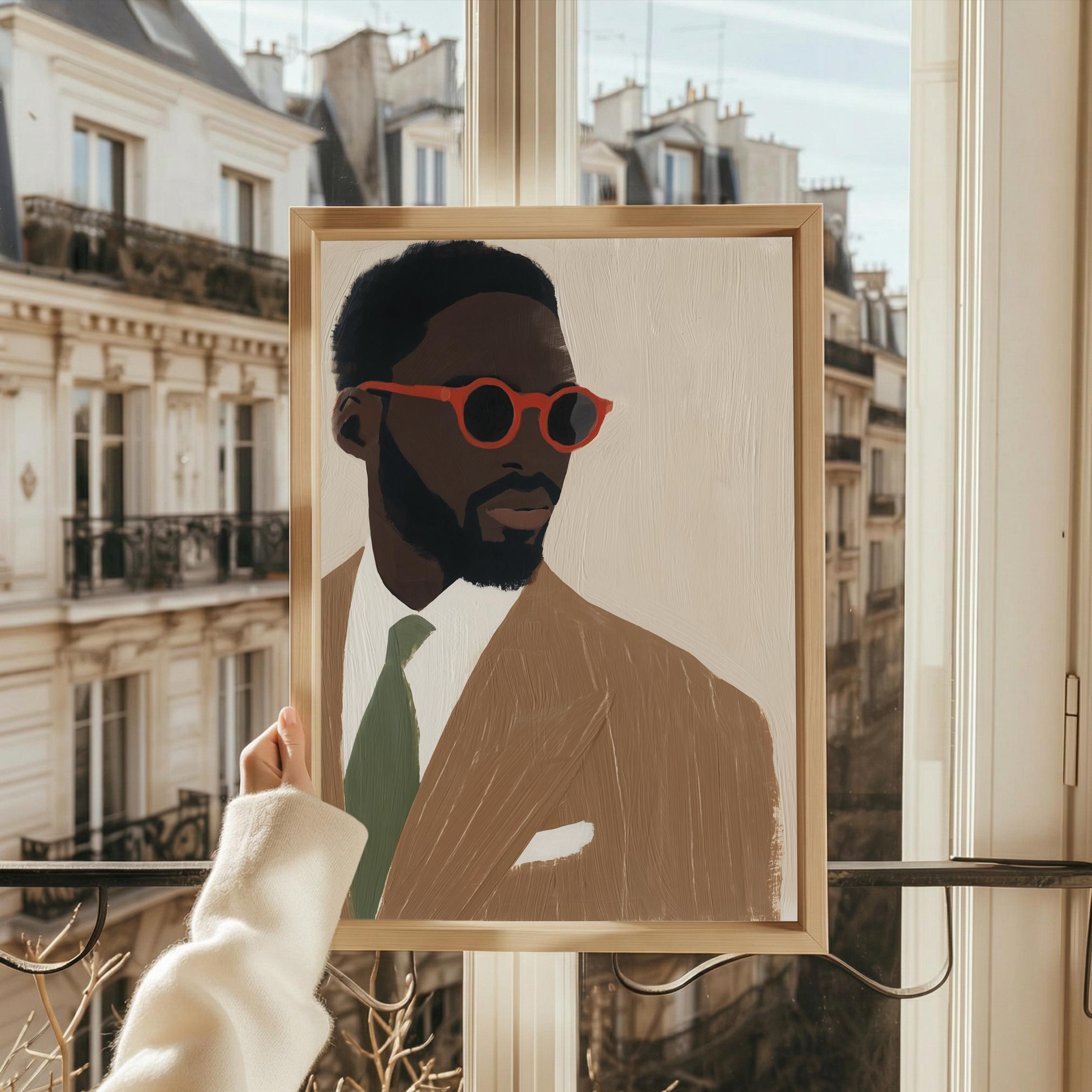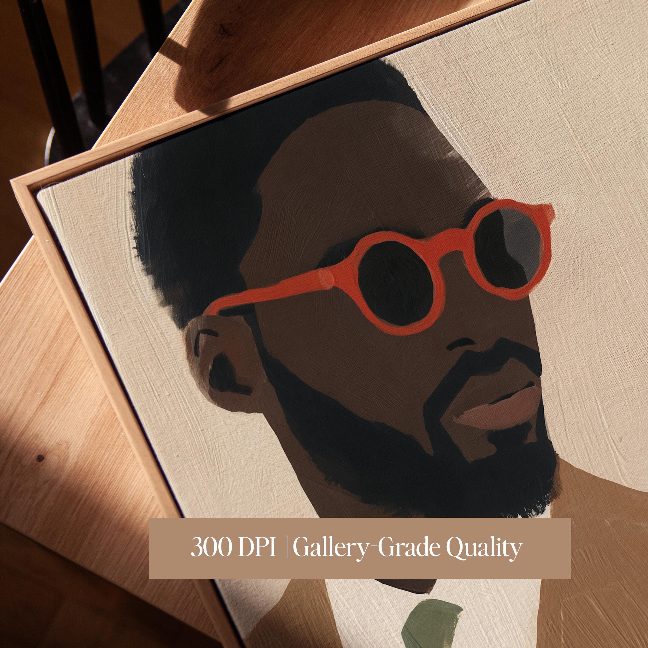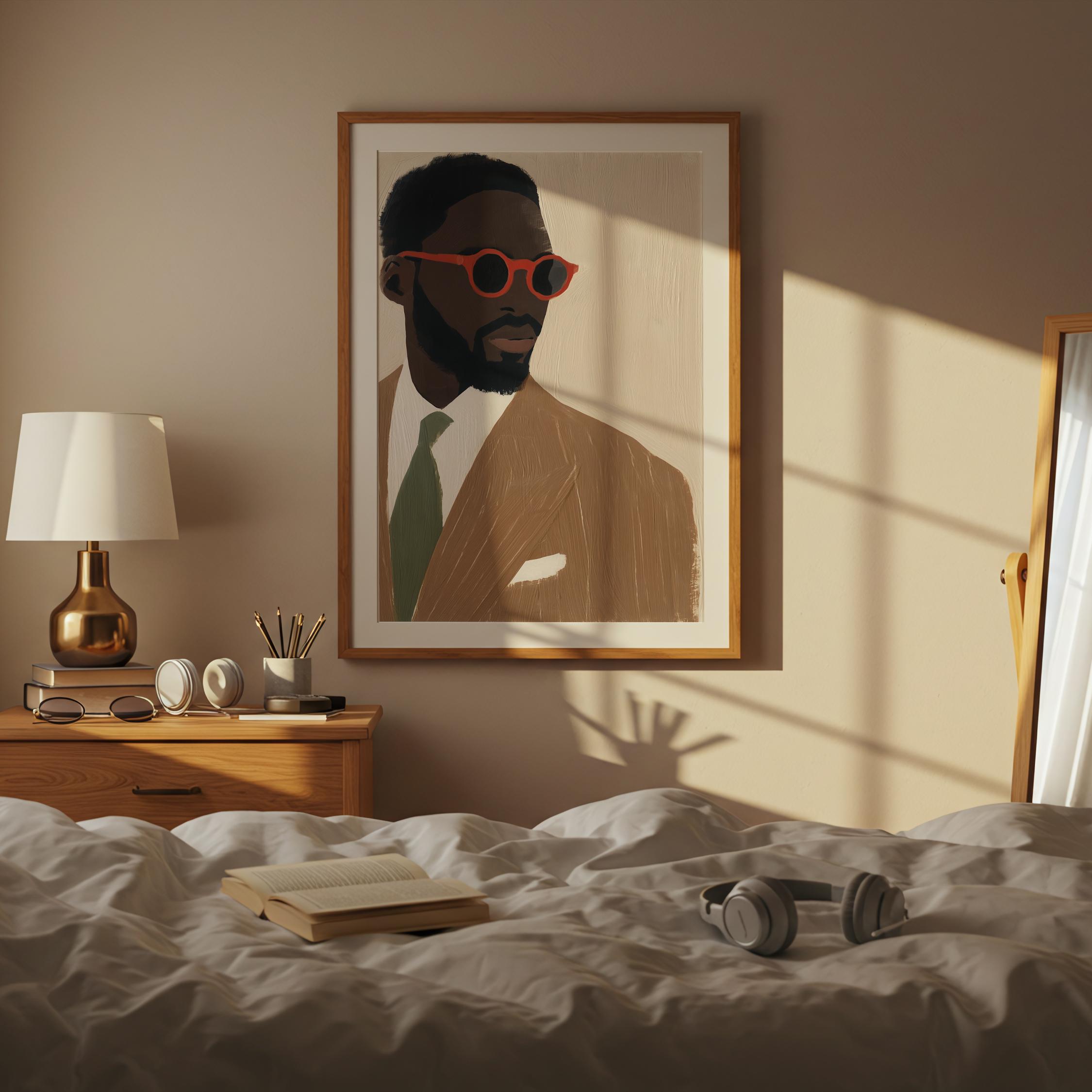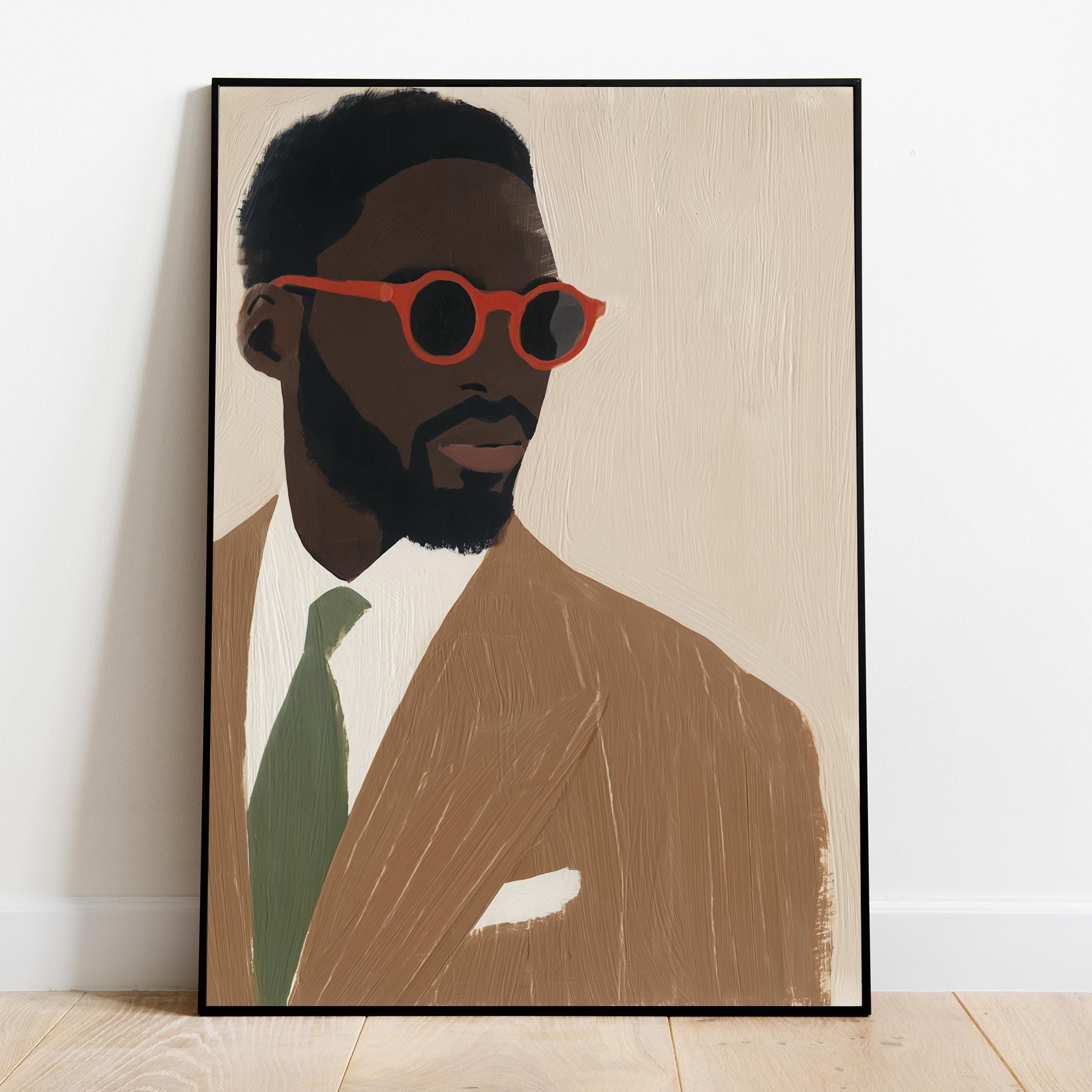 a fashionable Black man illustration, perfect for a modern living room and a great gift for a birthday celebration.