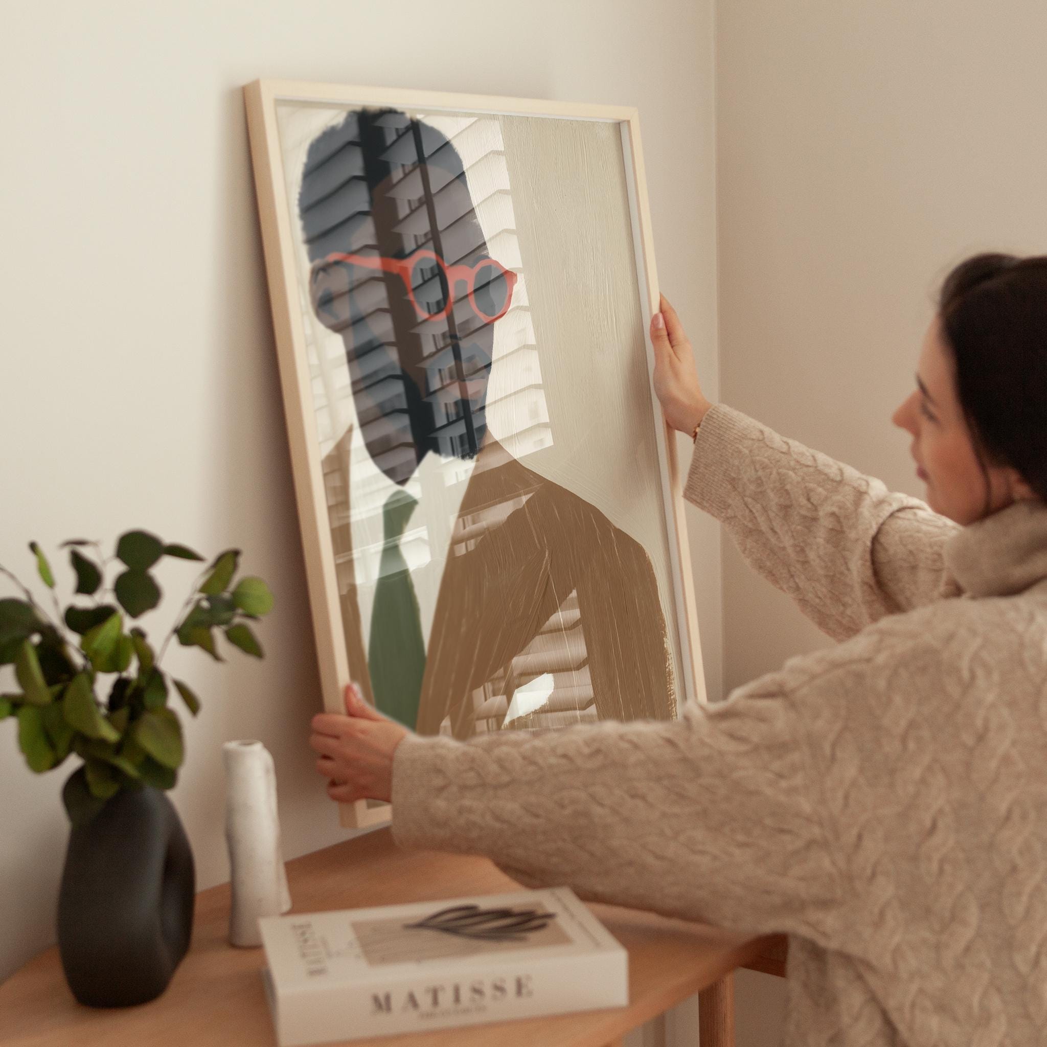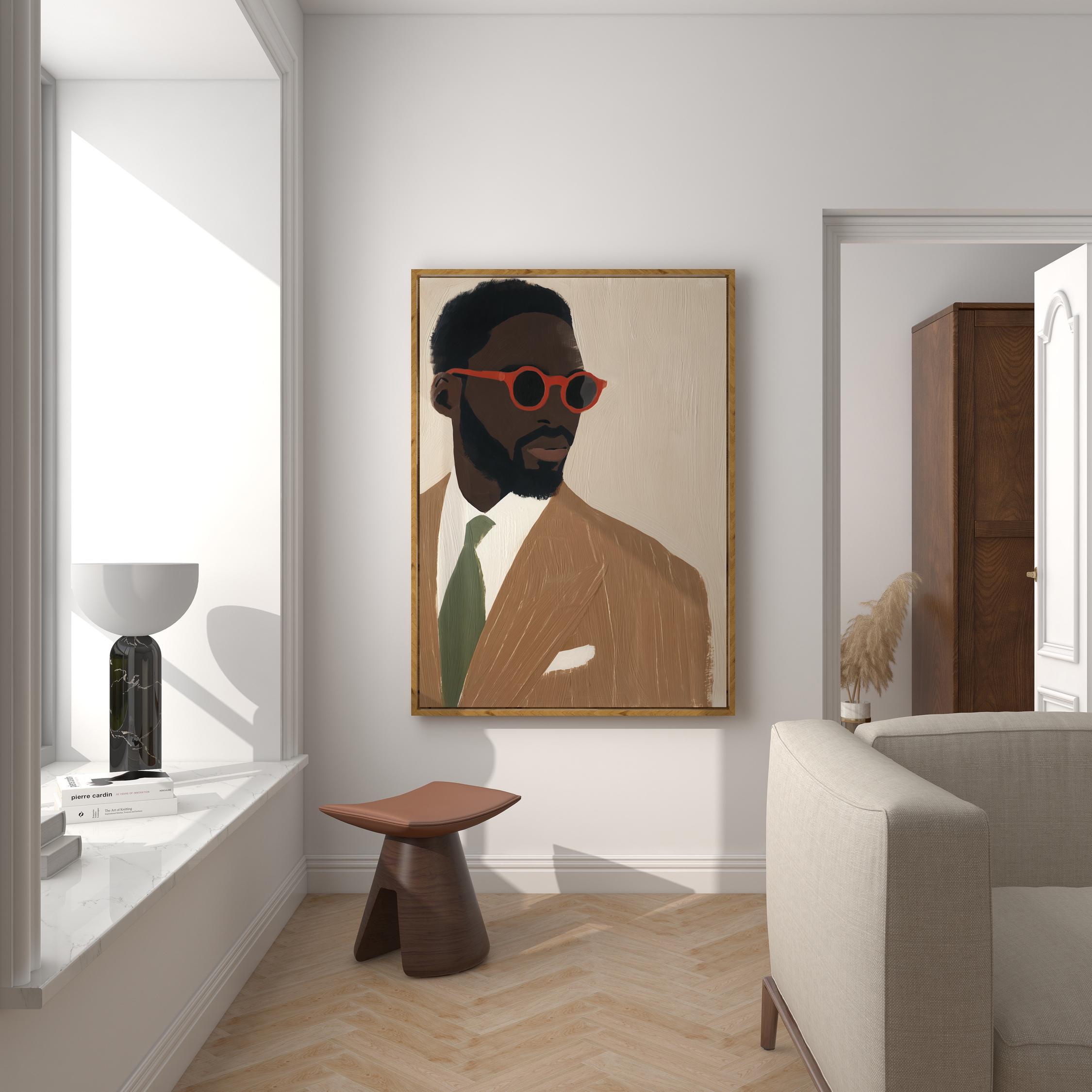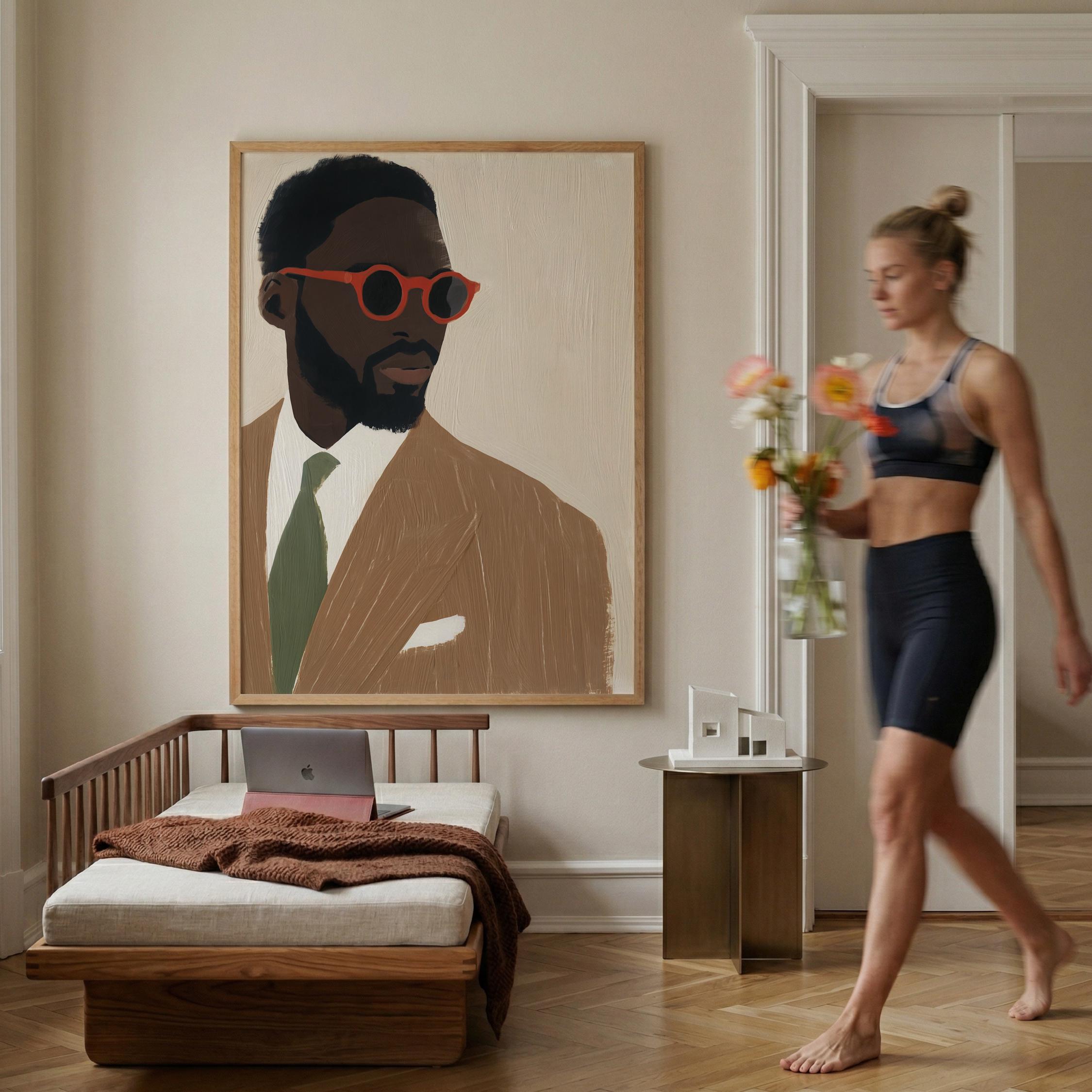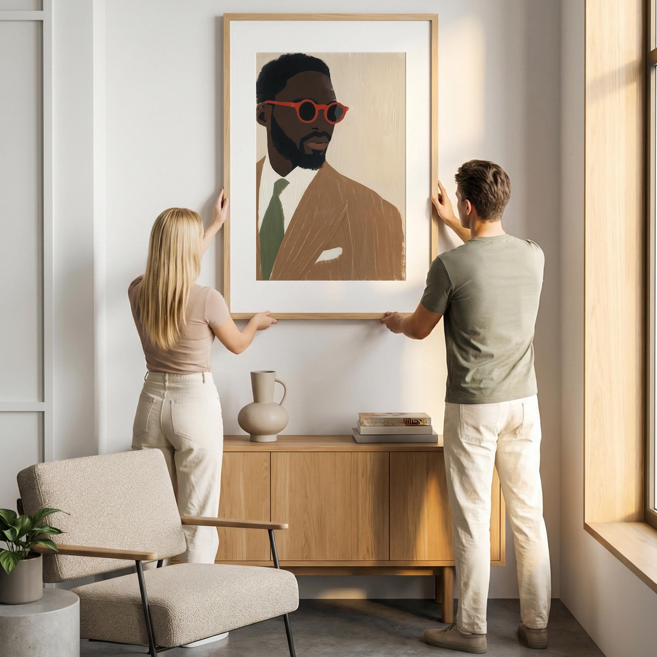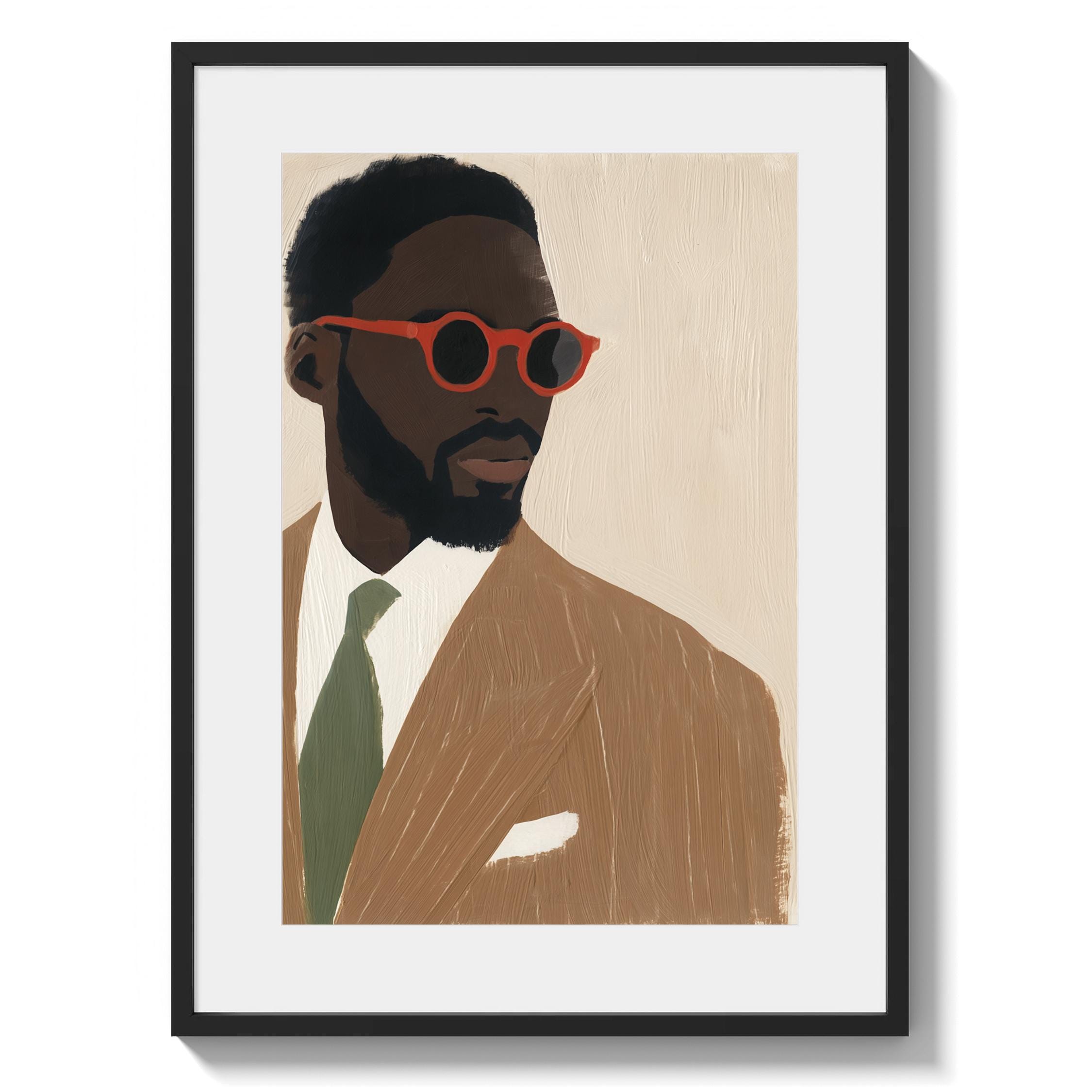 a fashionable Black man illustration, perfect for a modern living room and a great gift for a birthday celebration.