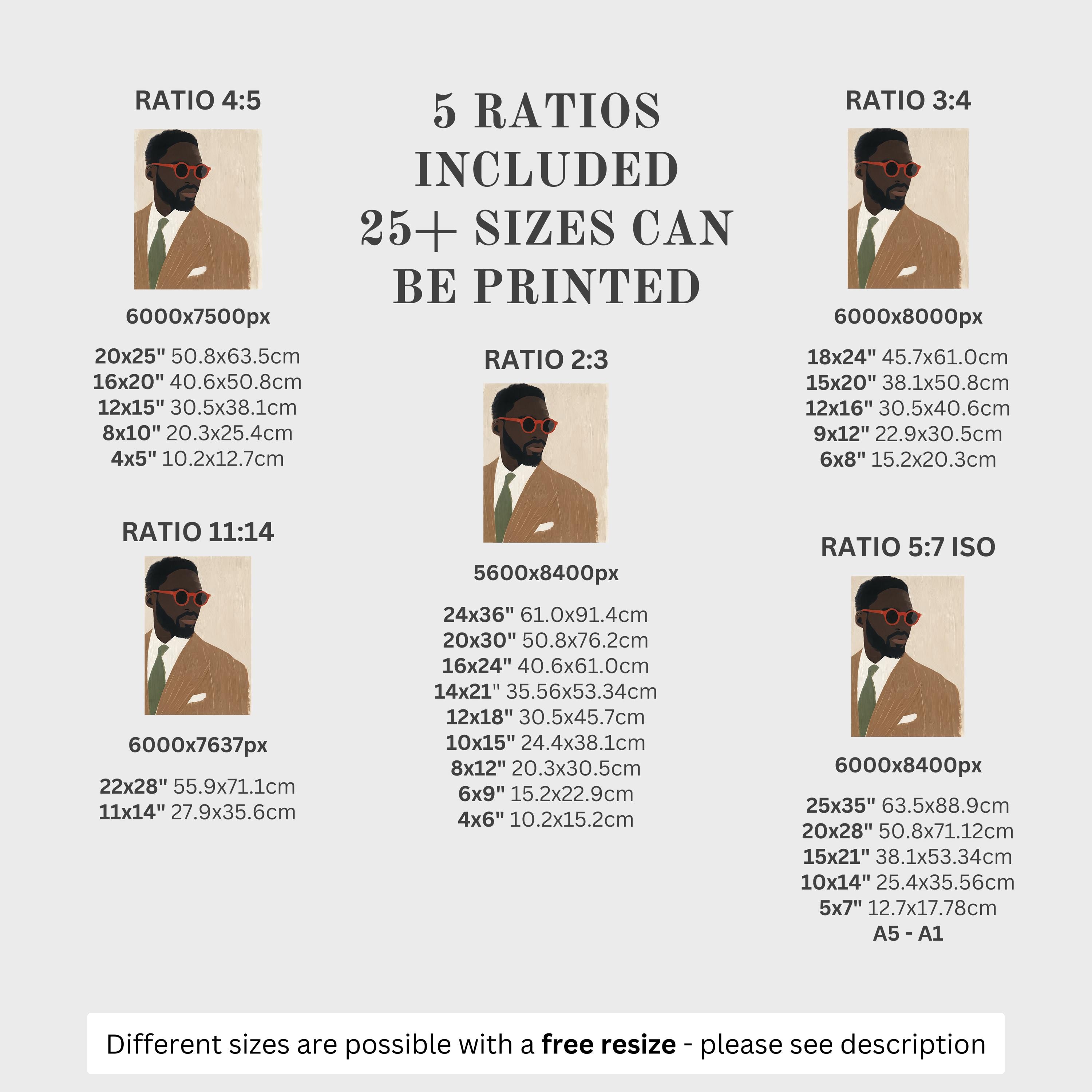 5 HIGH-QUALITY 300 DPI JPGs sized to fit +25 different frames in size and diverse ratios: