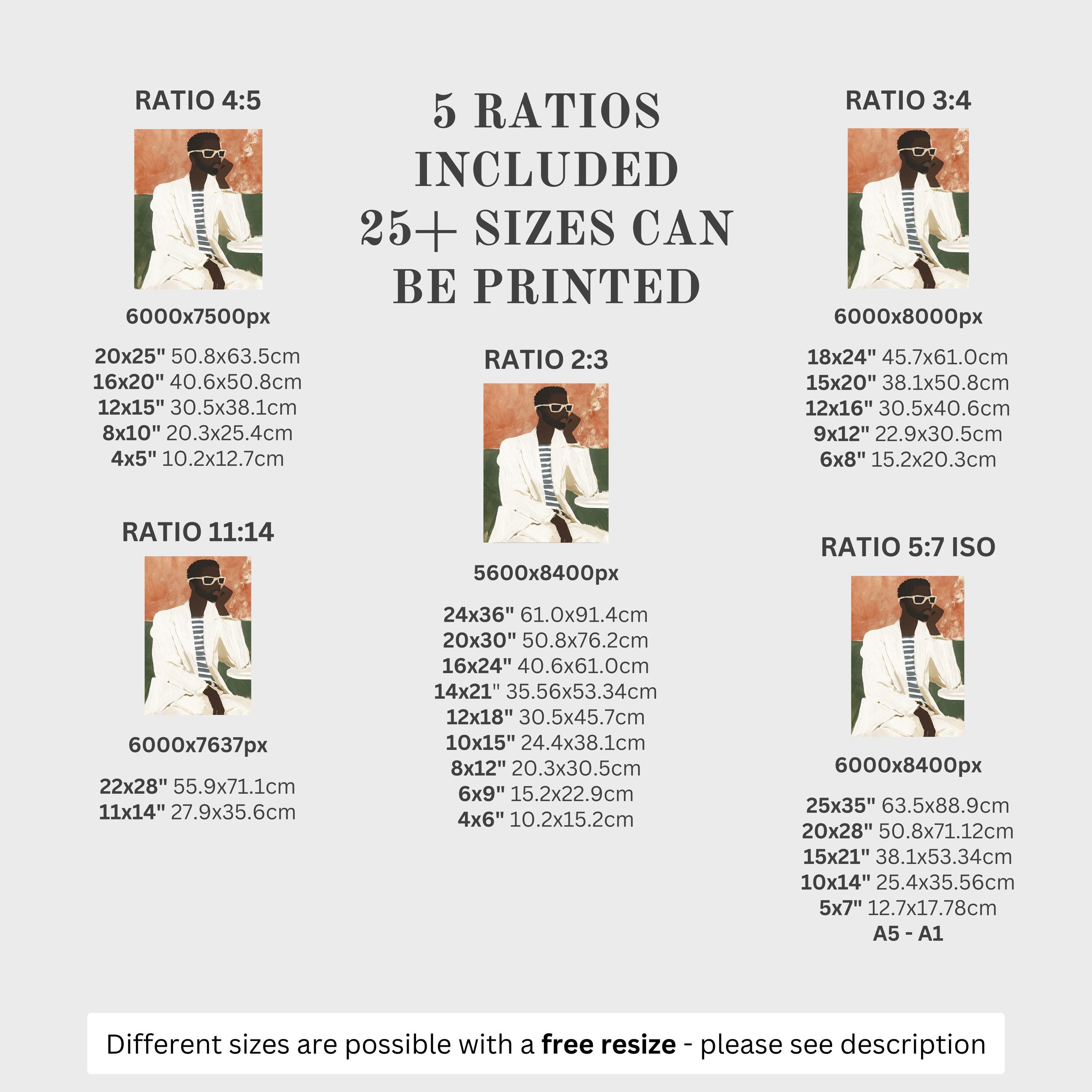 5 HIGH-QUALITY 300 DPI JPGs sized to fit +25 different frames in size and diverse ratios:
