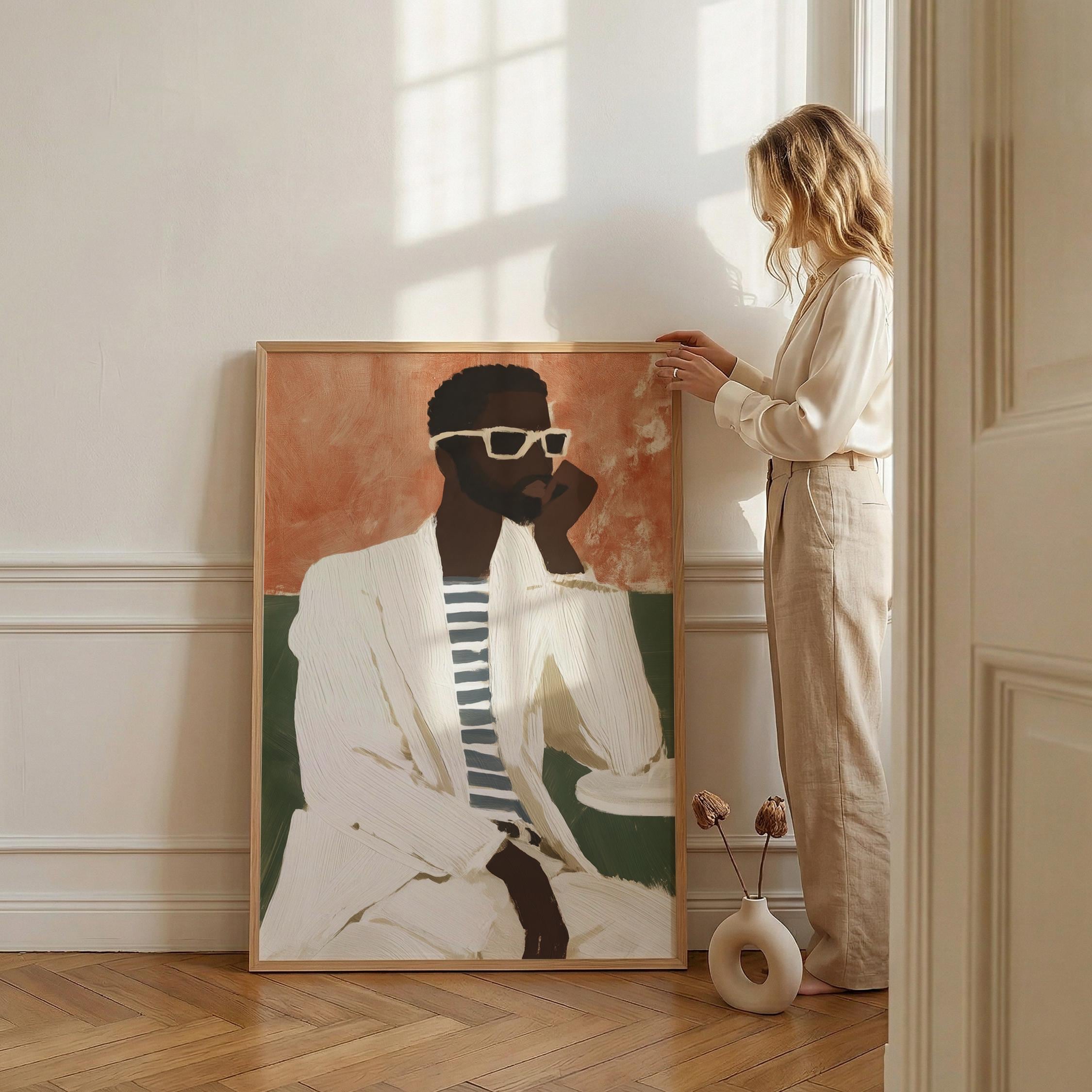 a stylish gentleman, perfect for a modern living room and a great gift for a housewarming party.
