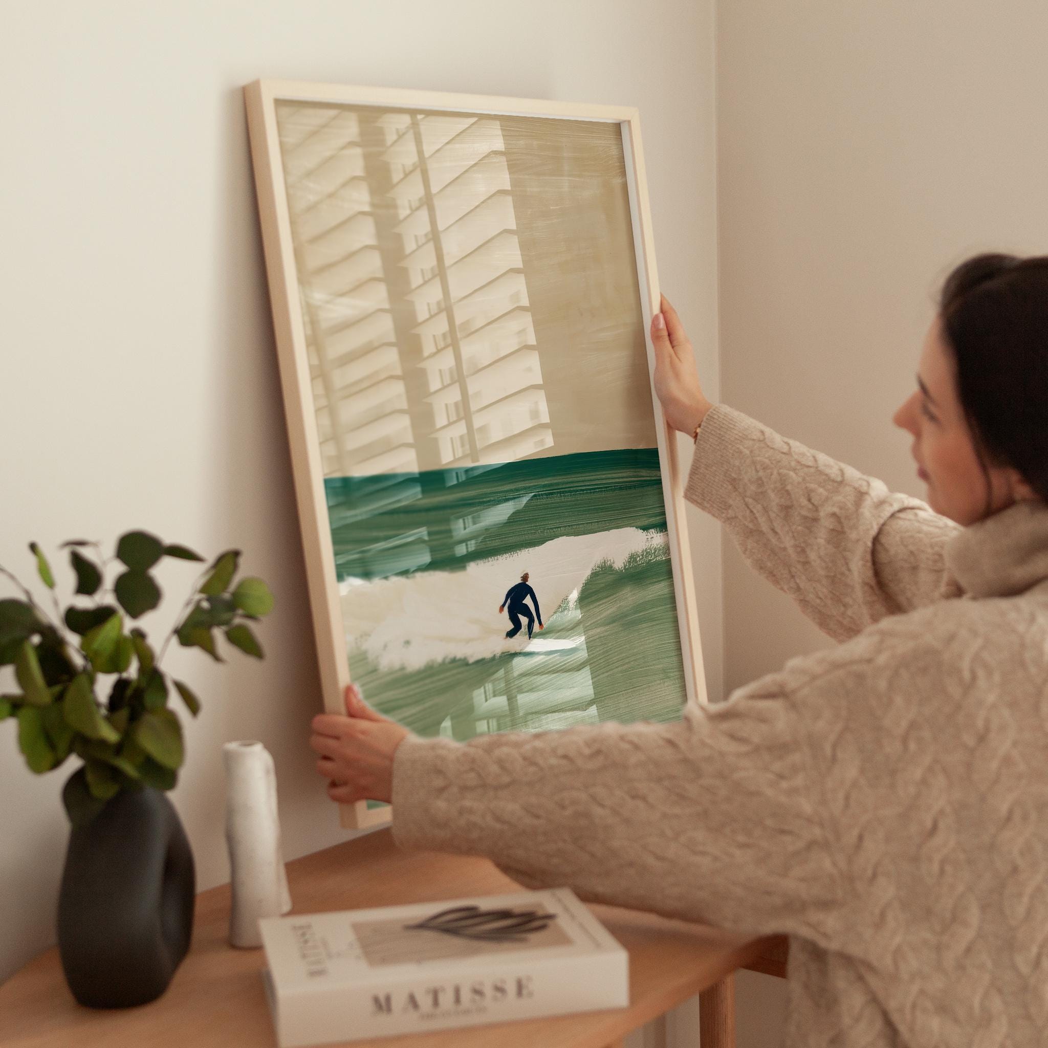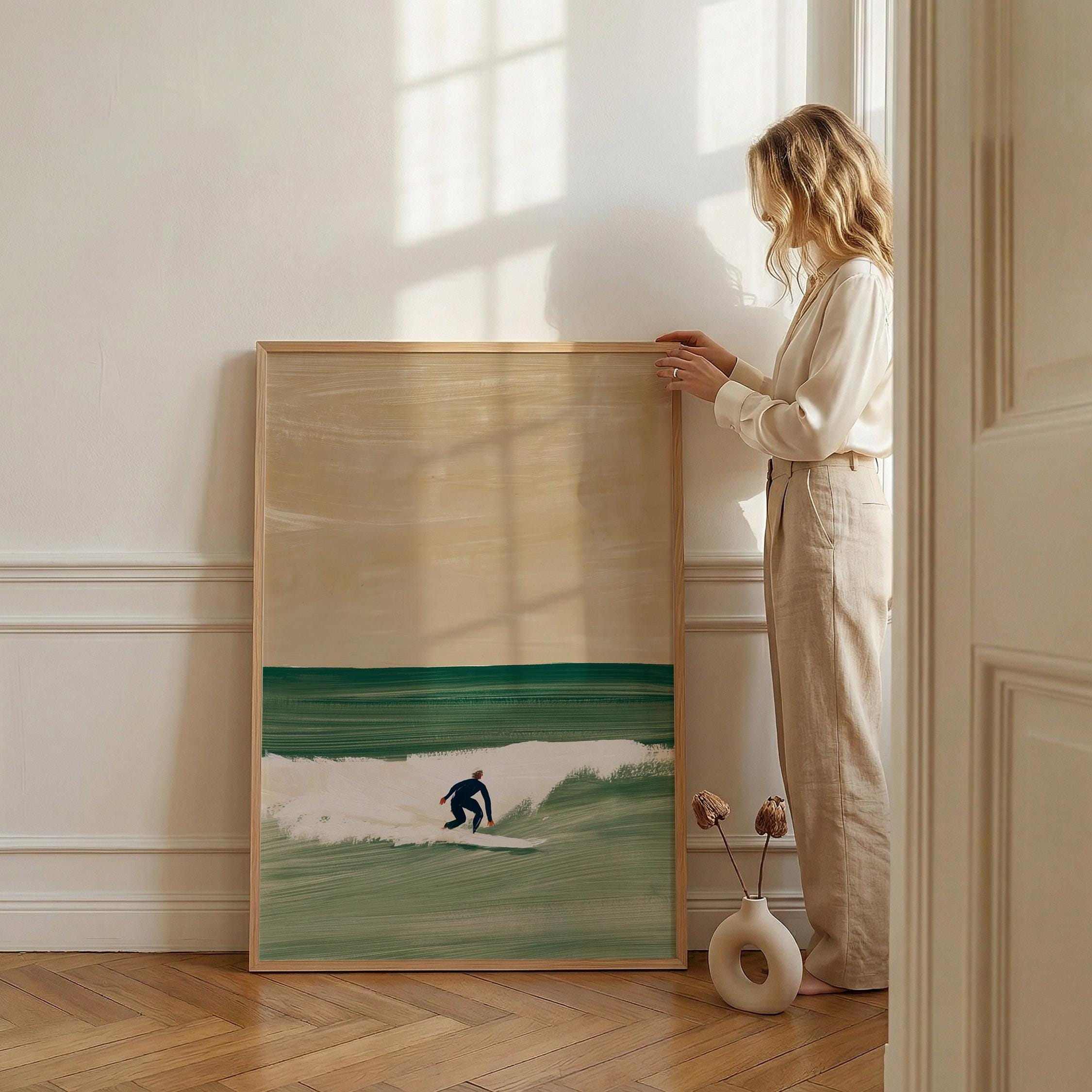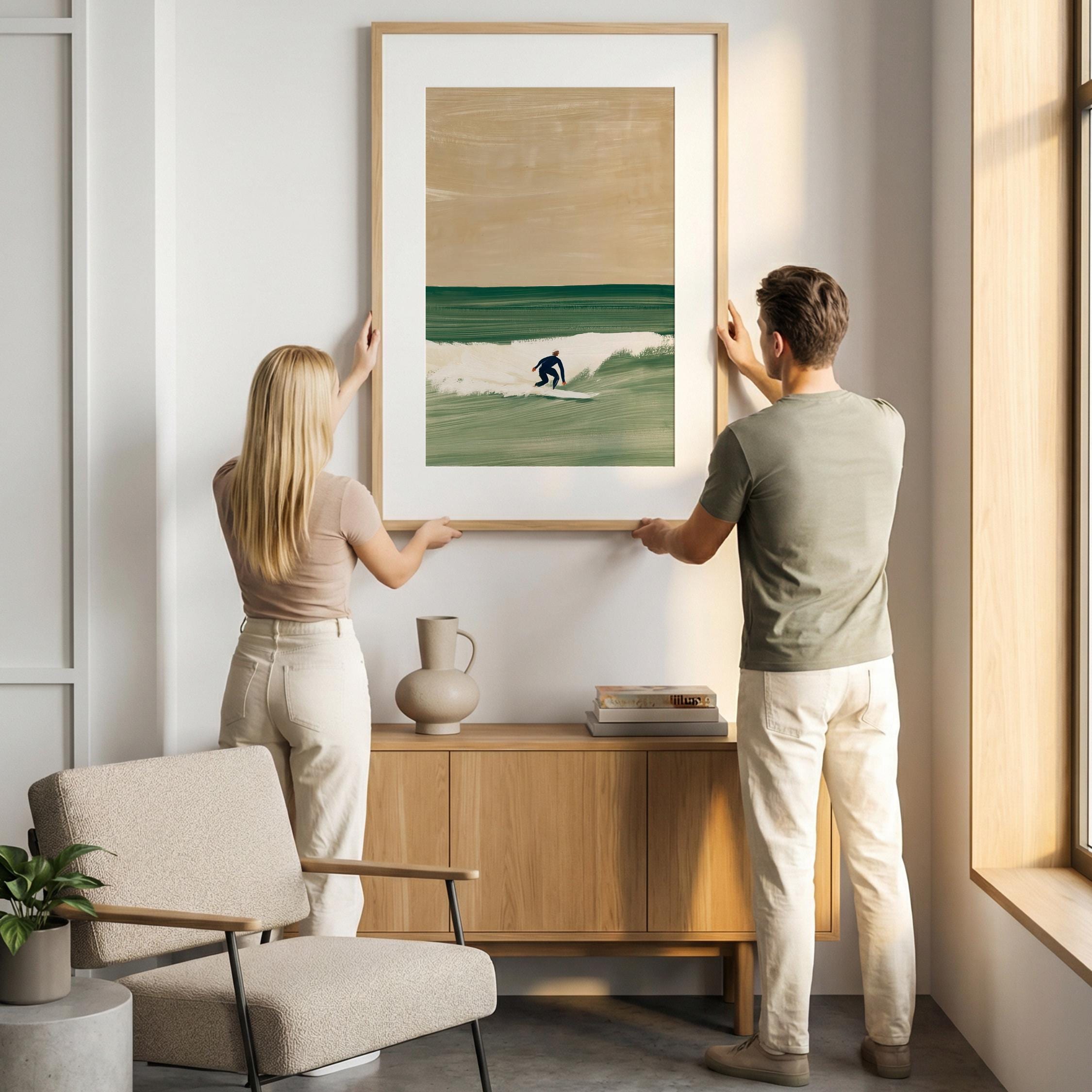 a serene surfer silhouette, perfect for a coastal living room and a great gift for a housewarming gift.