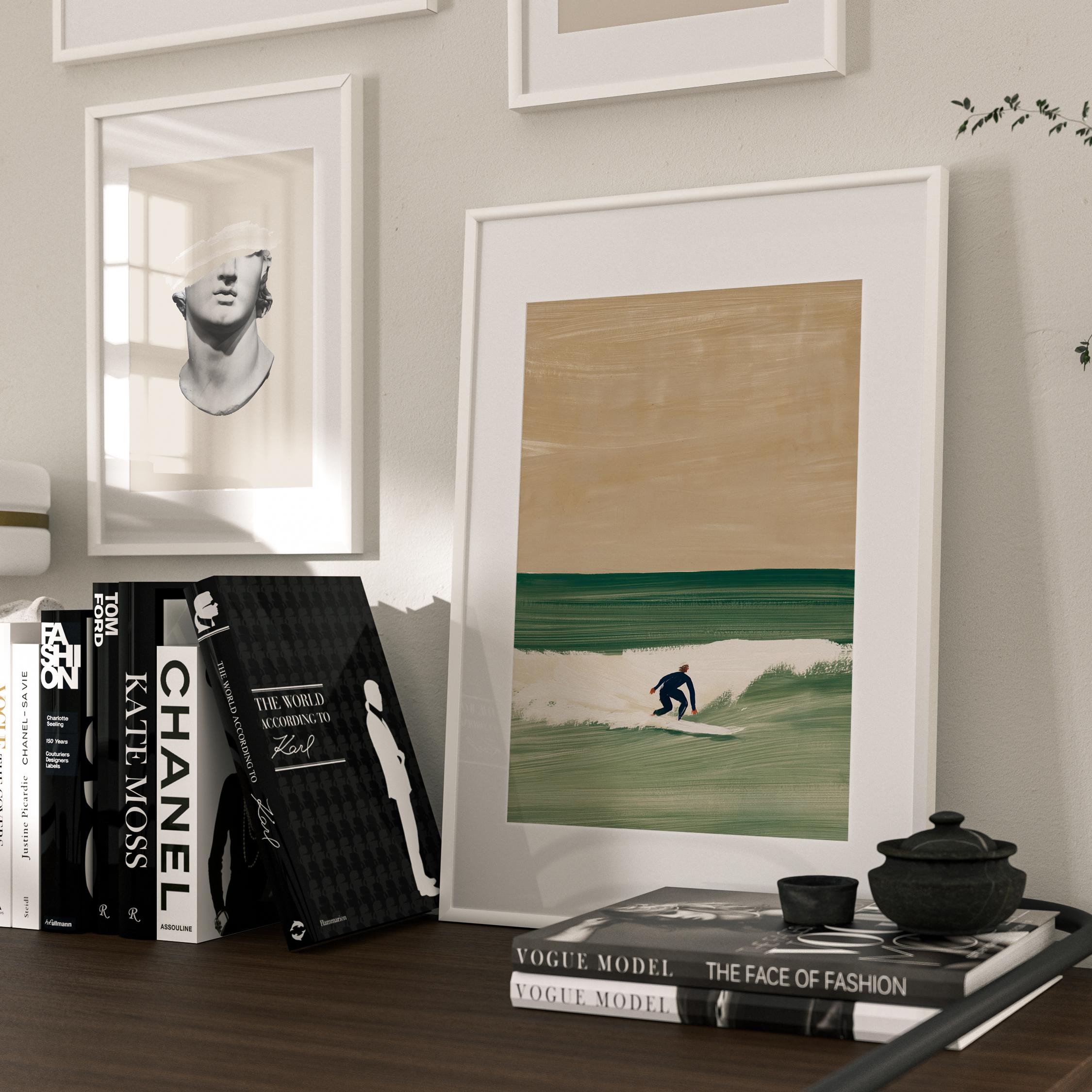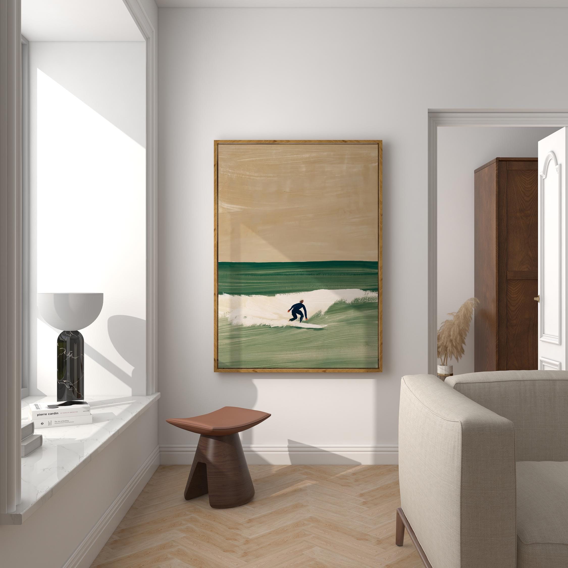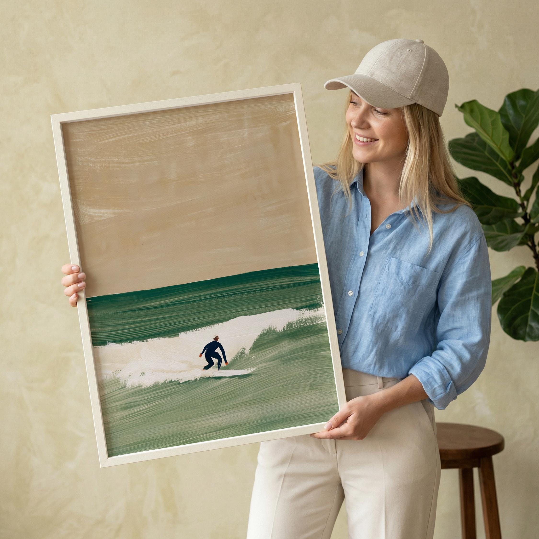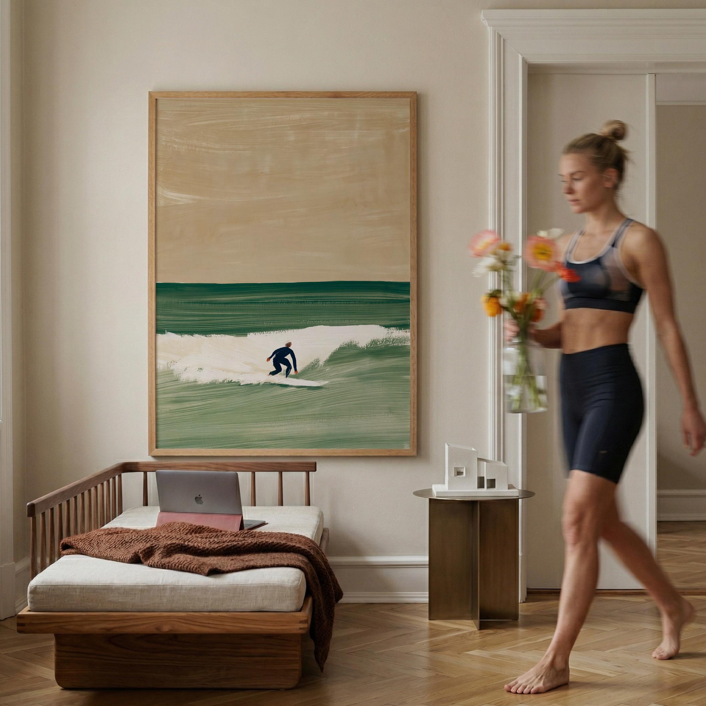 a serene surfer silhouette, perfect for a coastal living room and a great gift for a housewarming gift.