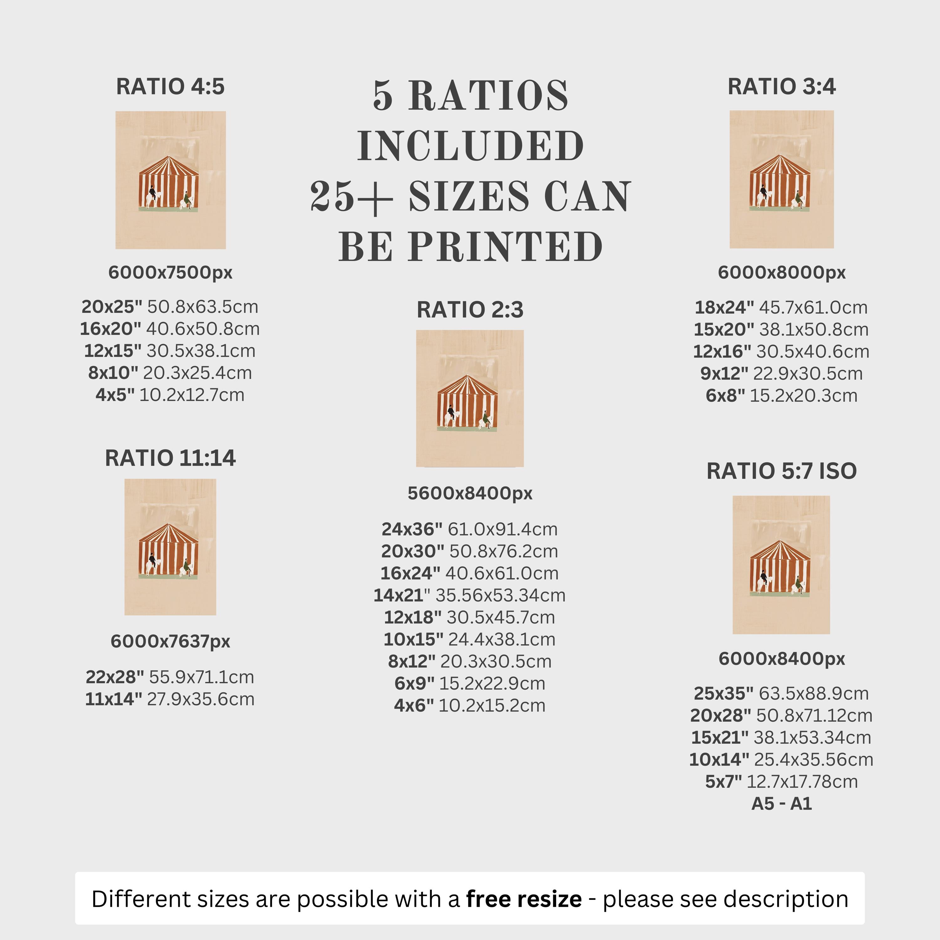 5 HIGH-QUALITY 300 DPI JPGs sized to fit +25 different frames in size and diverse ratios: