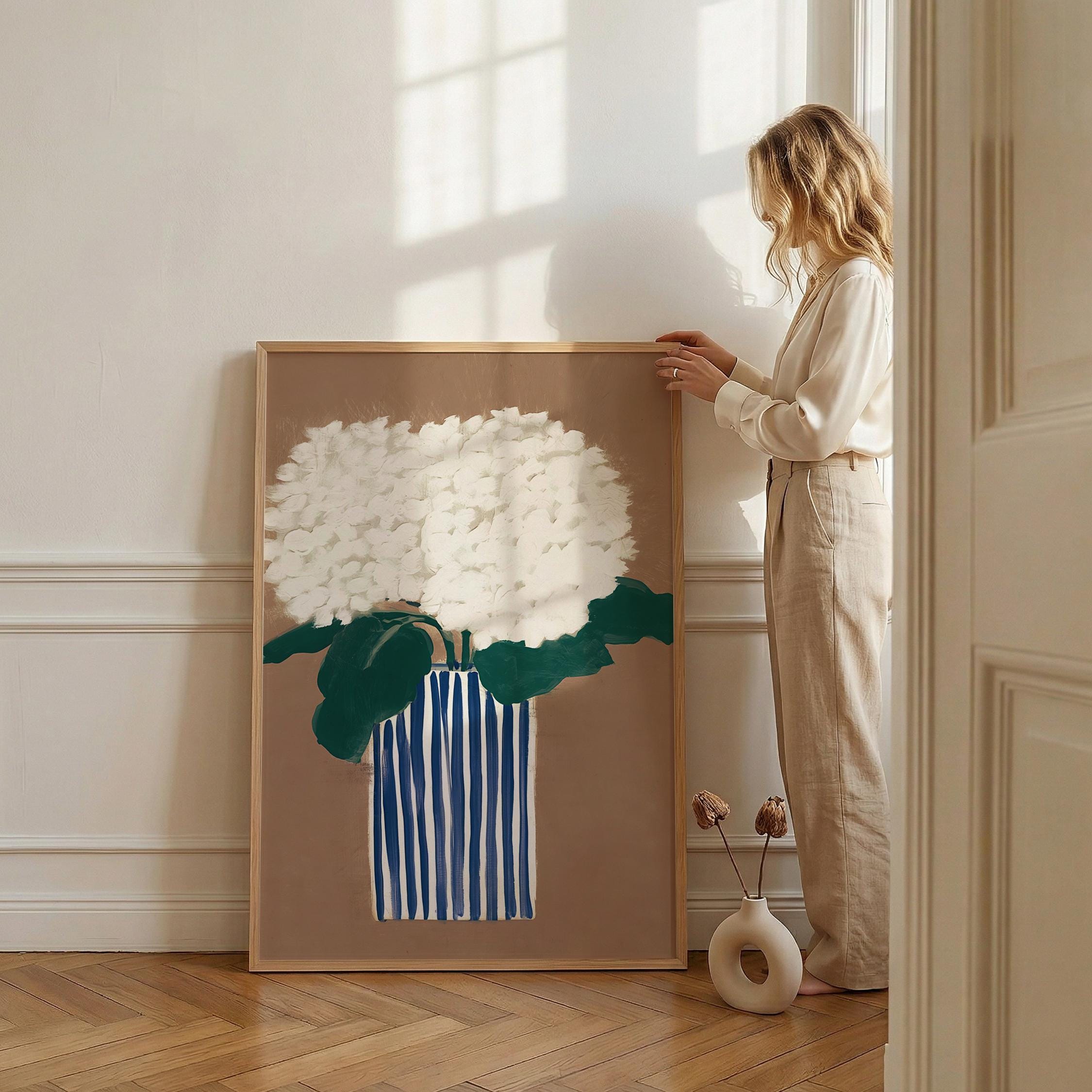 a vibrant hydrangea bouquet, perfect for a cozy living room and a great gift for a housewarming gift.