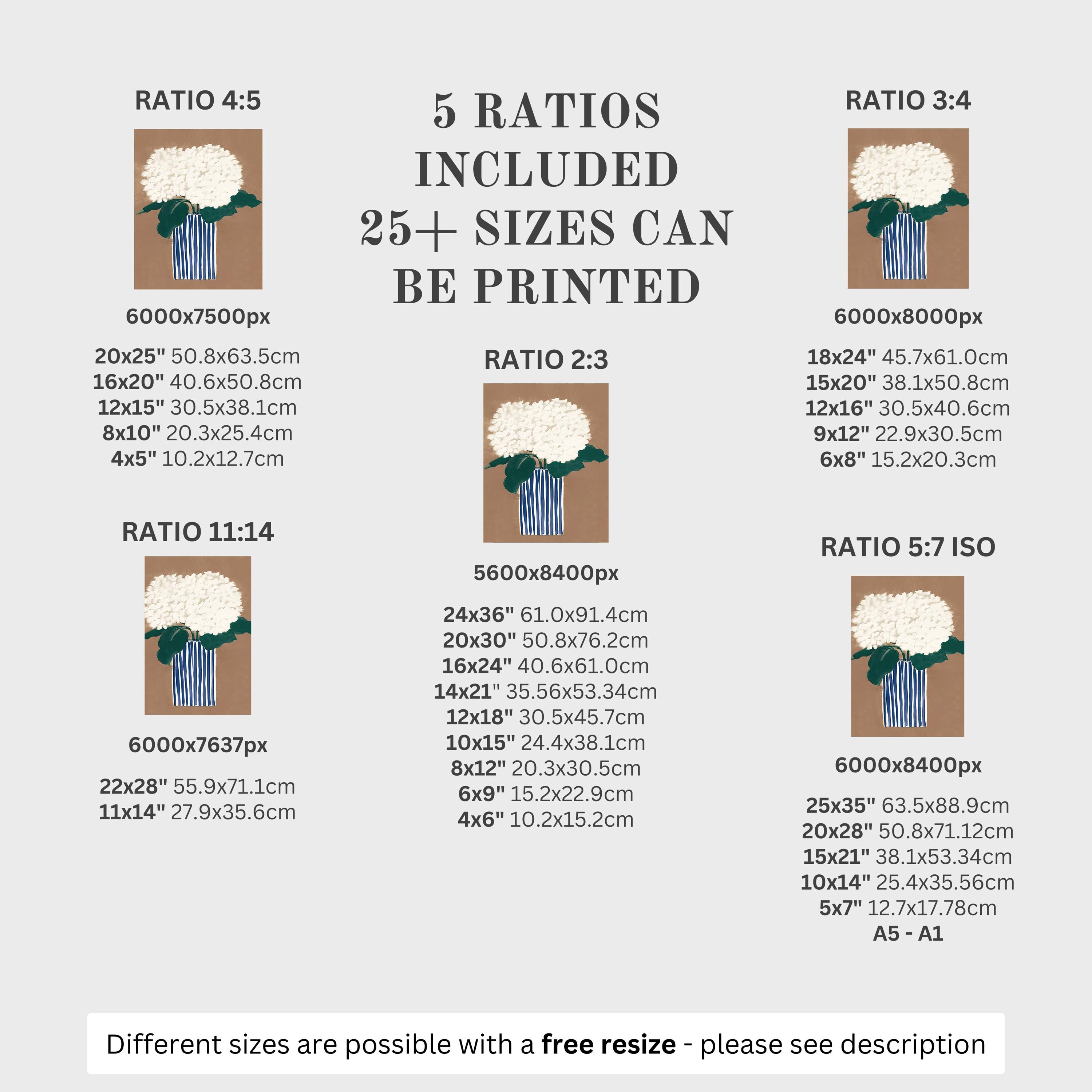 5 HIGH-QUALITY 300 DPI JPGs sized to fit +25 different frames in size and diverse ratios: