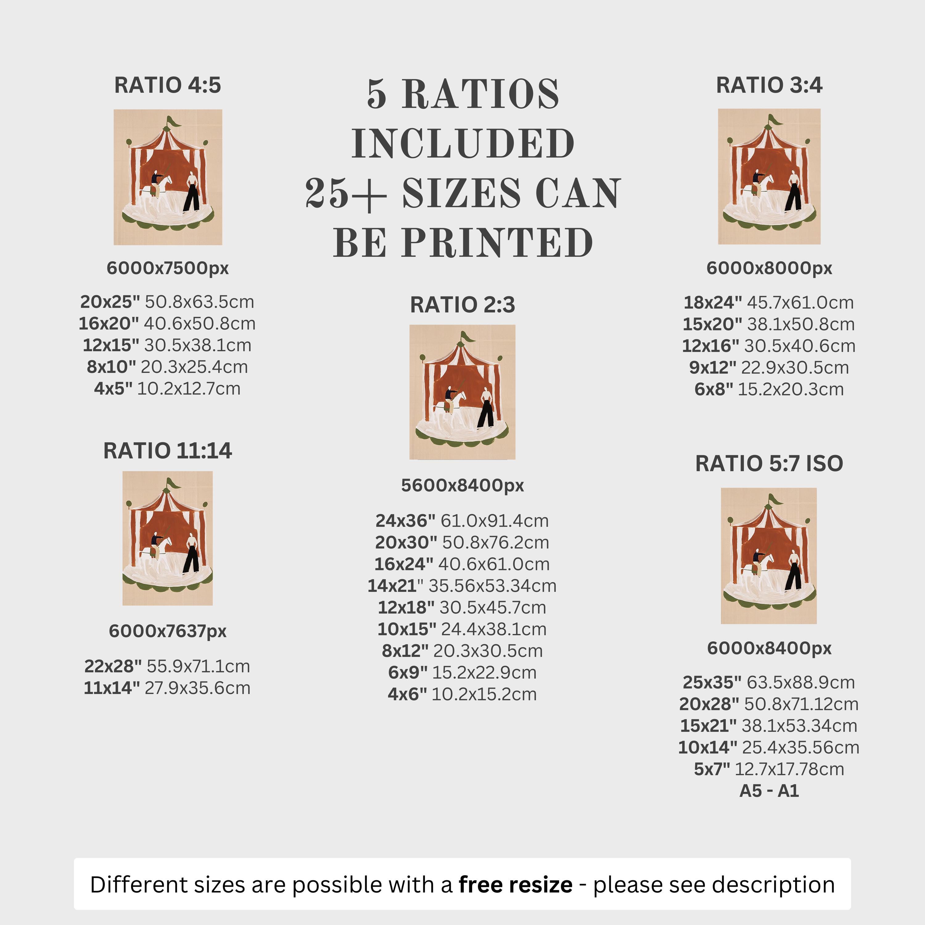 5 HIGH-QUALITY 300 DPI JPGs sized to fit +25 different frames in size and diverse ratios: