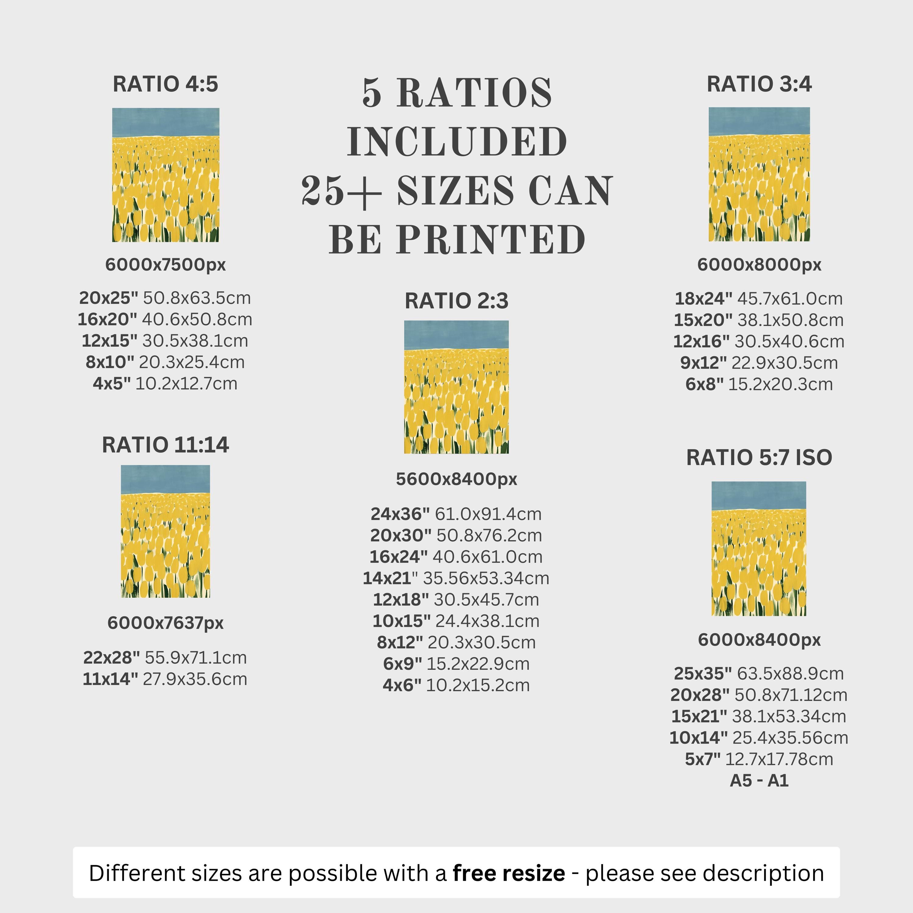 5 HIGH-QUALITY 300 DPI JPGs sized to fit +25 different frames in size and diverse ratios: