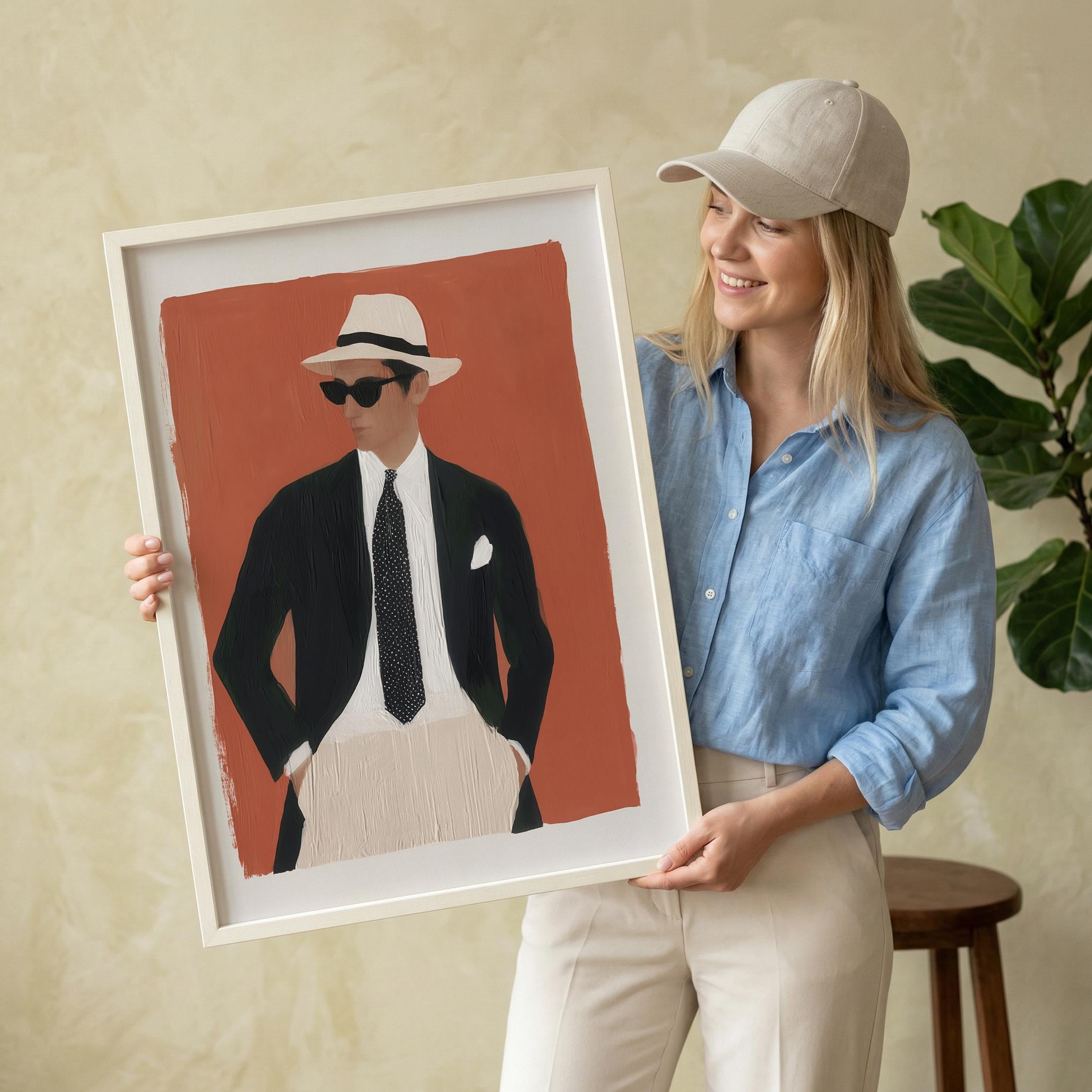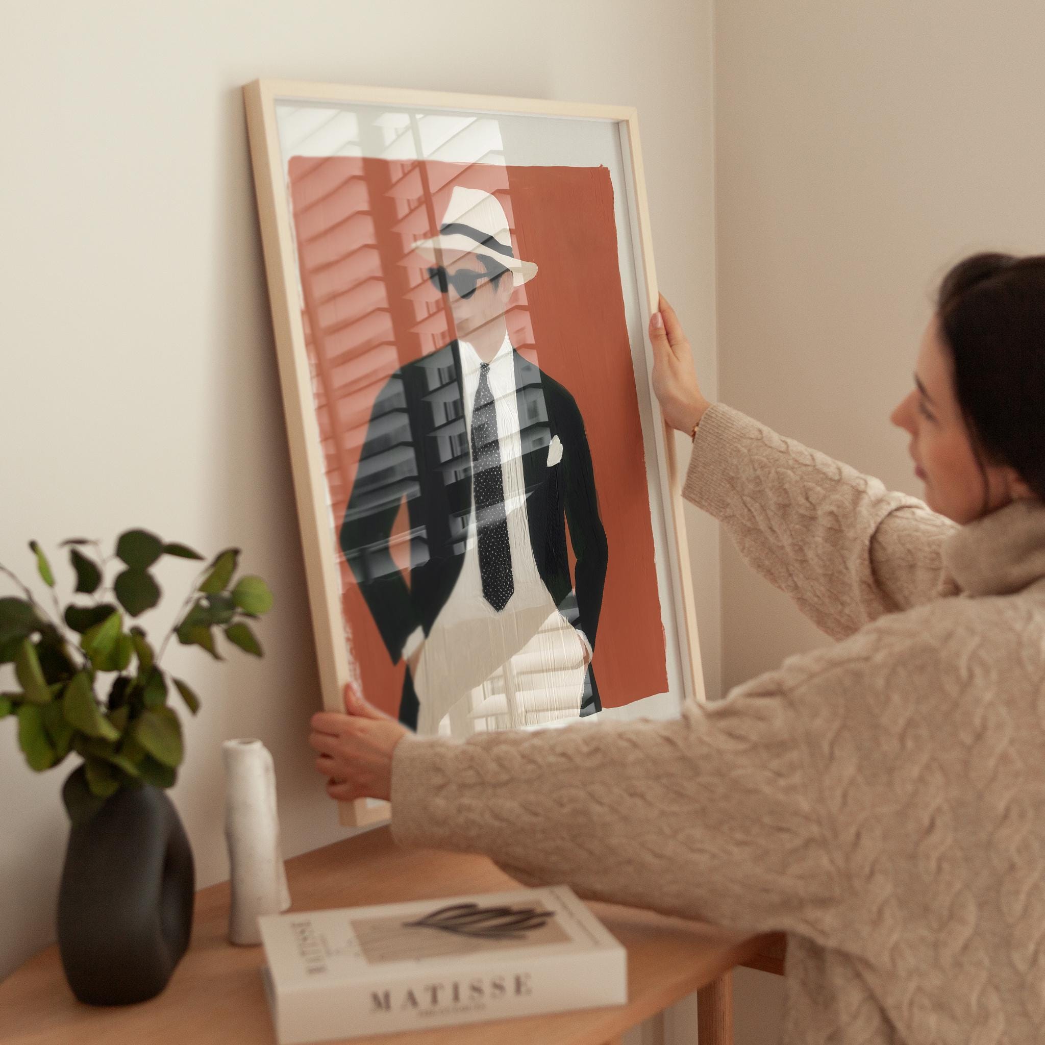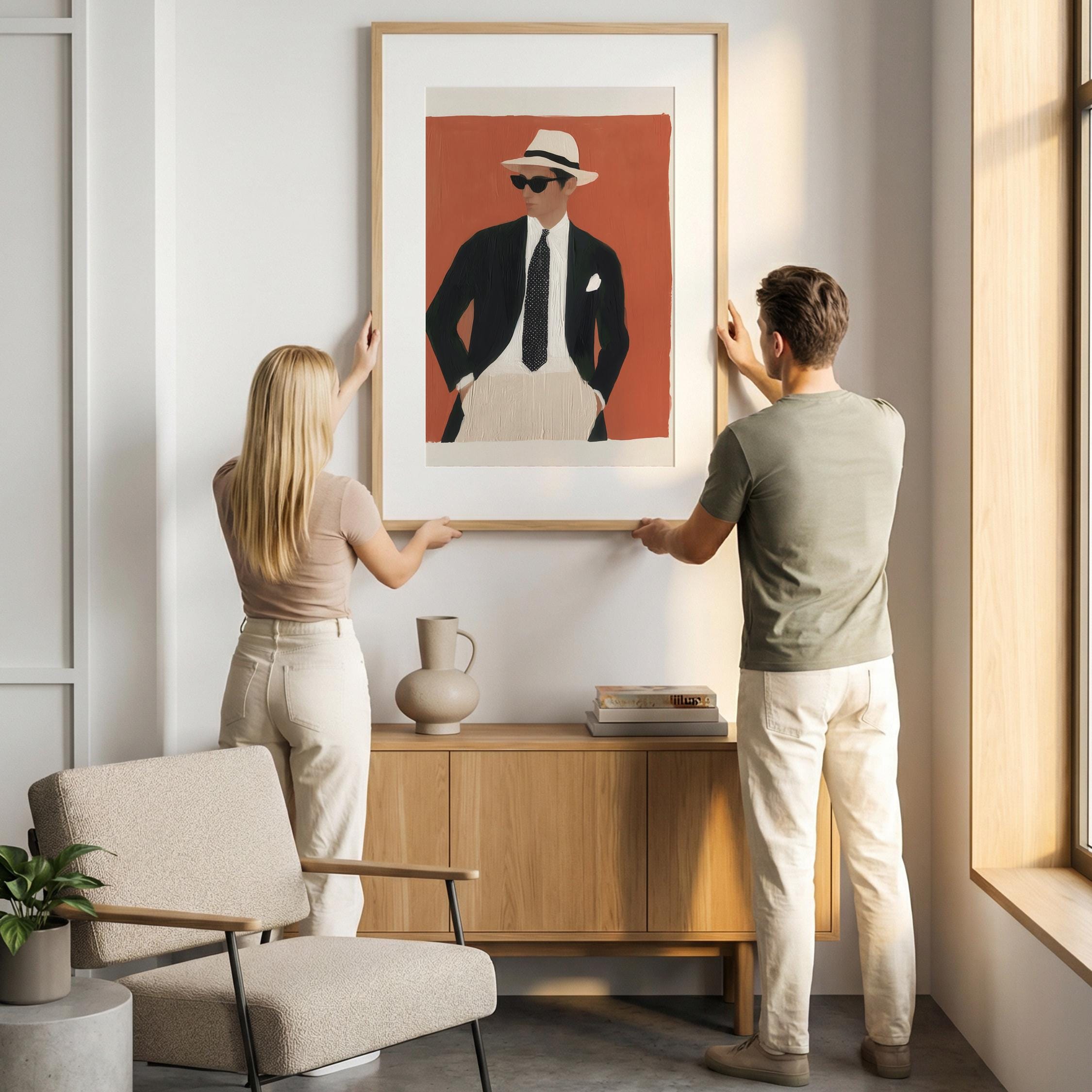 a stylish man, perfect for a modern living room and a great gift for a birthday celebration.