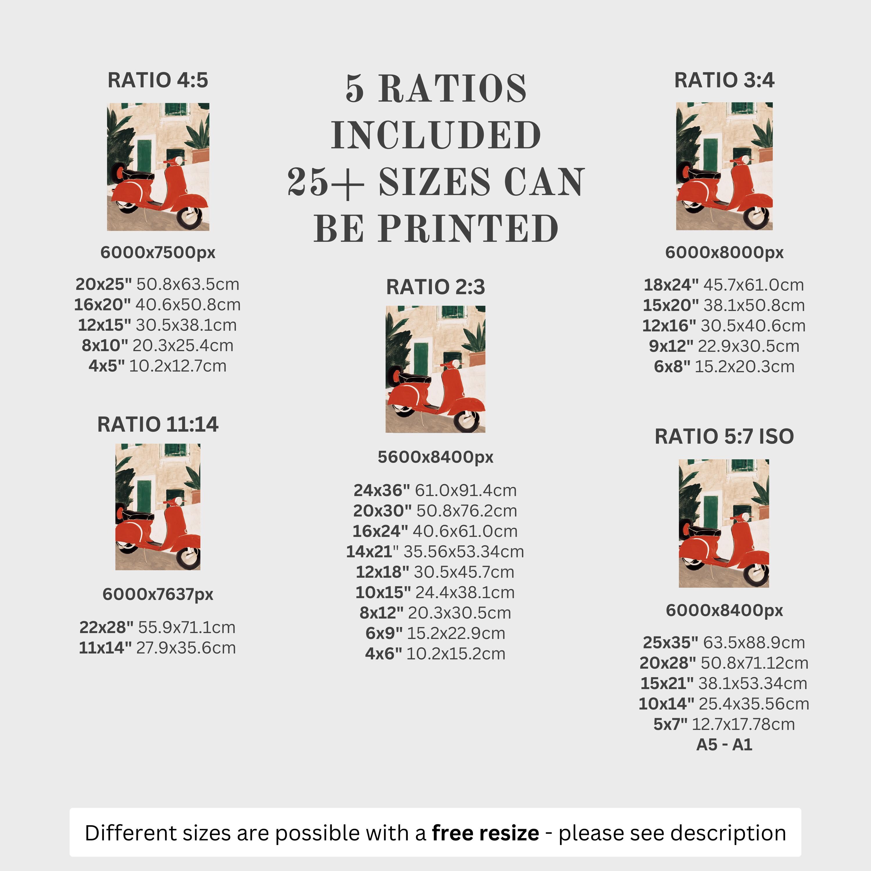 5 HIGH-QUALITY 300 DPI JPGs sized to fit +25 different frames in size and diverse ratios: