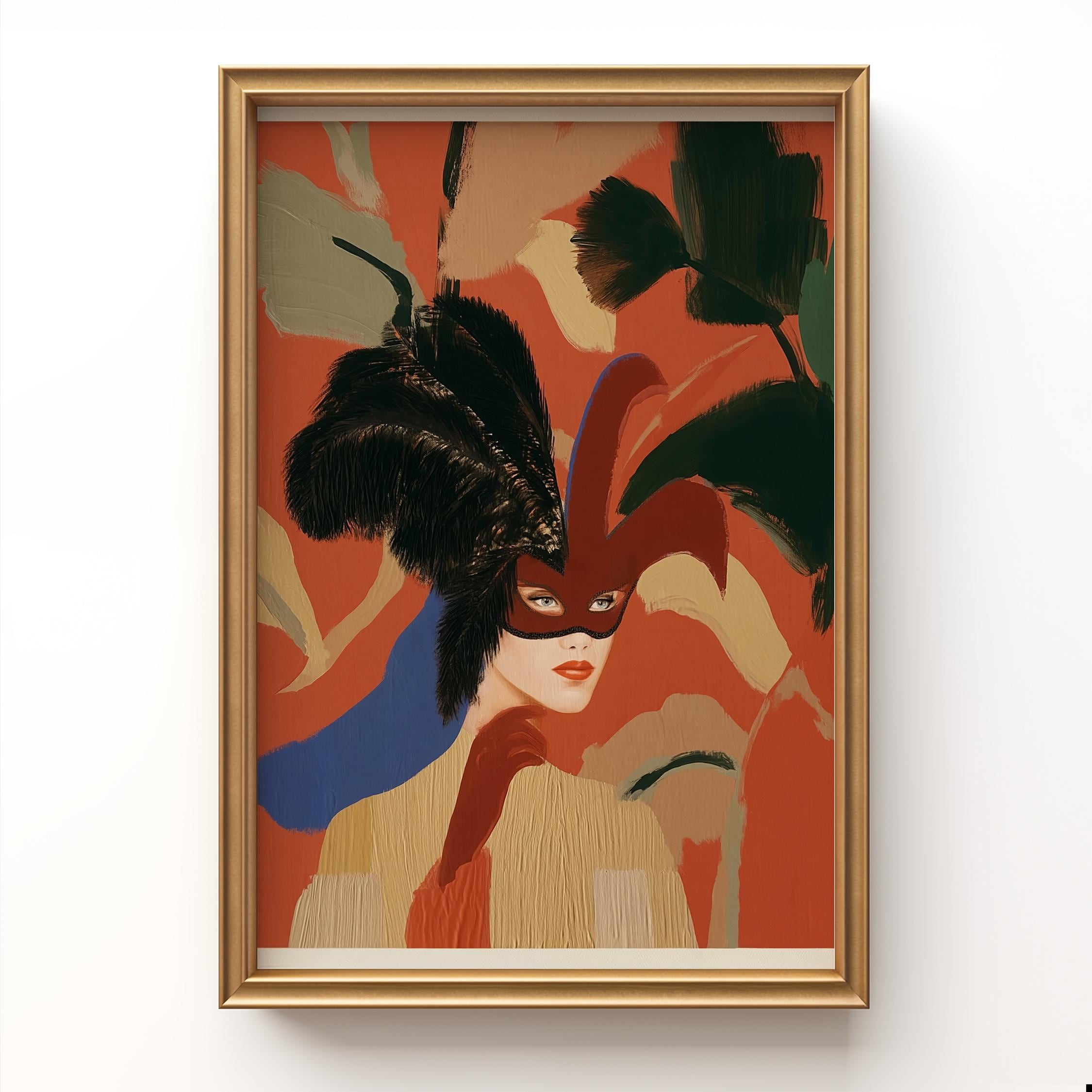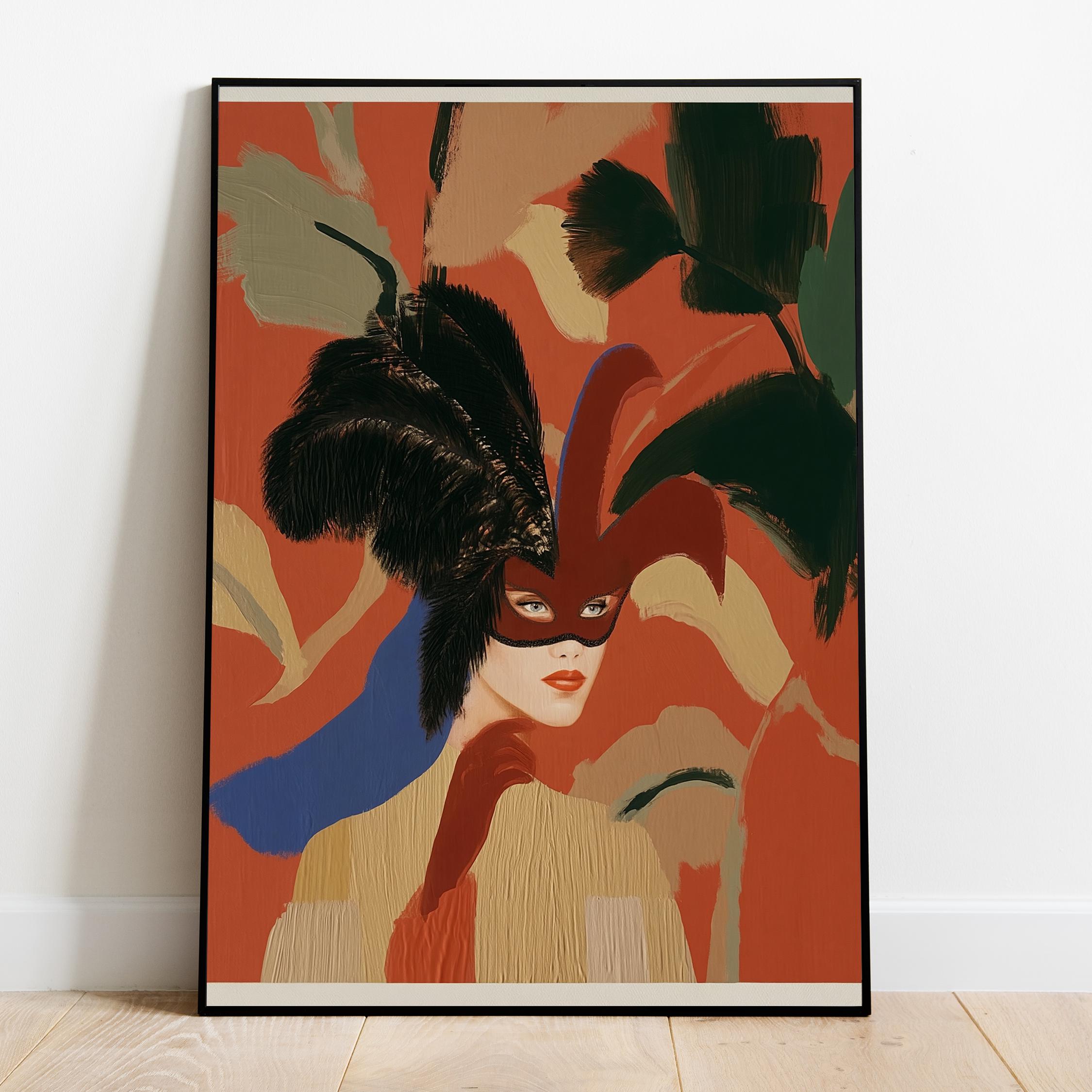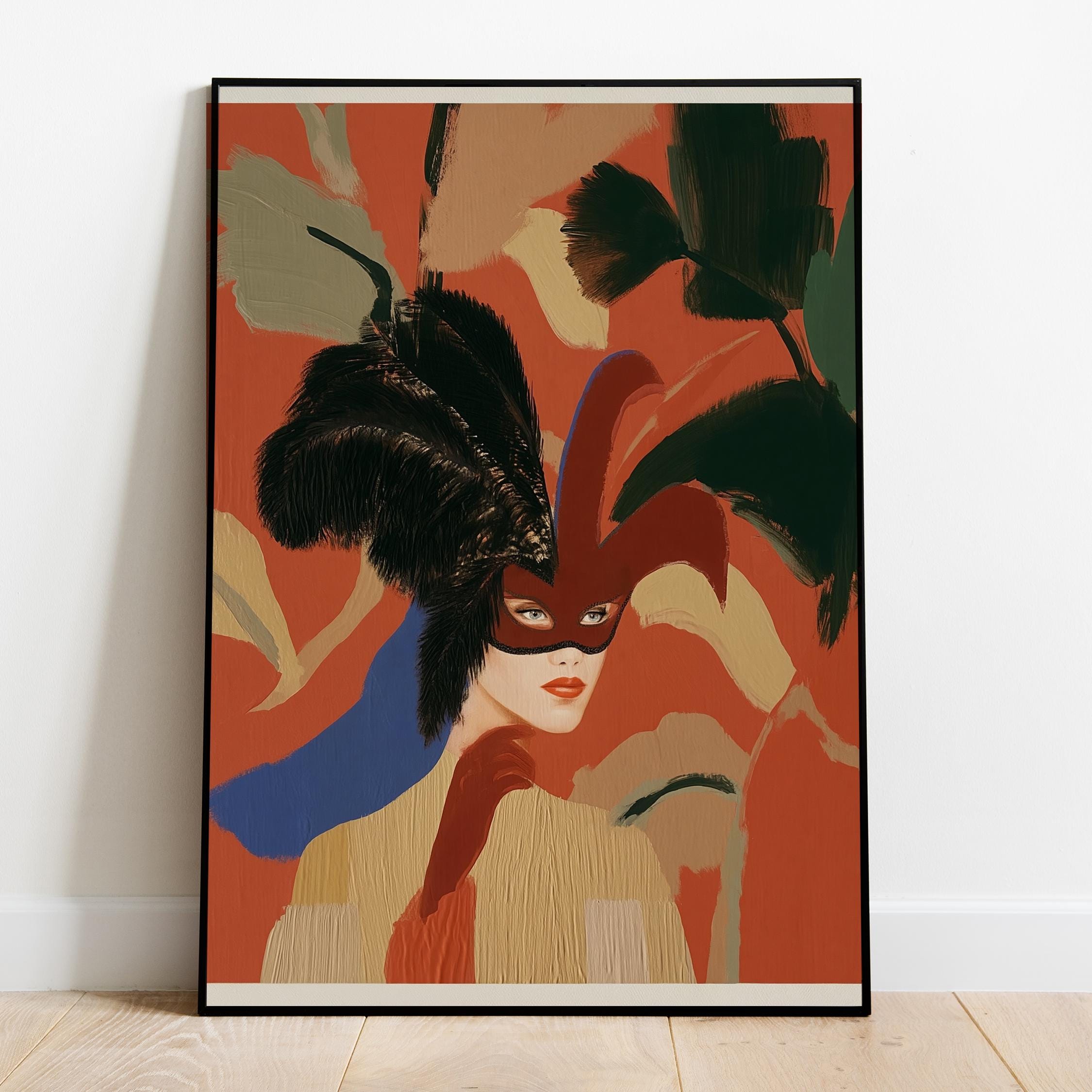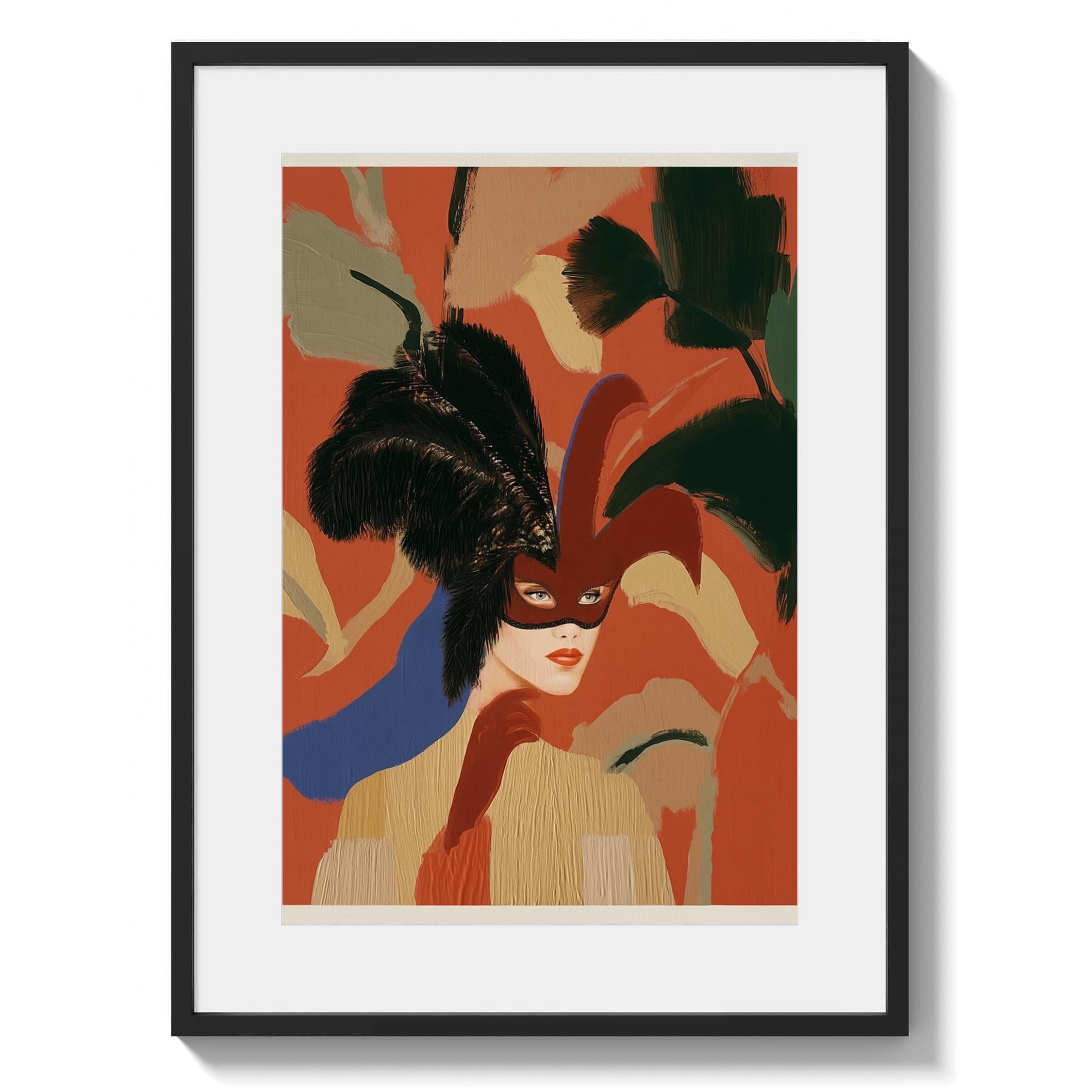 a striking portrait of a masked woman, perfect for a stylish living room and a great gift for a masquerade ball.