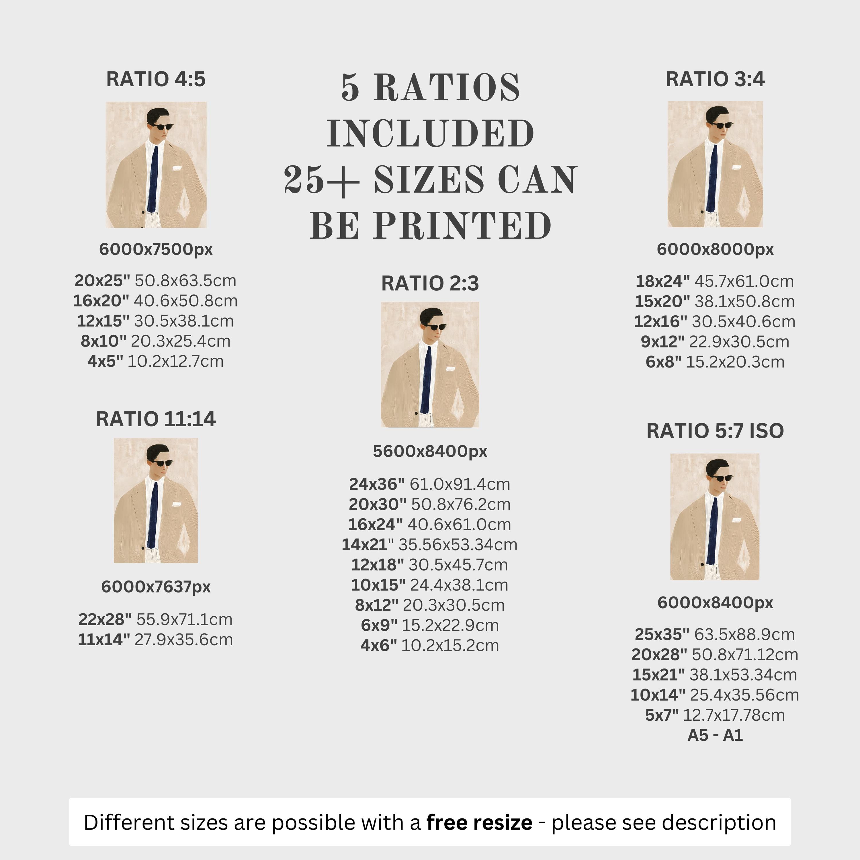 5 HIGH-QUALITY 300 DPI JPGs sized to fit +25 different frames in size and diverse ratios:
