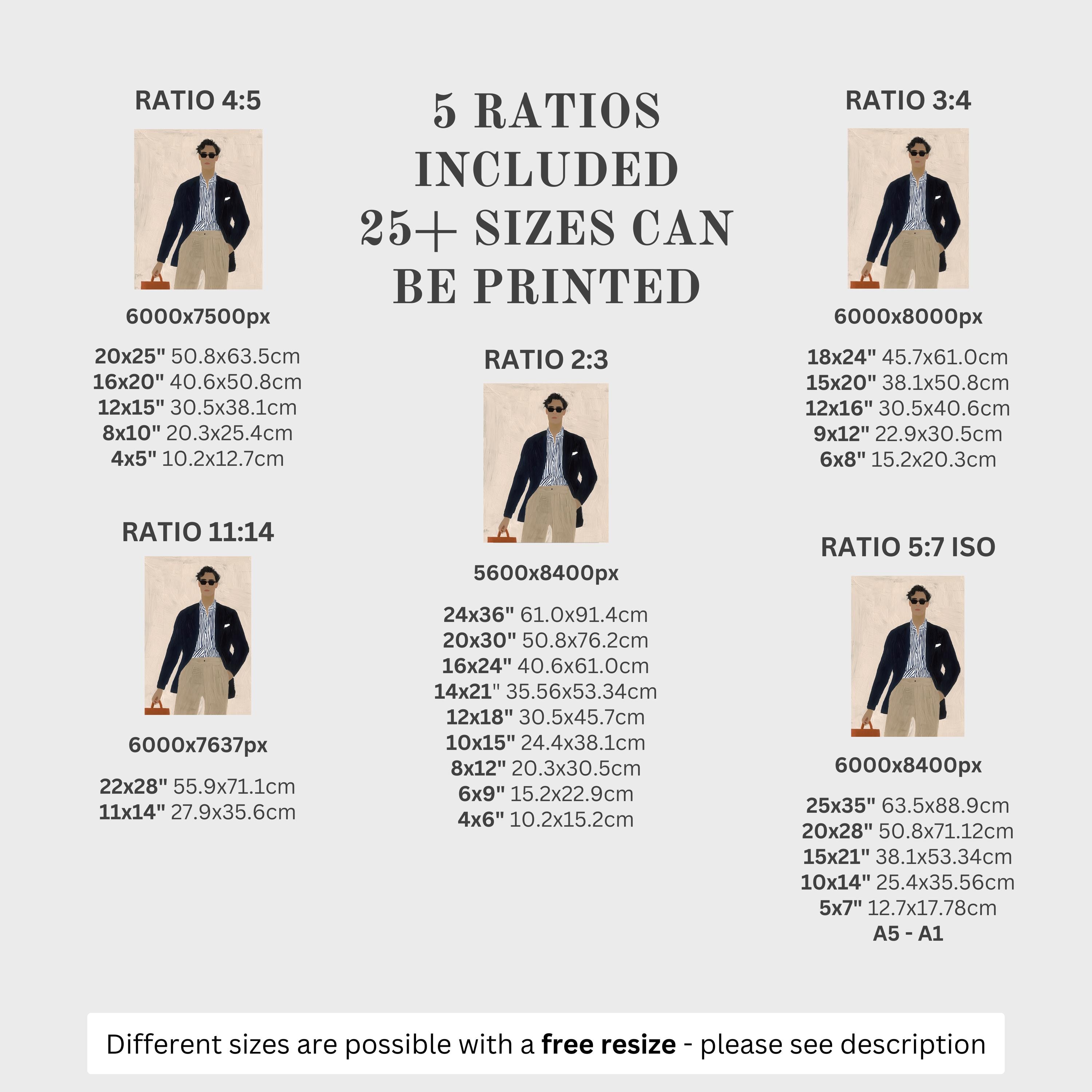 5 HIGH-QUALITY 300 DPI JPGs sized to fit +25 different frames in size and diverse ratios: