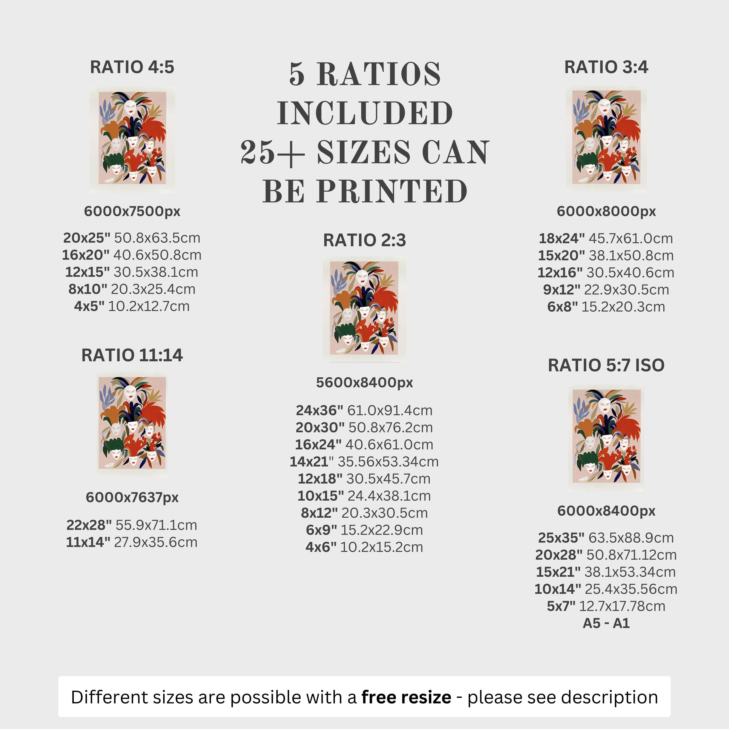 5 HIGH-QUALITY 300 DPI JPGs sized to fit +25 different frames in size and diverse ratios: