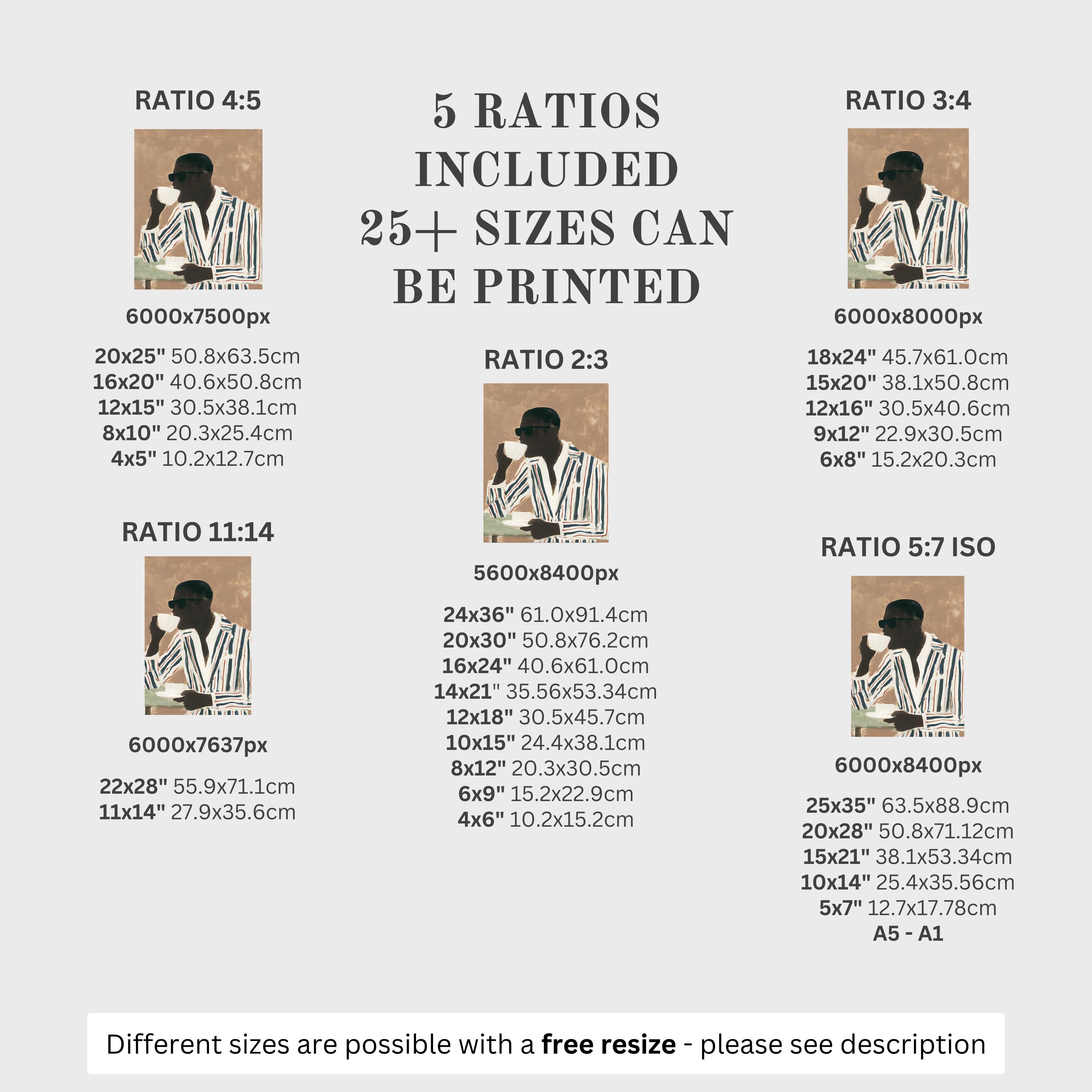 5 HIGH-QUALITY 300 DPI JPGs sized to fit +25 different frames in size and diverse ratios: