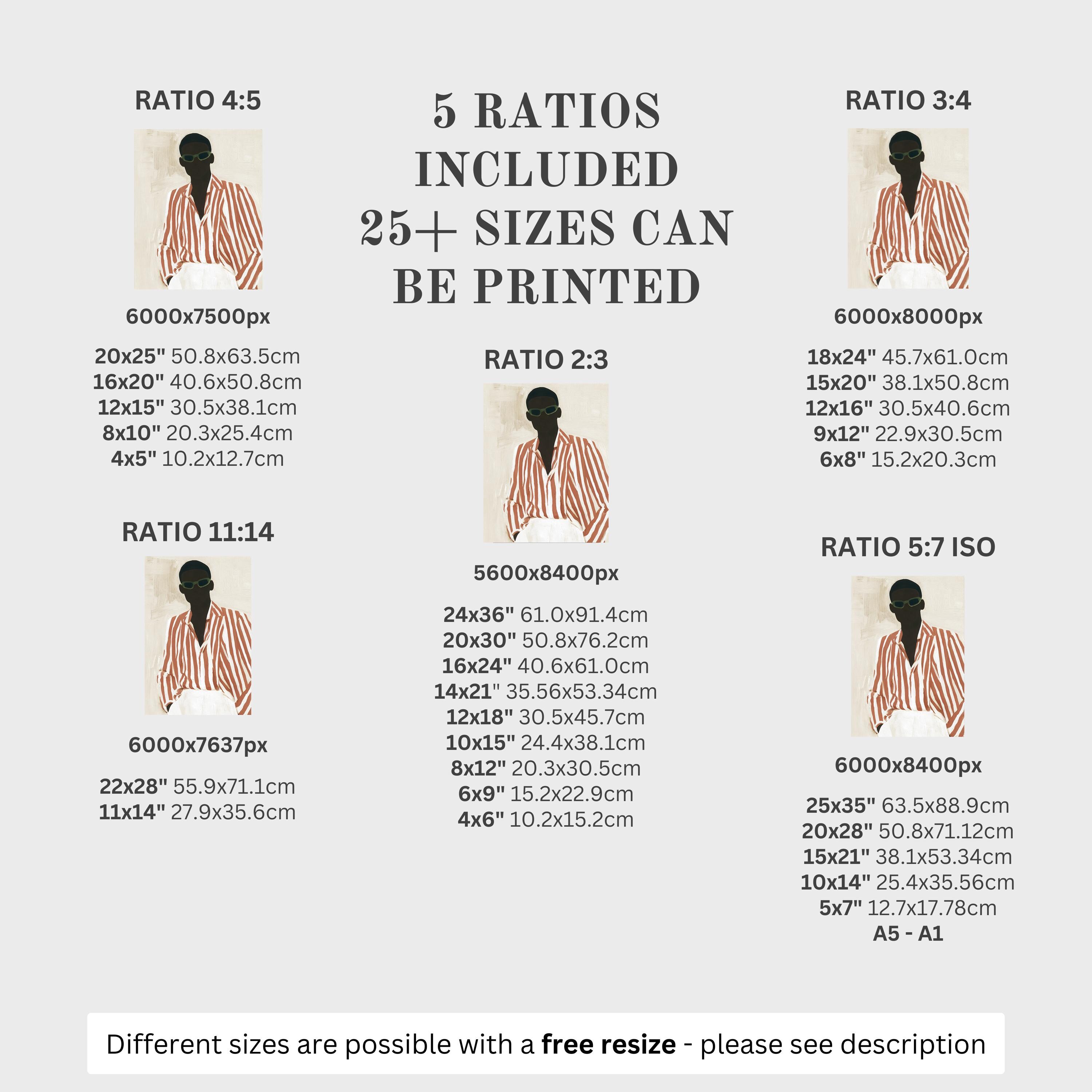 5 HIGH-QUALITY 300 DPI JPGs sized to fit +25 different frames in size and diverse ratios: