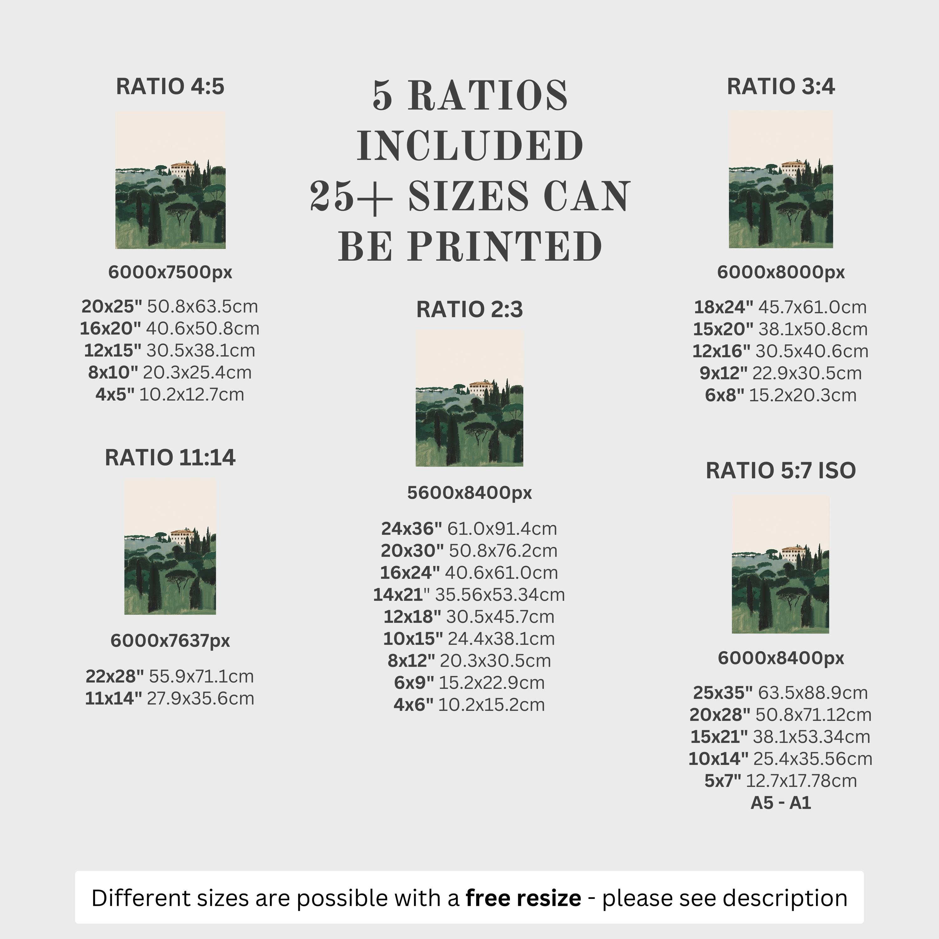 5 HIGH-QUALITY 300 DPI JPGs sized to fit +25 different frames in size and diverse ratios: