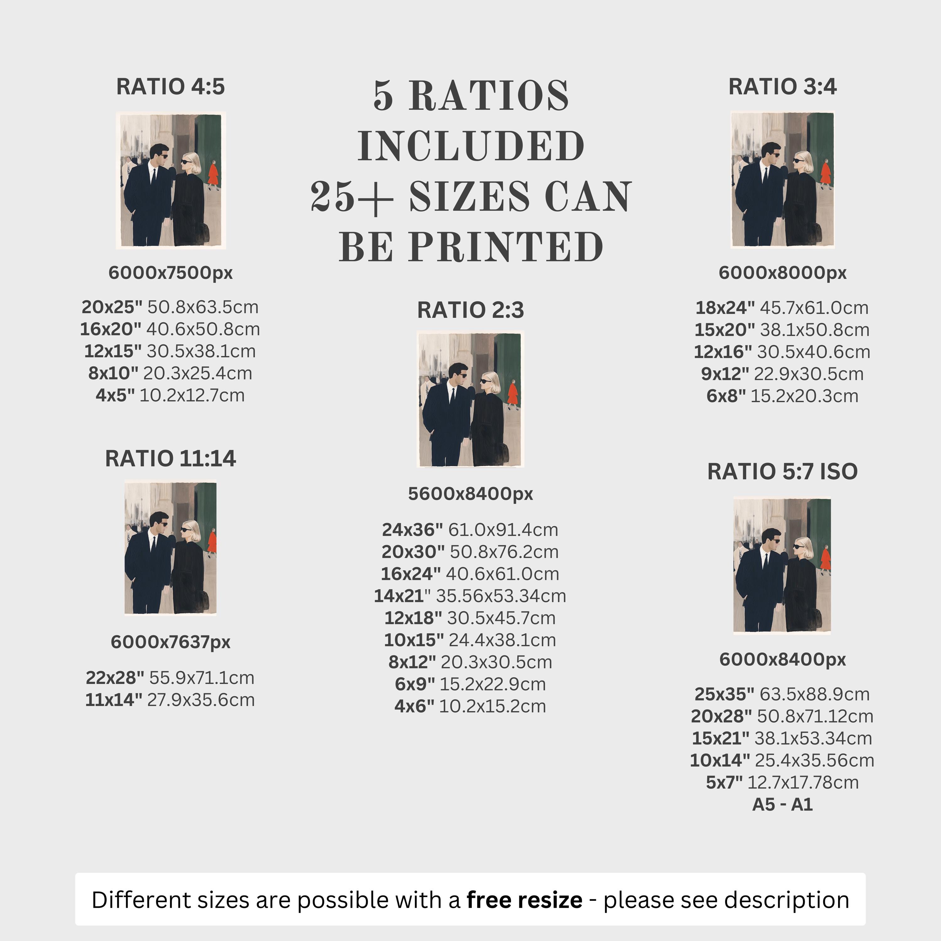5 HIGH-QUALITY 300 DPI JPGs sized to fit +25 different frames in size and diverse ratios:
