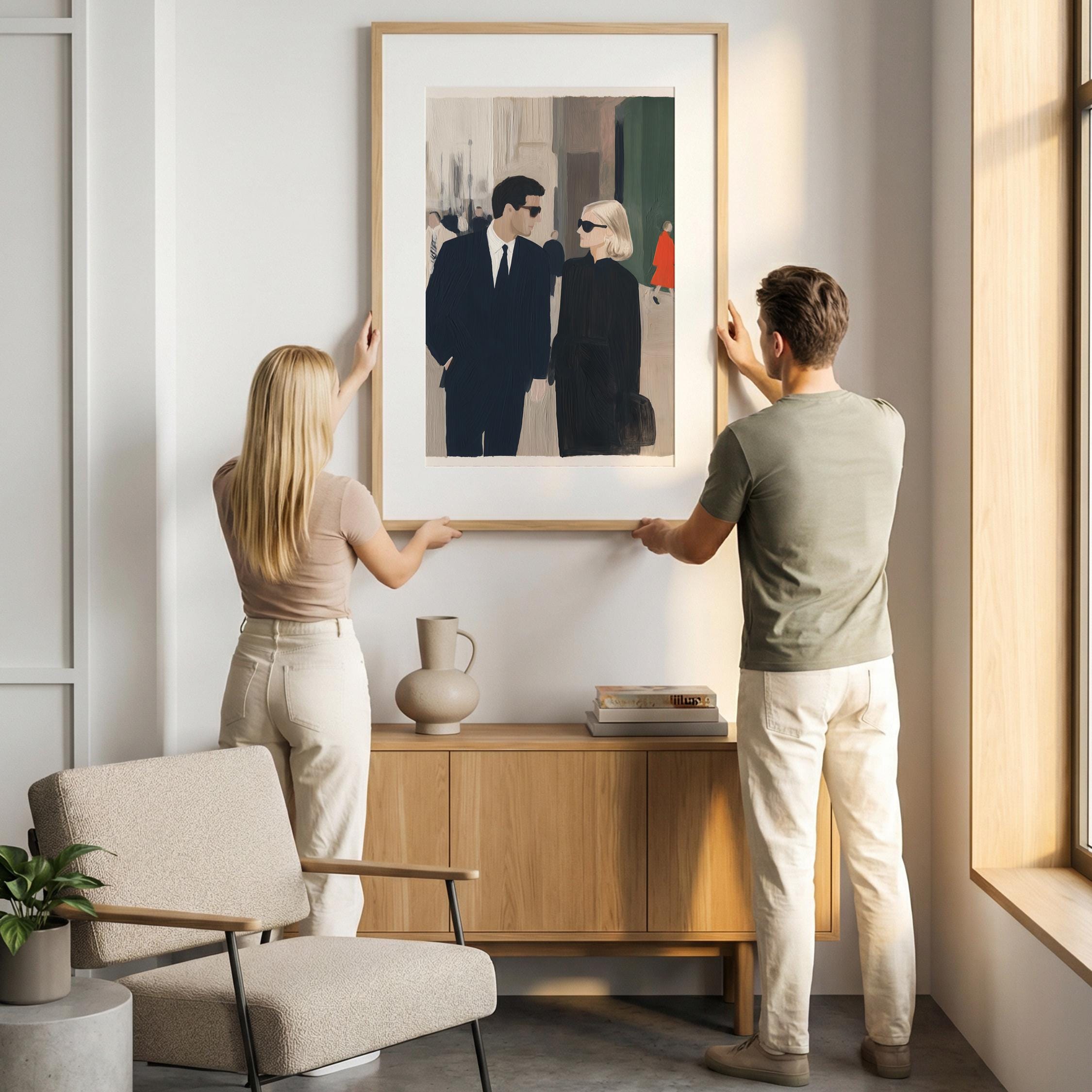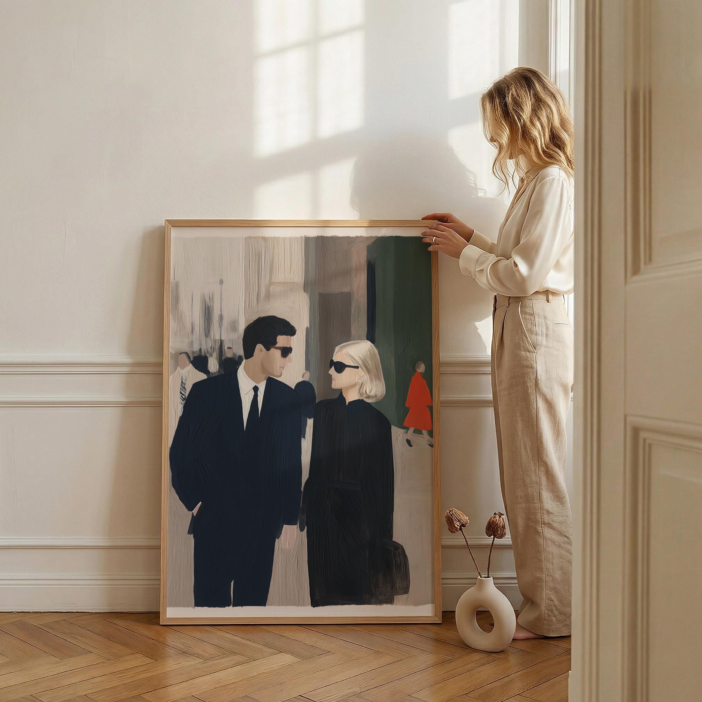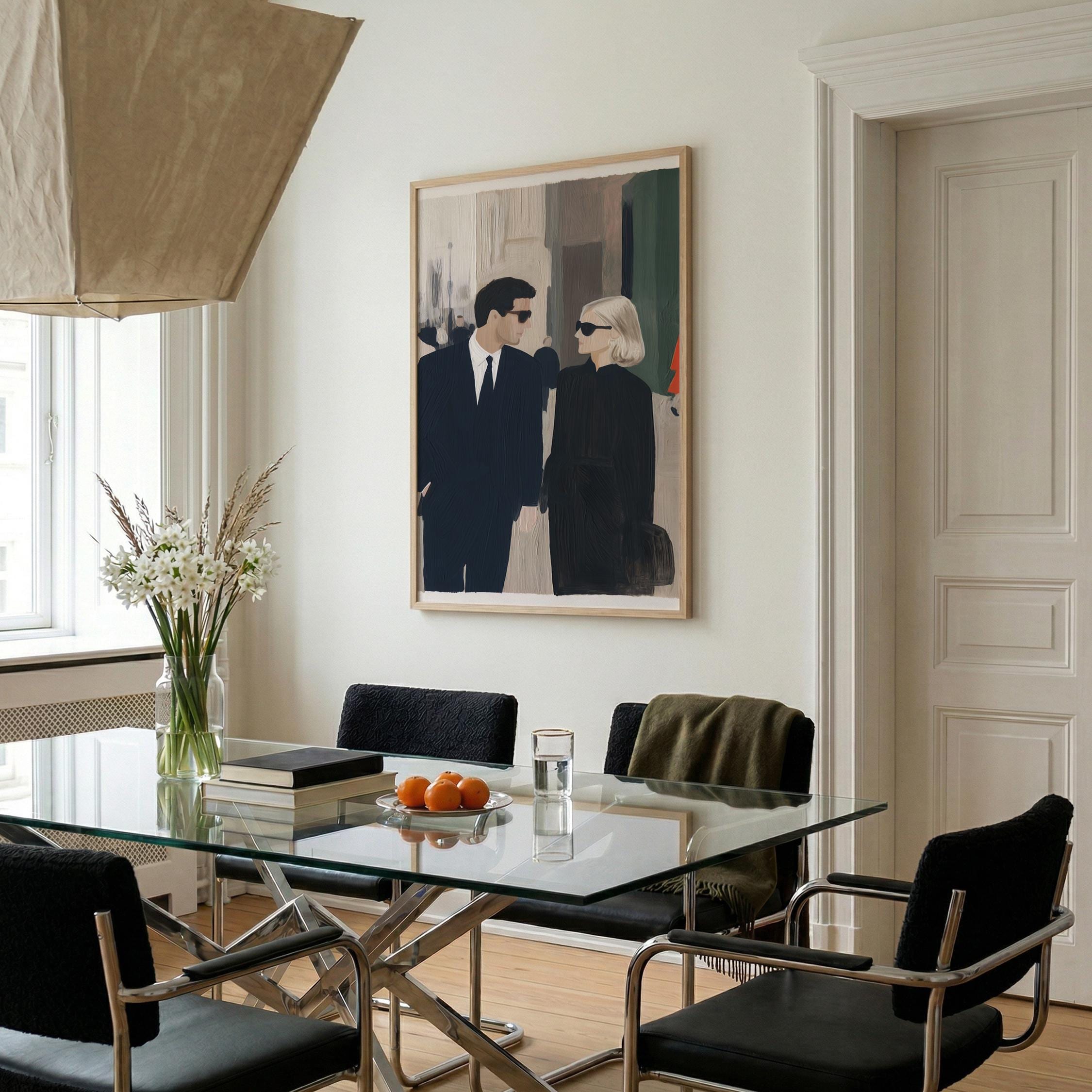 Carolyn Bessette and John F. Kennedy Jr Artwork, perfect for living rooms and a great gift for wedding anniversaries.