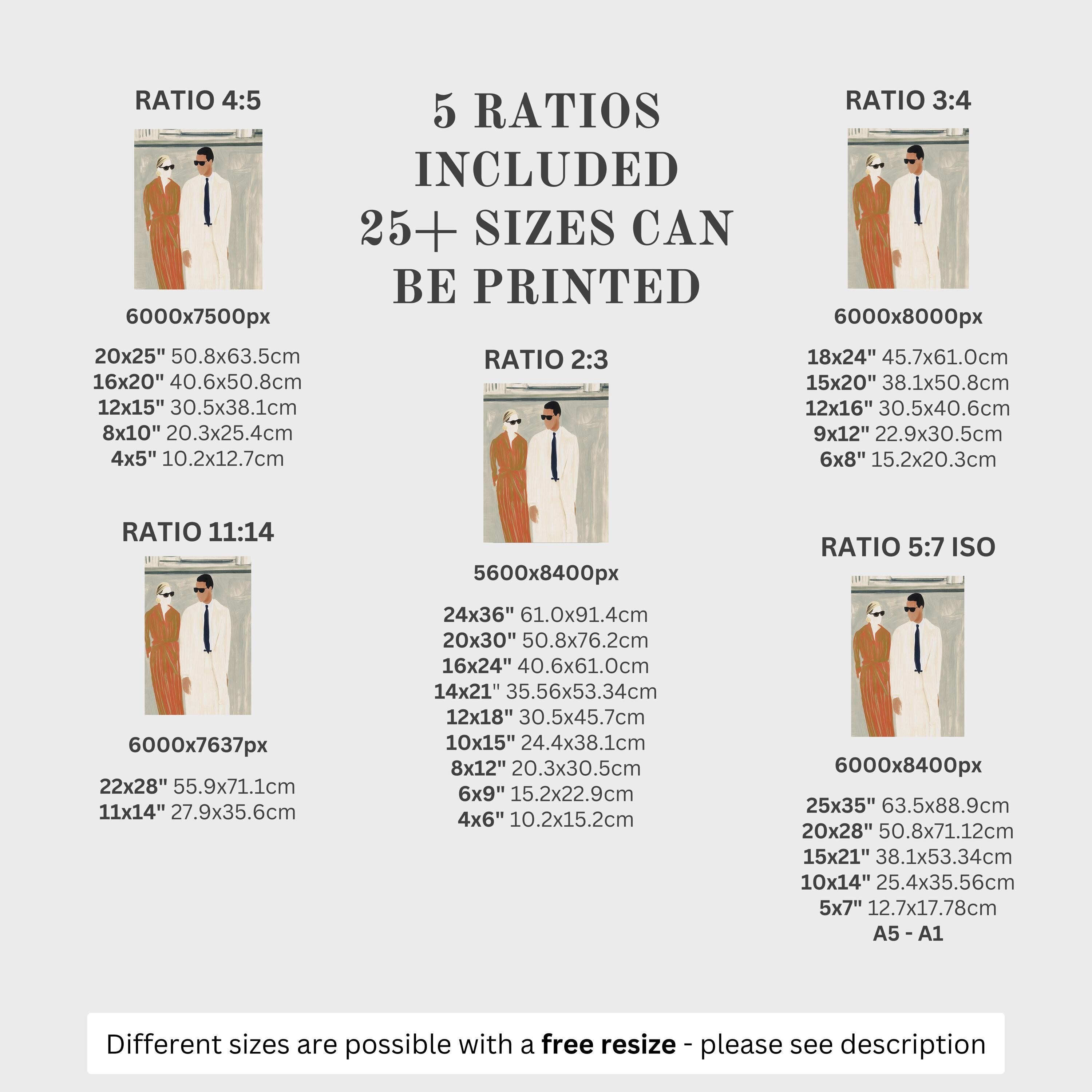 5 HIGH-QUALITY 300 DPI JPGs sized to fit +25 different frames in size and diverse ratios: