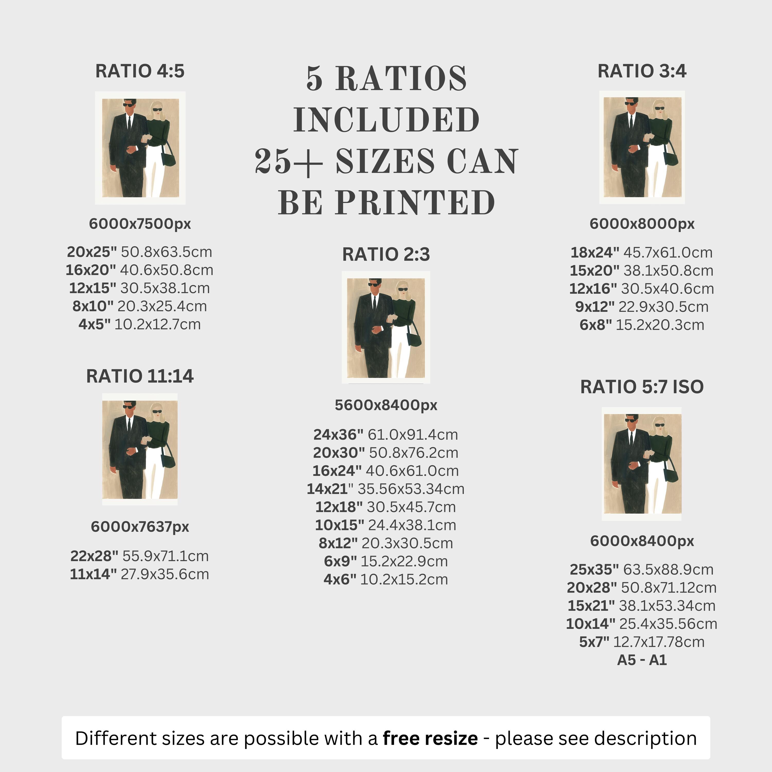 5 HIGH-QUALITY 300 DPI JPGs sized to fit +25 different frames in size and diverse ratios: