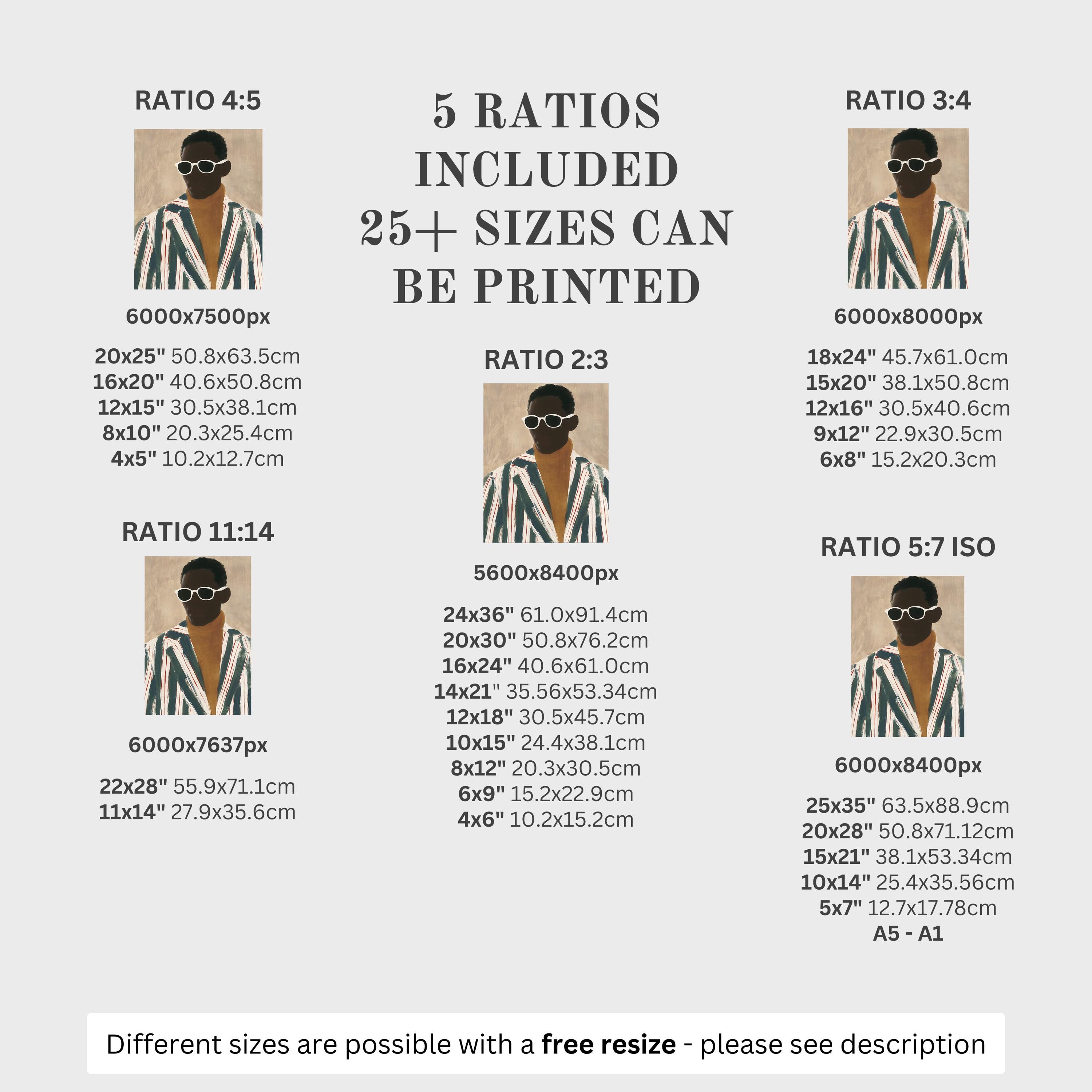 5 HIGH-QUALITY 300 DPI JPGs sized to fit +25 different frames in size and diverse ratios: